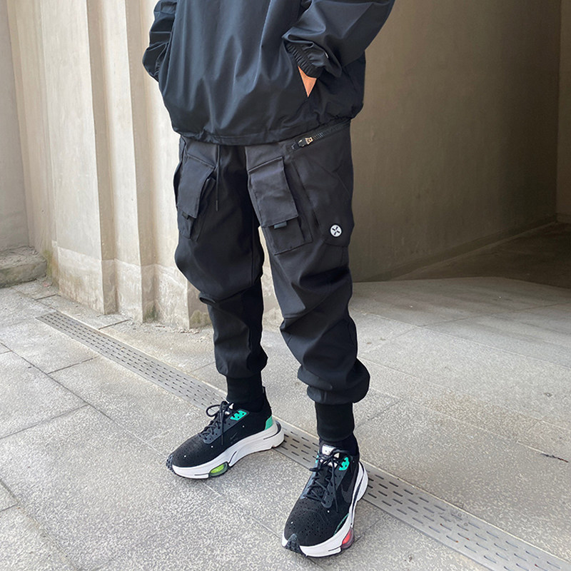 Штаны с молнией, осеннее термобелье, черные повседневные брюки для отдыха, свободный крой