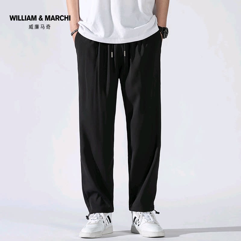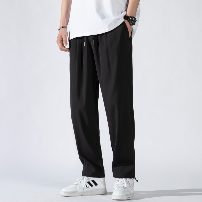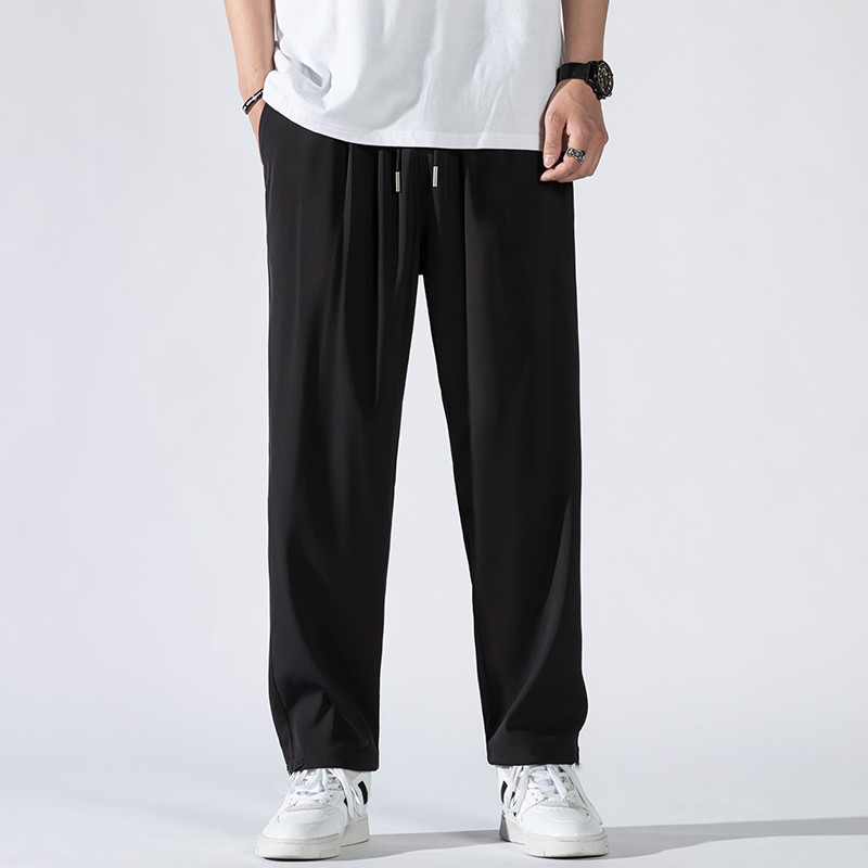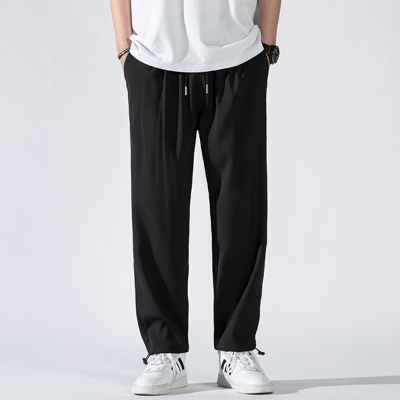 Осенние летние тонкие спортивные трендовые штаны для отдыха, свободный прямой крой, оверсайз, на шнурках