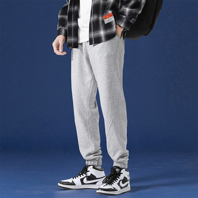 Демисезонные черные мужские штаны, повседневные брюки, свободный крой, на шнурках