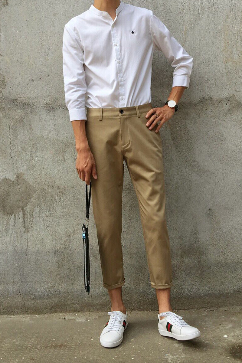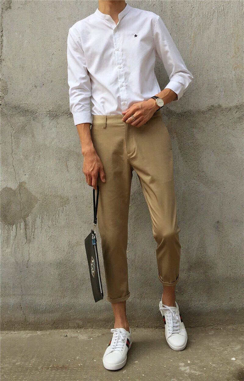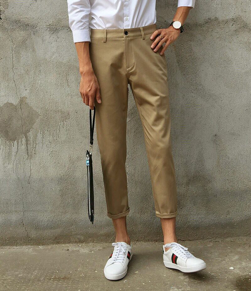Летние хаки штаны, облегающий крой, в корейском стиле