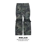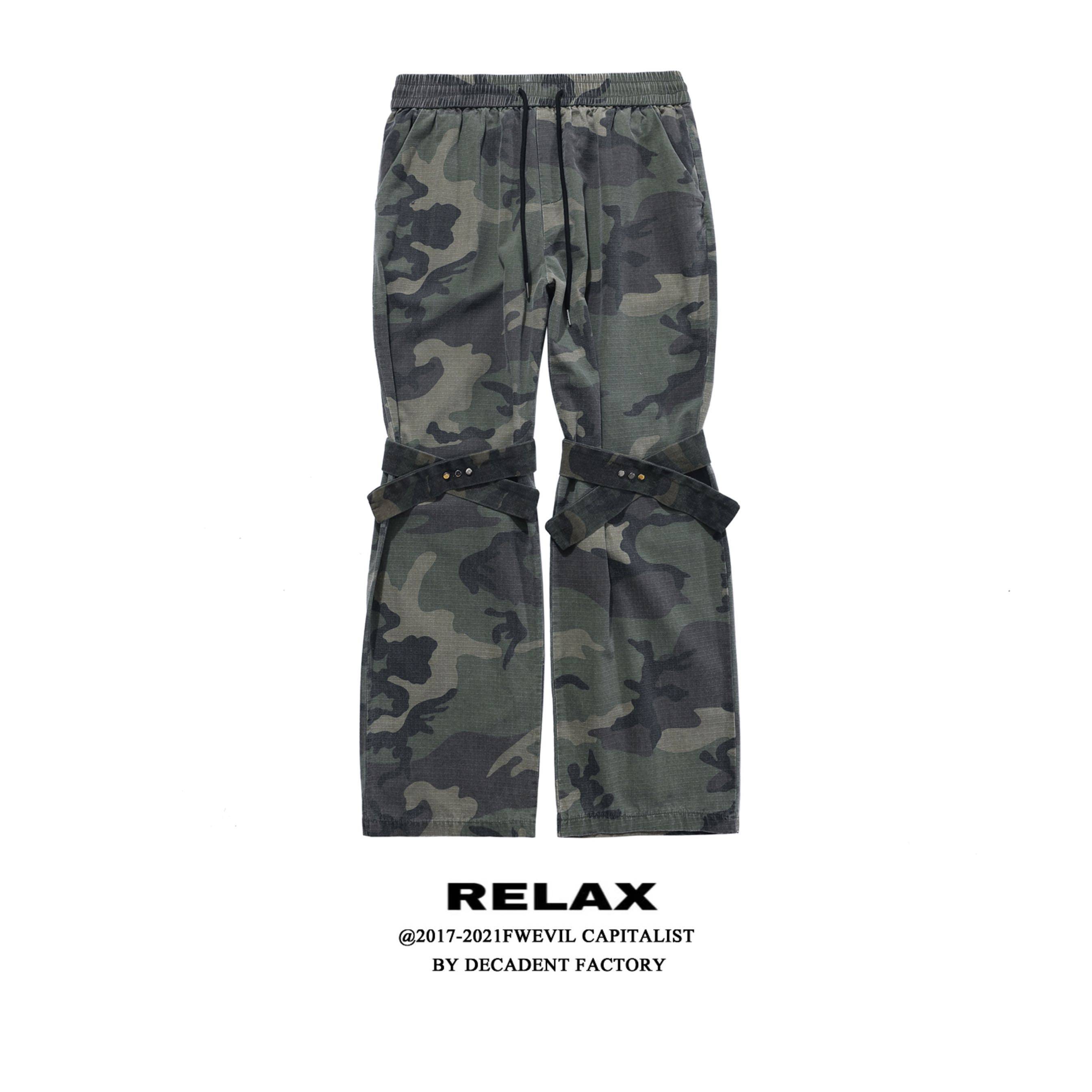 Камуфляжный ремень, штаны-клёш, штаны, в американском стиле, свободный прямой крой