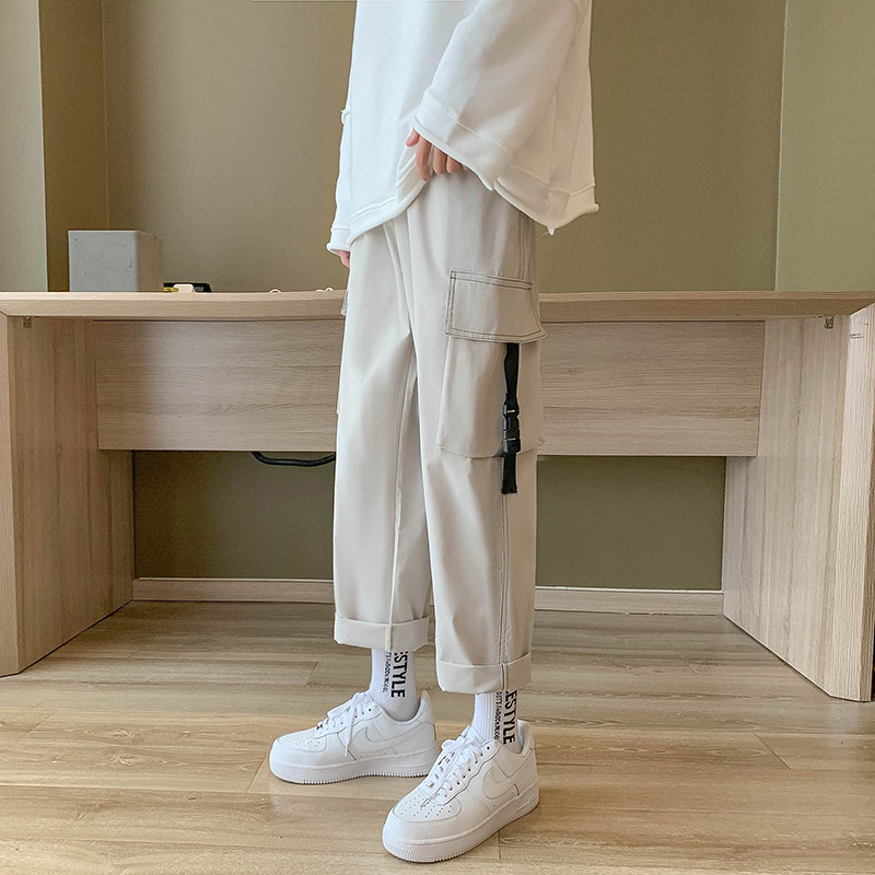 Брендовые демисезонные трендовые штаны для отдыха, свободный прямой крой, в корейском стиле