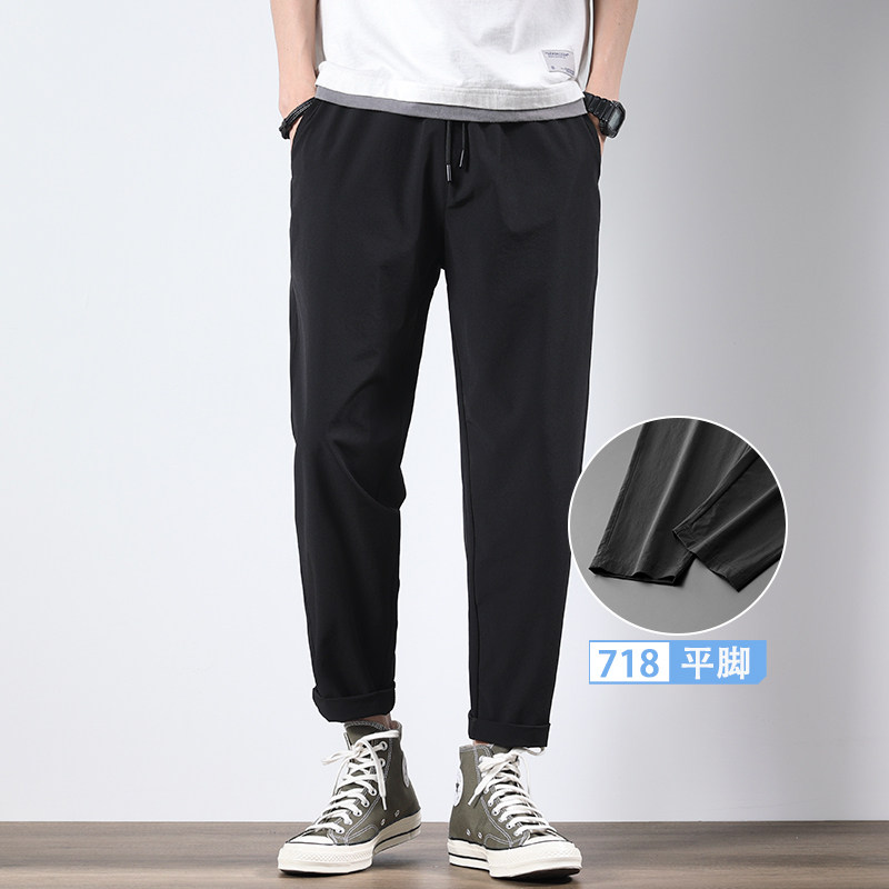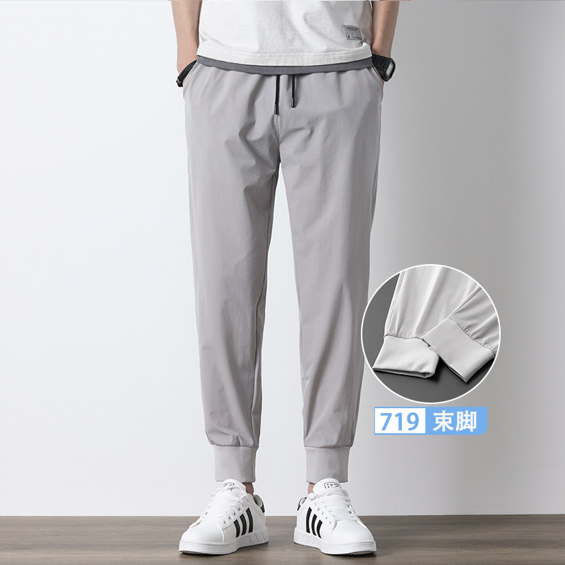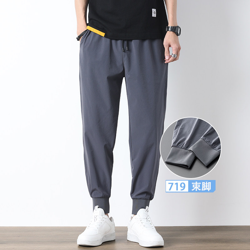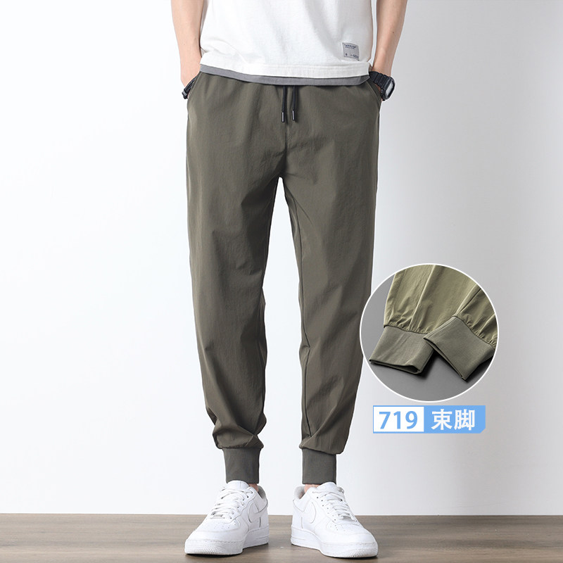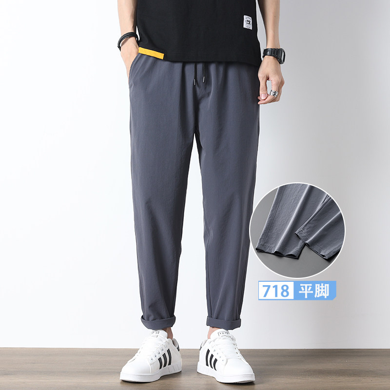 Мужские летние шелковые штаны, легкие и тонкие быстросохнущие повседневные брюки