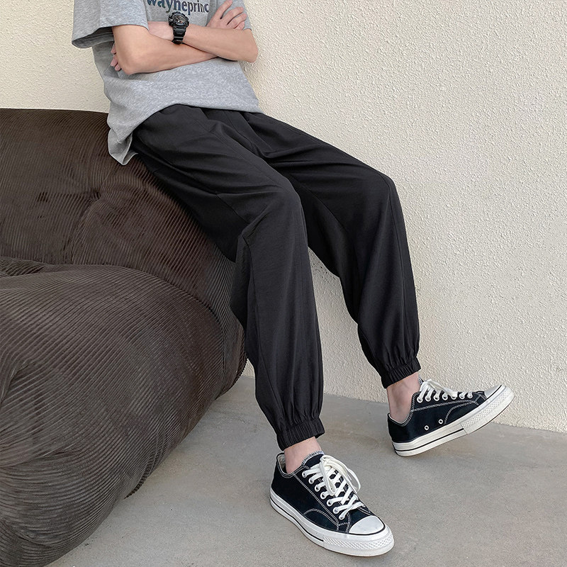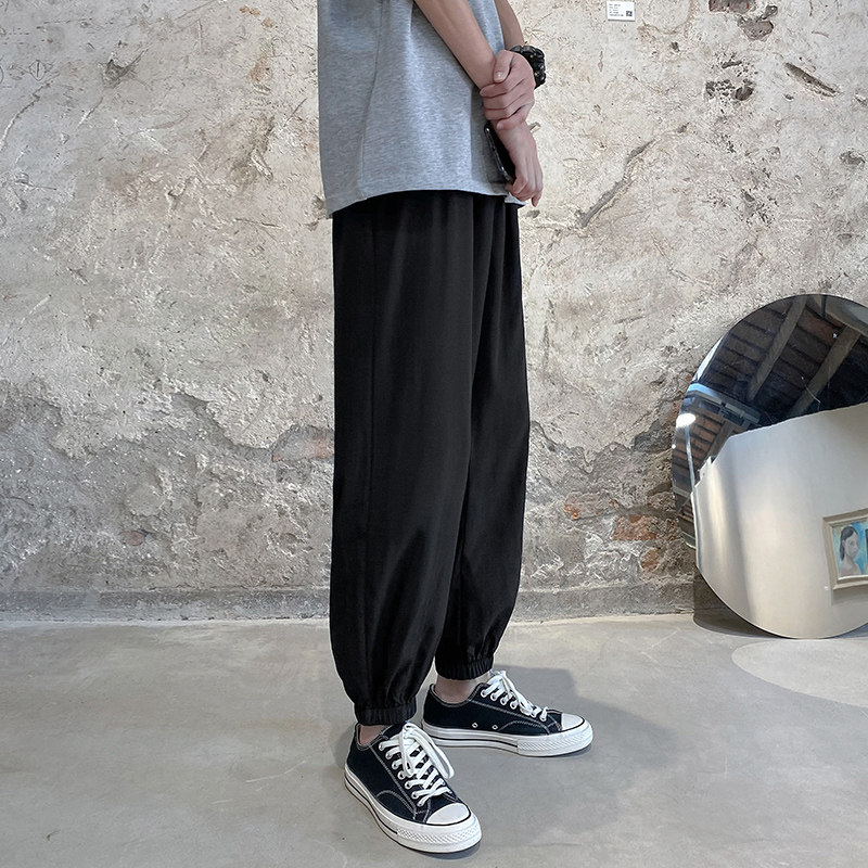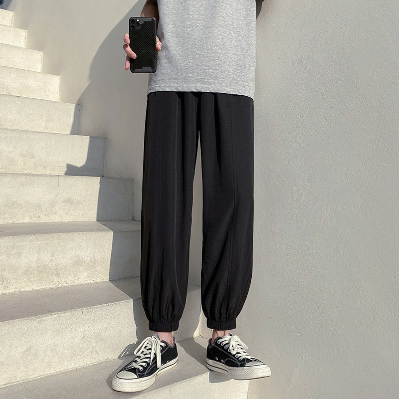 Летние трендовые универсальные мужские спортивные шелковые тонкие штаны, в корейском стиле