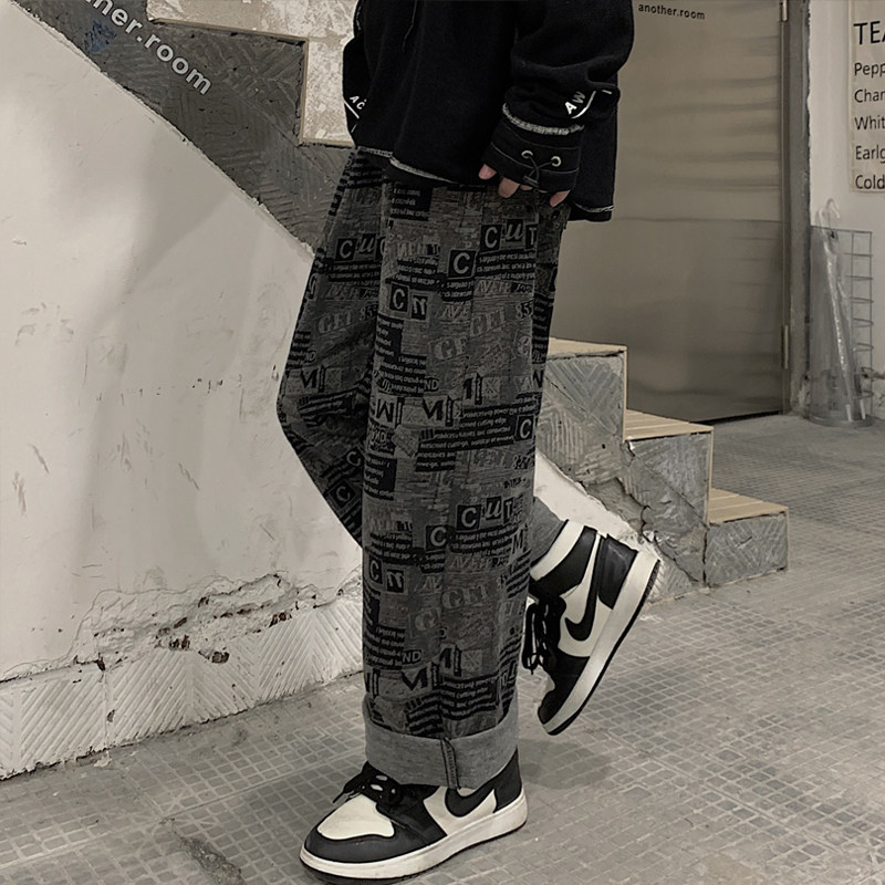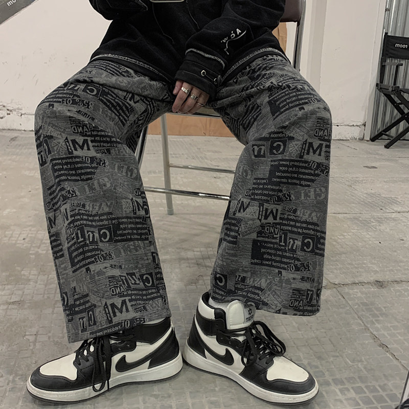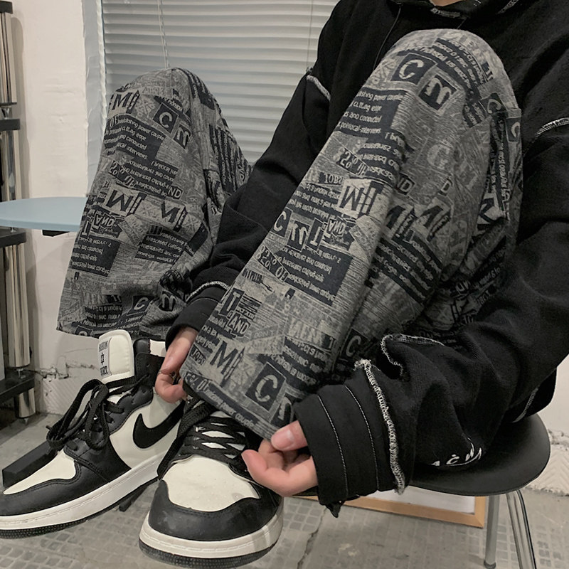 Tide, осенние трендовые штаны, принт, оверсайз, свободный прямой крой