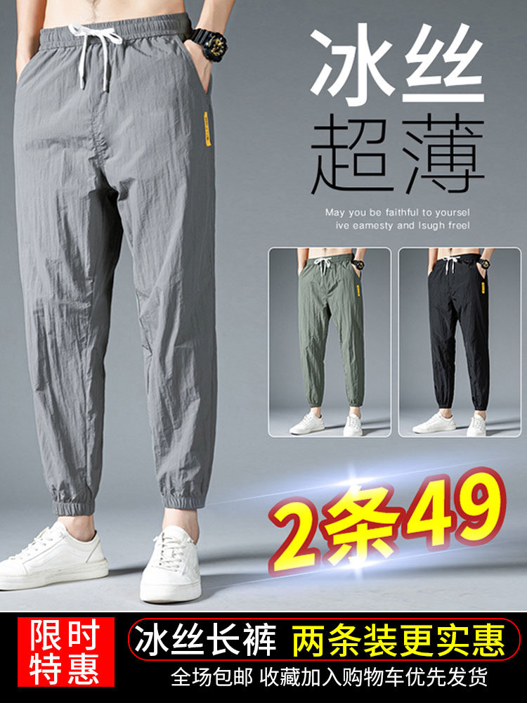 Мужские летние повседневные брюки, спортивные ультратонкие шелковые штаны для отдыха, оверсайз