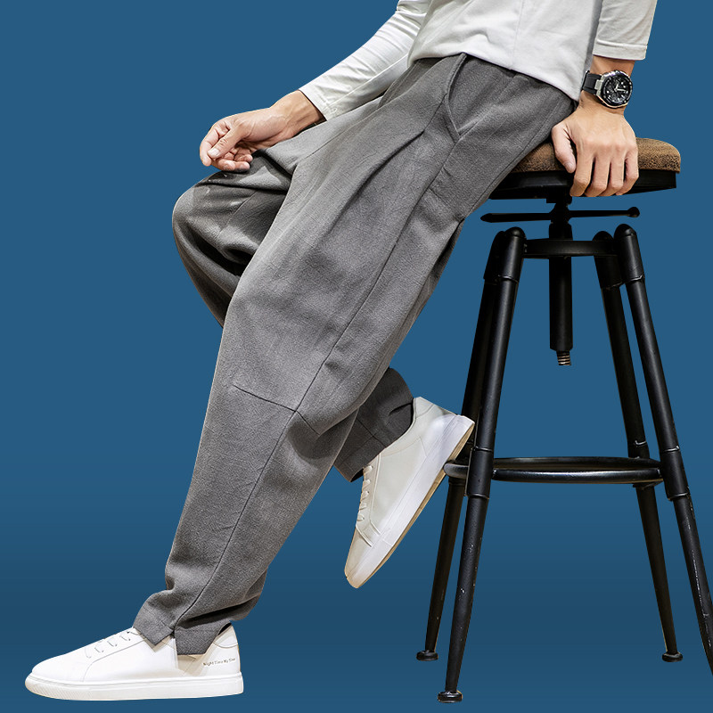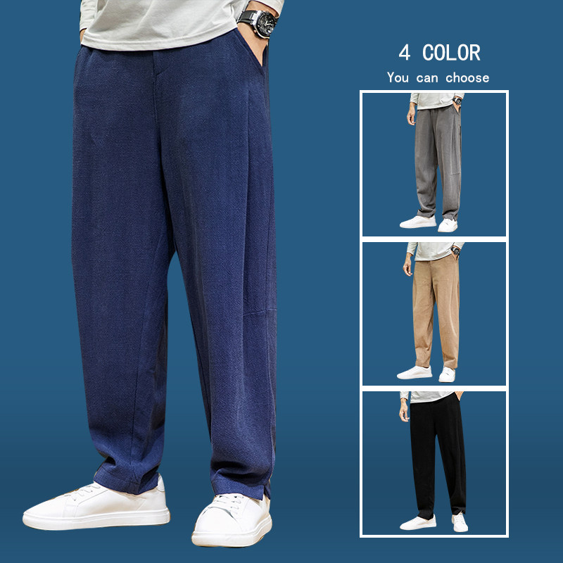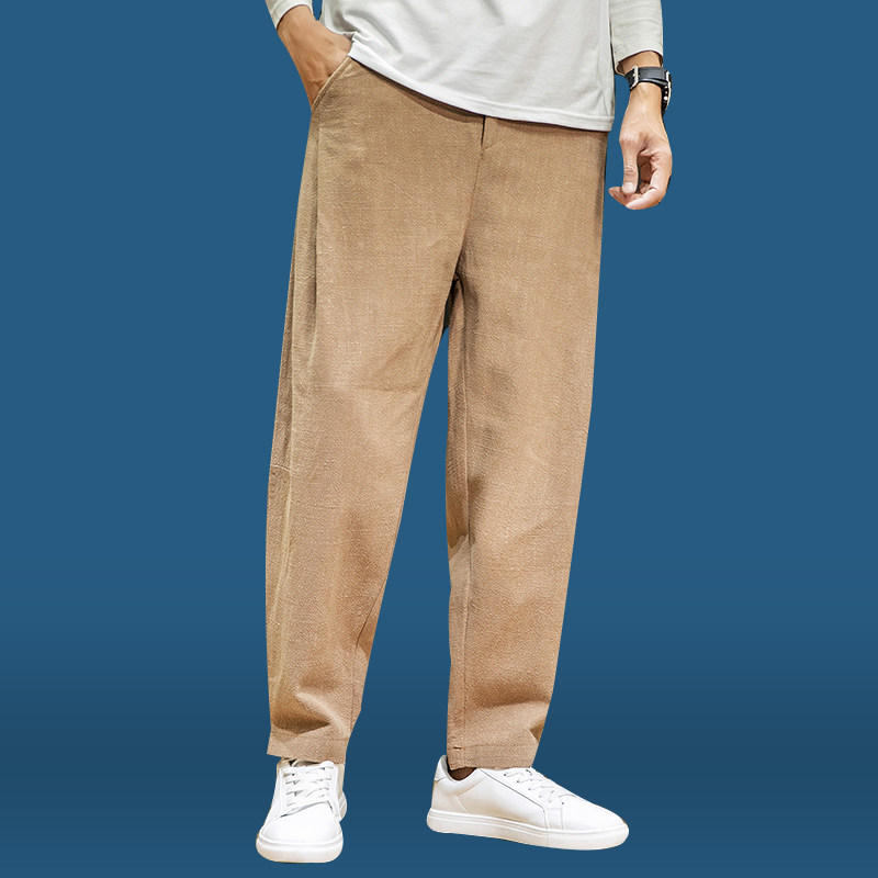 Штаны, тонкие повседневные брюки, оверсайз, свободный прямой крой, из хлопка и льна