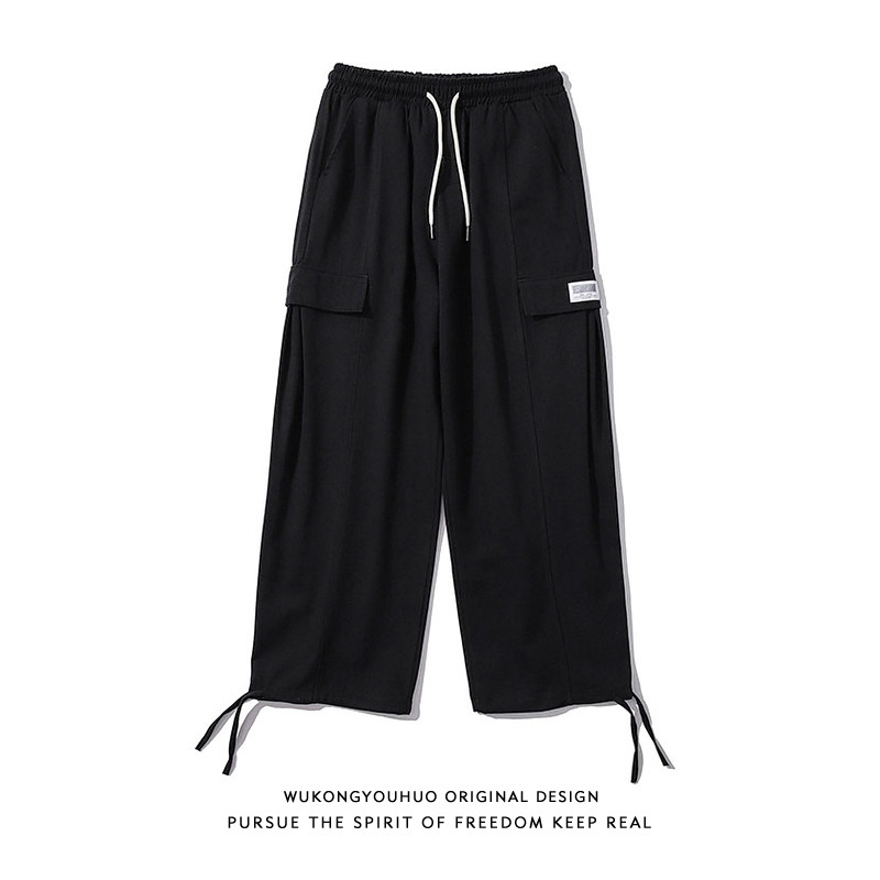 Японские штаны, свободный крой, оверсайз, на шнурках
