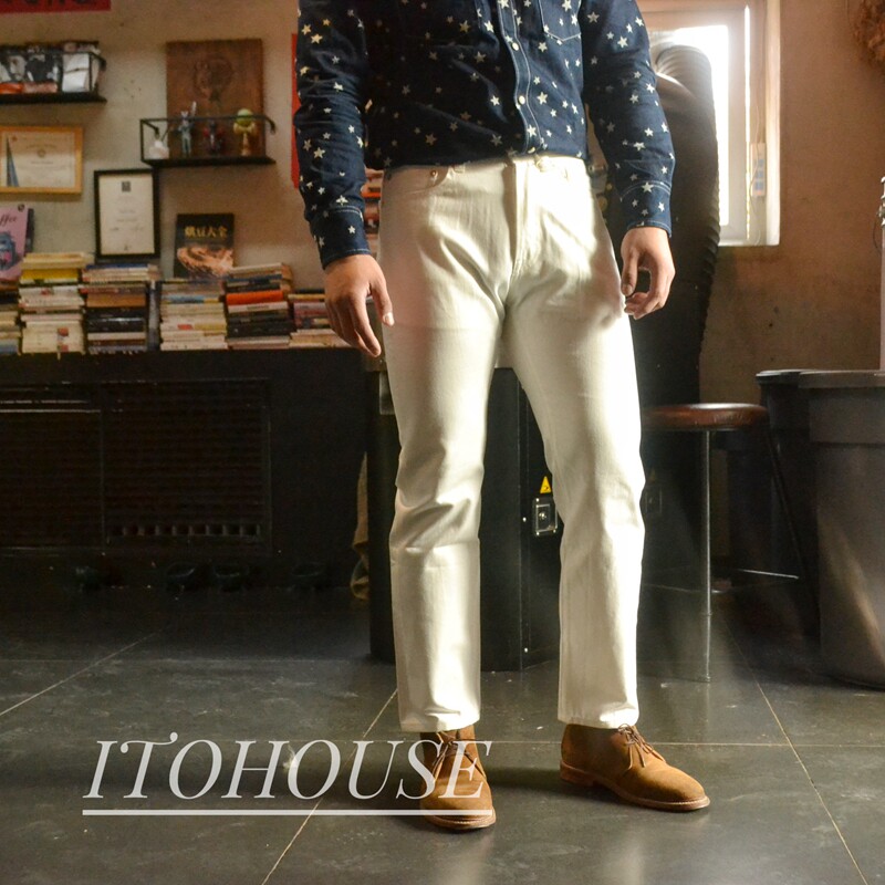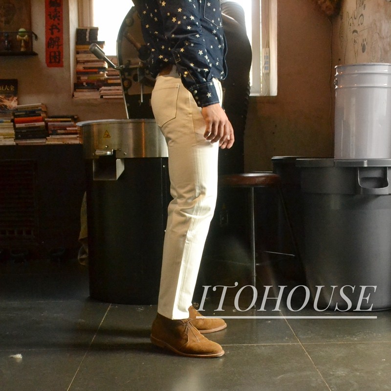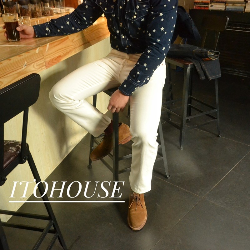 Itohouse производил гетеросексуальные красные уши слегка висящие ноги белые джинсы