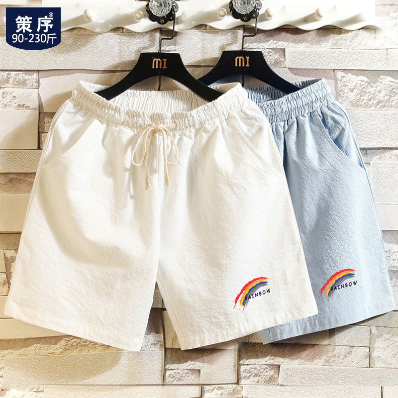 Шорты, трендовые пляжные штаны, из хлопка и льна, большой размер, оверсайз