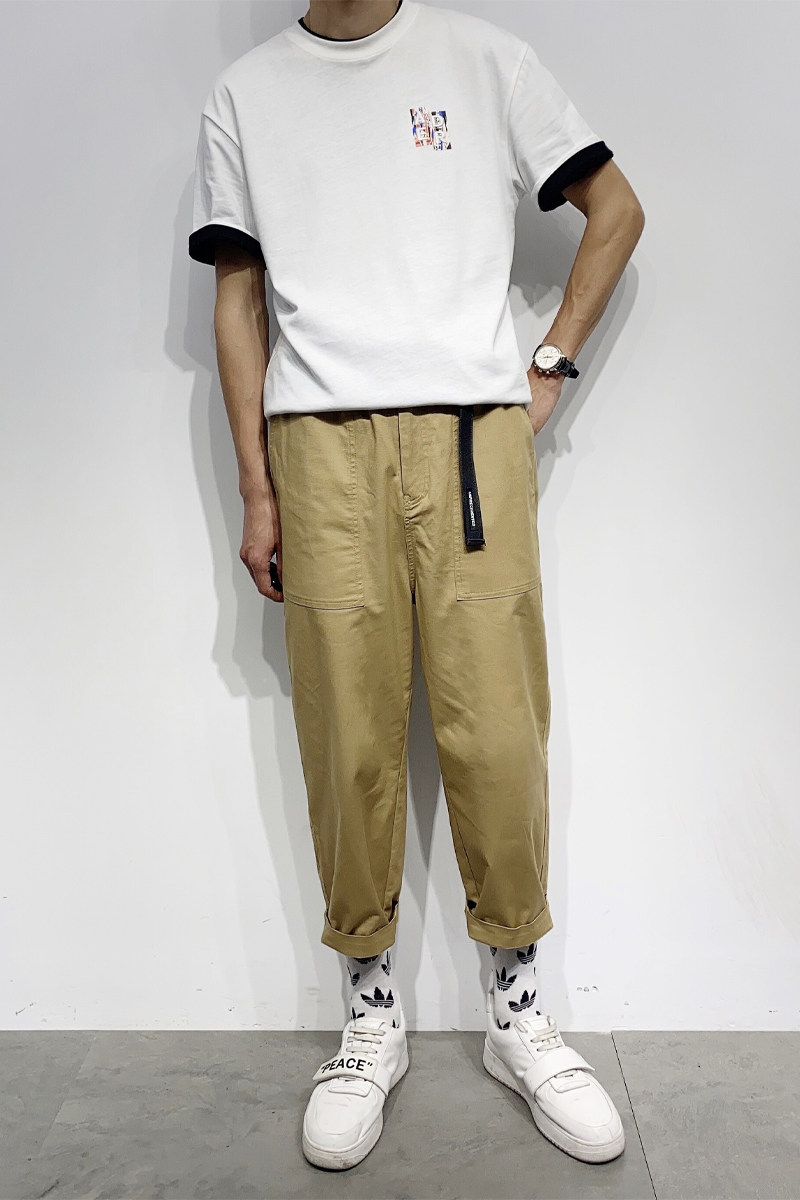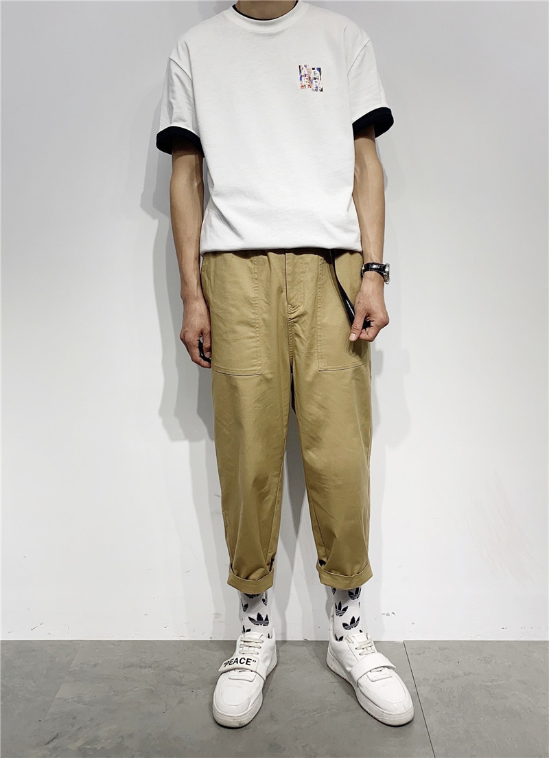 Летние трендовые универсальные брендовые штаны для отдыха, сезон 2021, в корейском стиле, свободный прямой крой