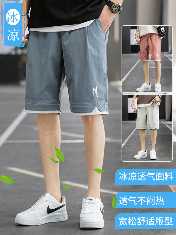 Мужские летние шорты для отдыха, трендовые шелковые штаны, коллекция 2021, в корейском стиле, оверсайз
