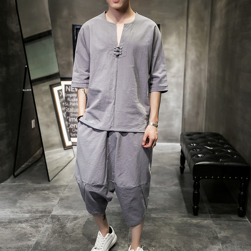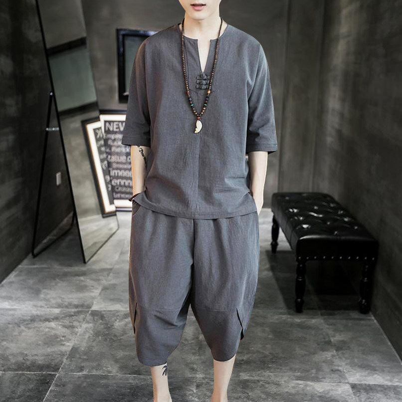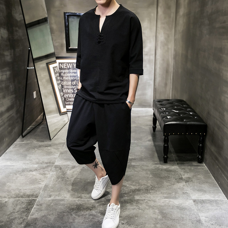 Штаны, тонкая футболка с коротким рукавом, спортивные шорты, свободный крой, большой размер