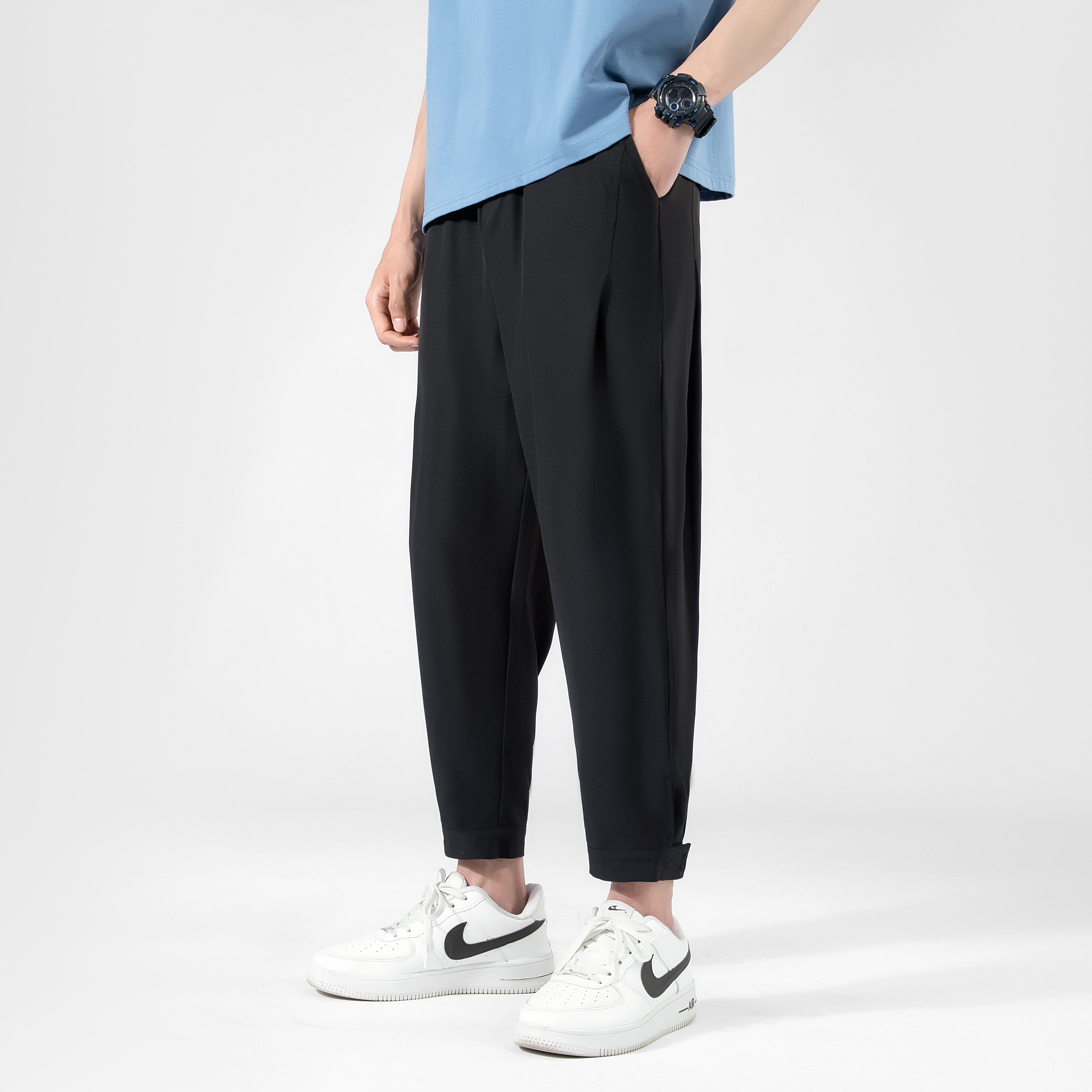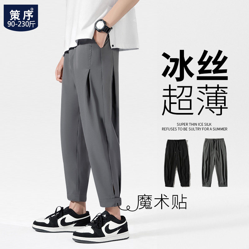 Мужские шелковые штаны на липучке, большой размер, свободный прямой крой
