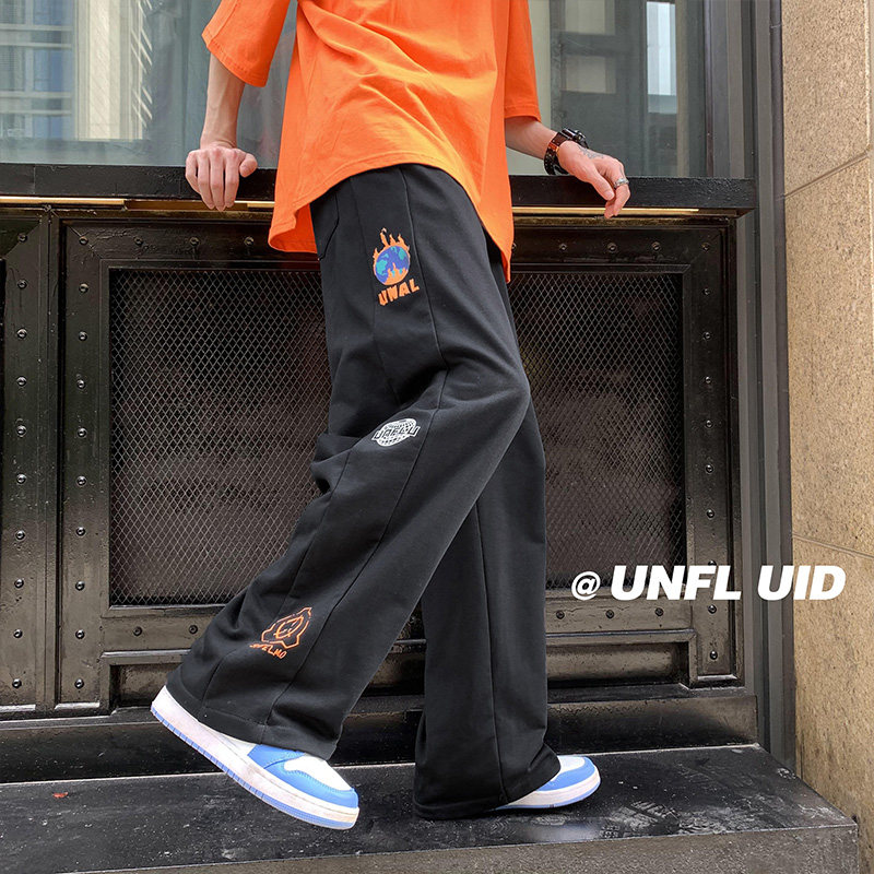 Штаны, летние осенние брендовые повседневные брюки для отдыха, в корейском стиле, свободный прямой крой