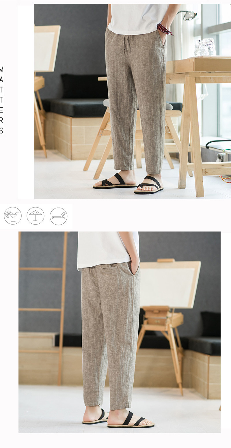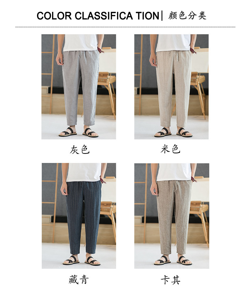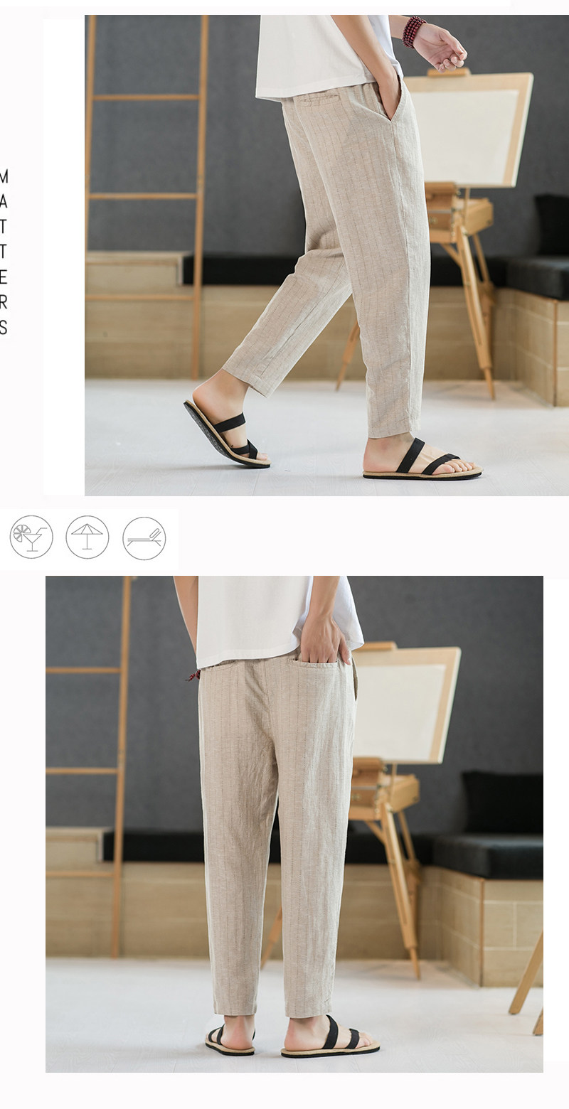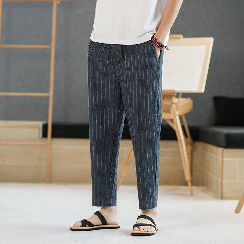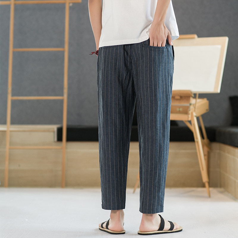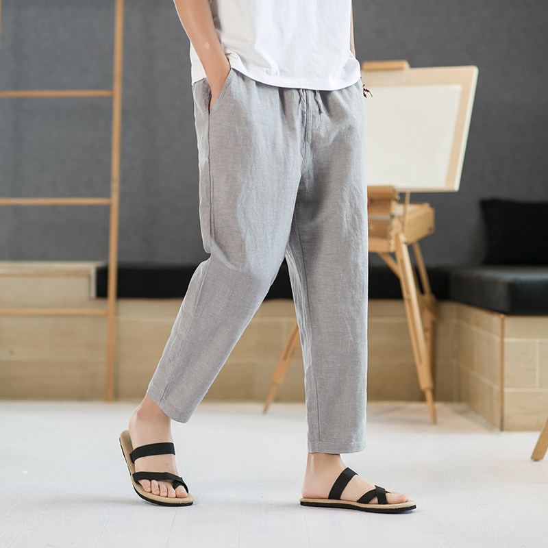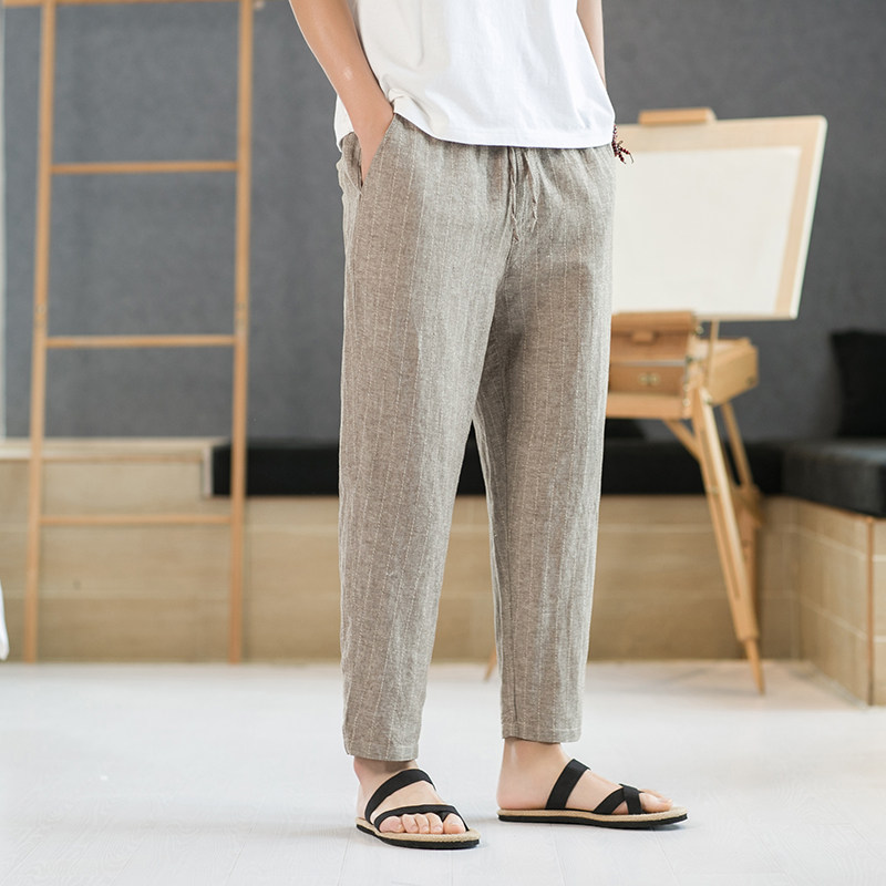 Летние штаны для отдыха, свободный крой, из хлопка и льна, китайский стиль