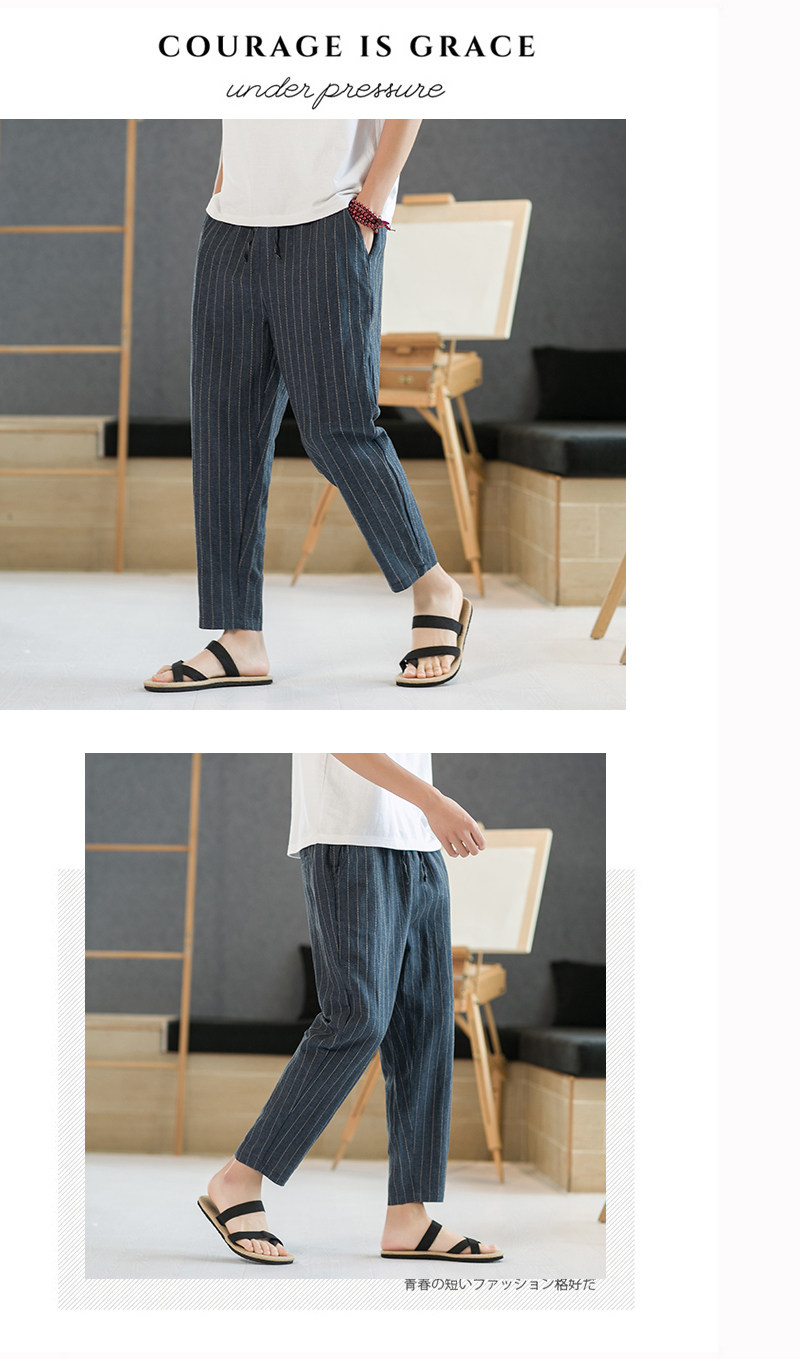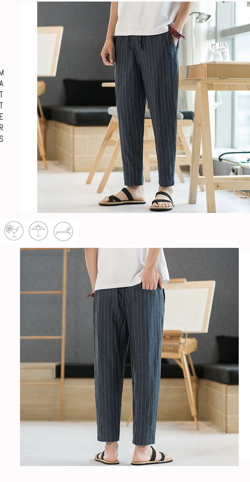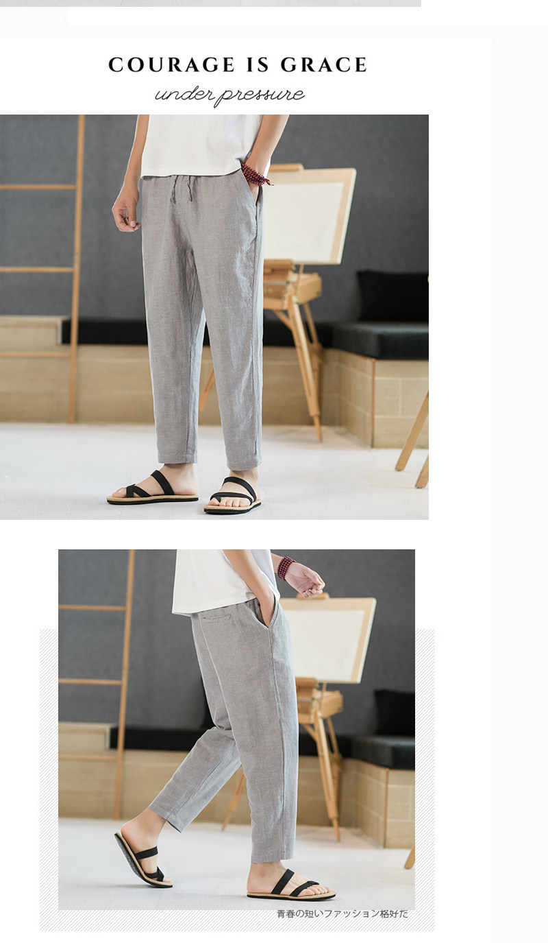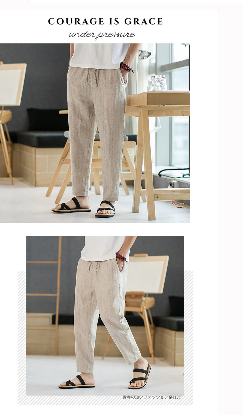 Летние штаны для отдыха, свободный крой, из хлопка и льна, китайский стиль