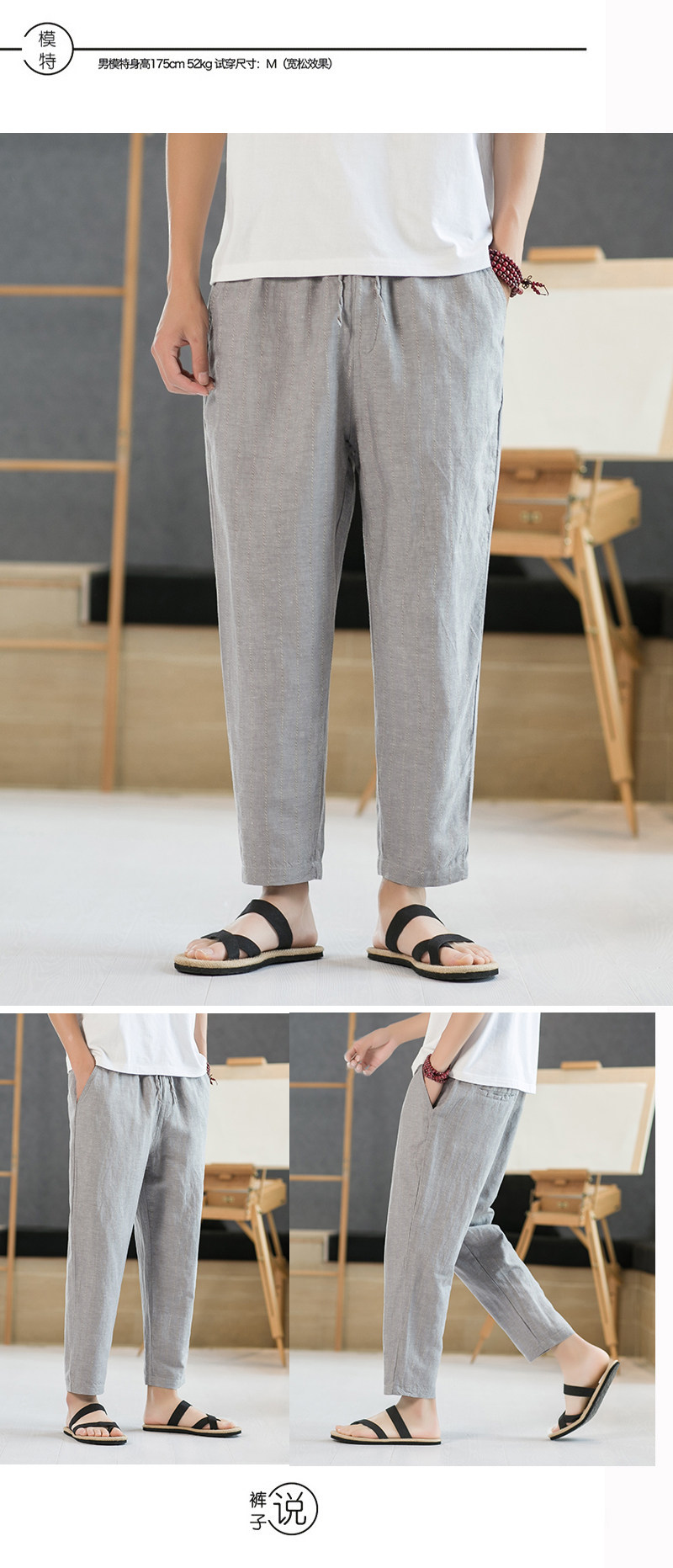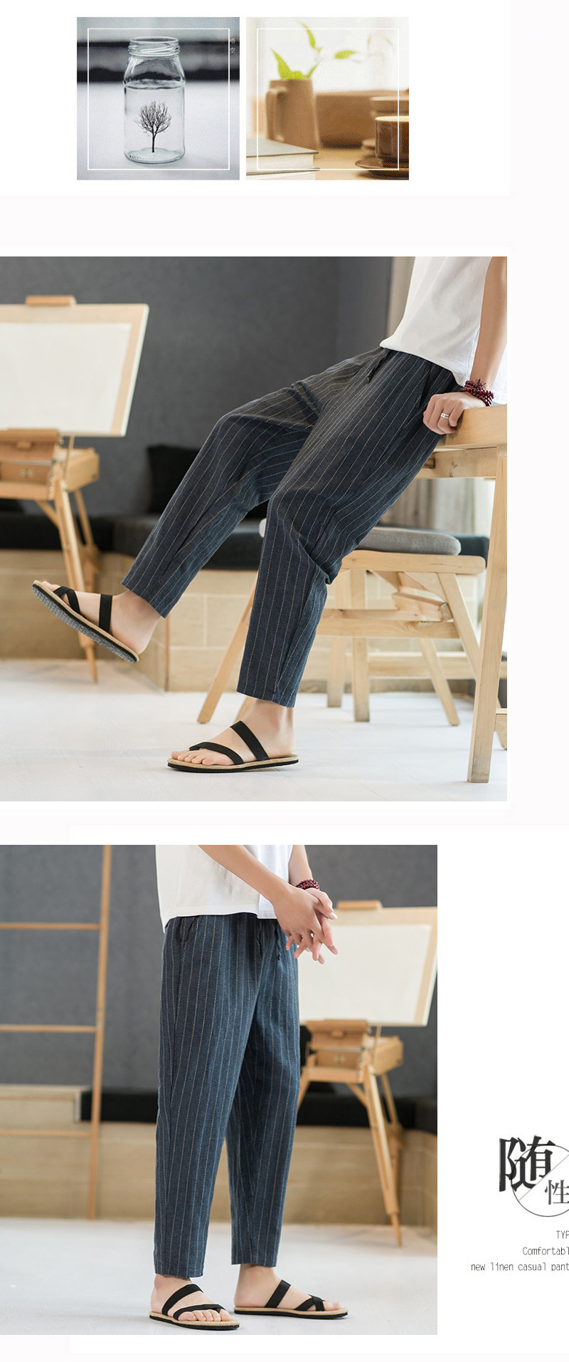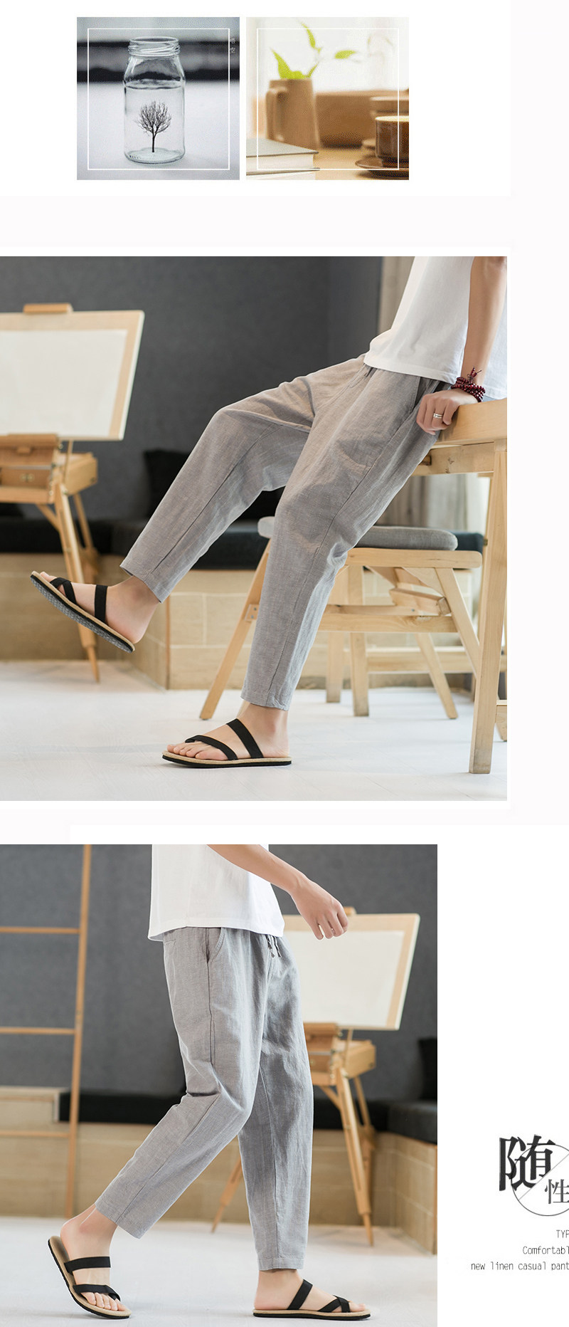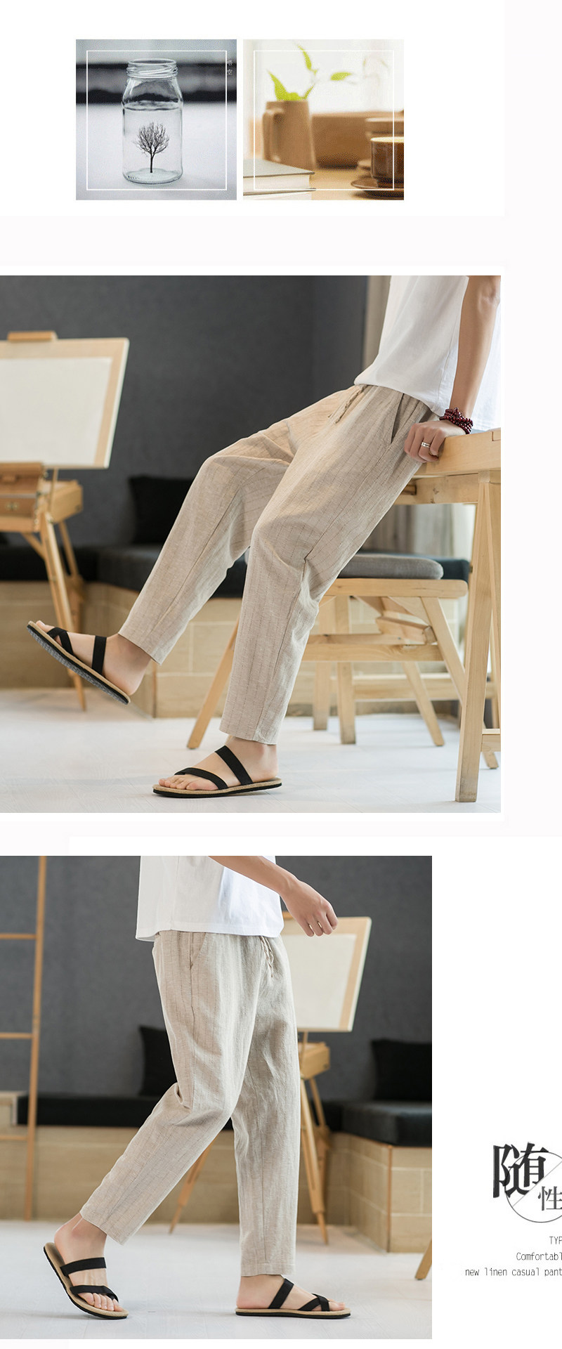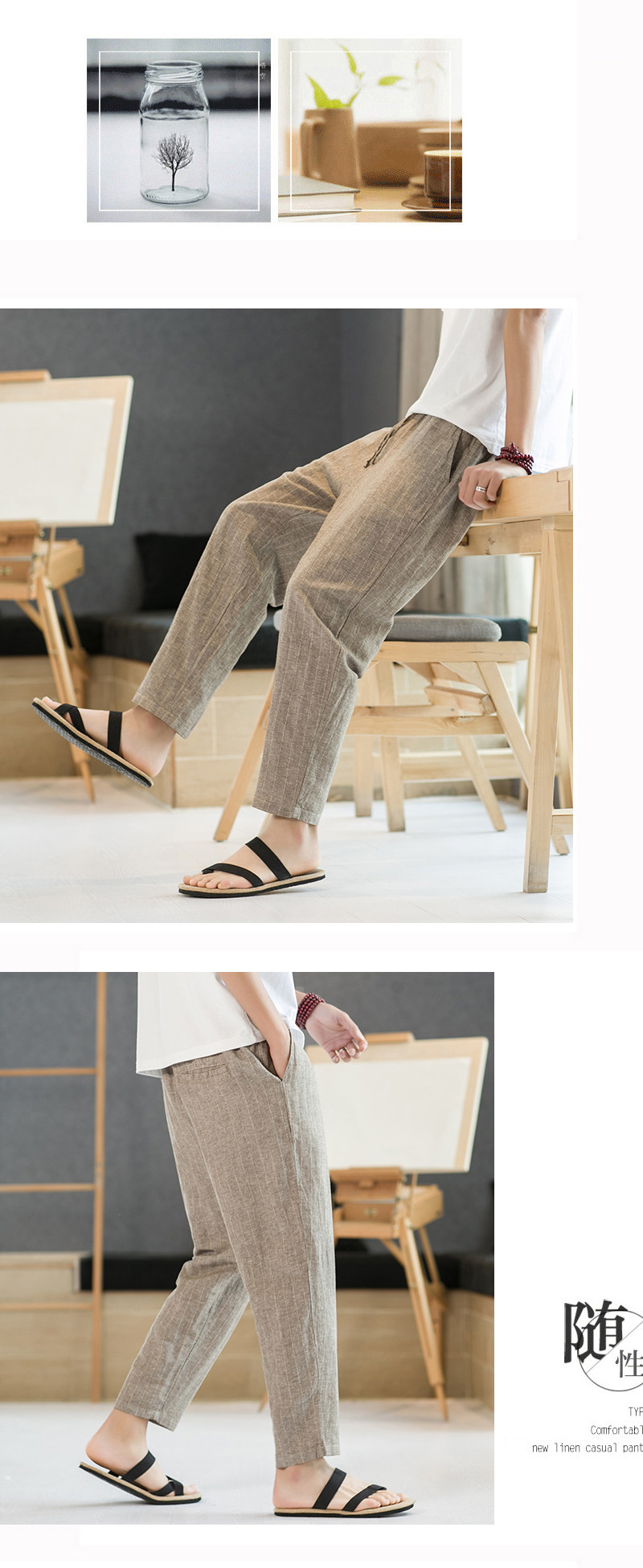 Летние штаны для отдыха, свободный крой, из хлопка и льна, китайский стиль