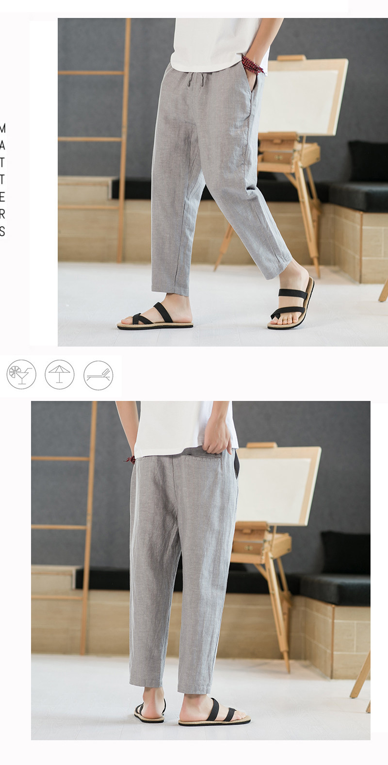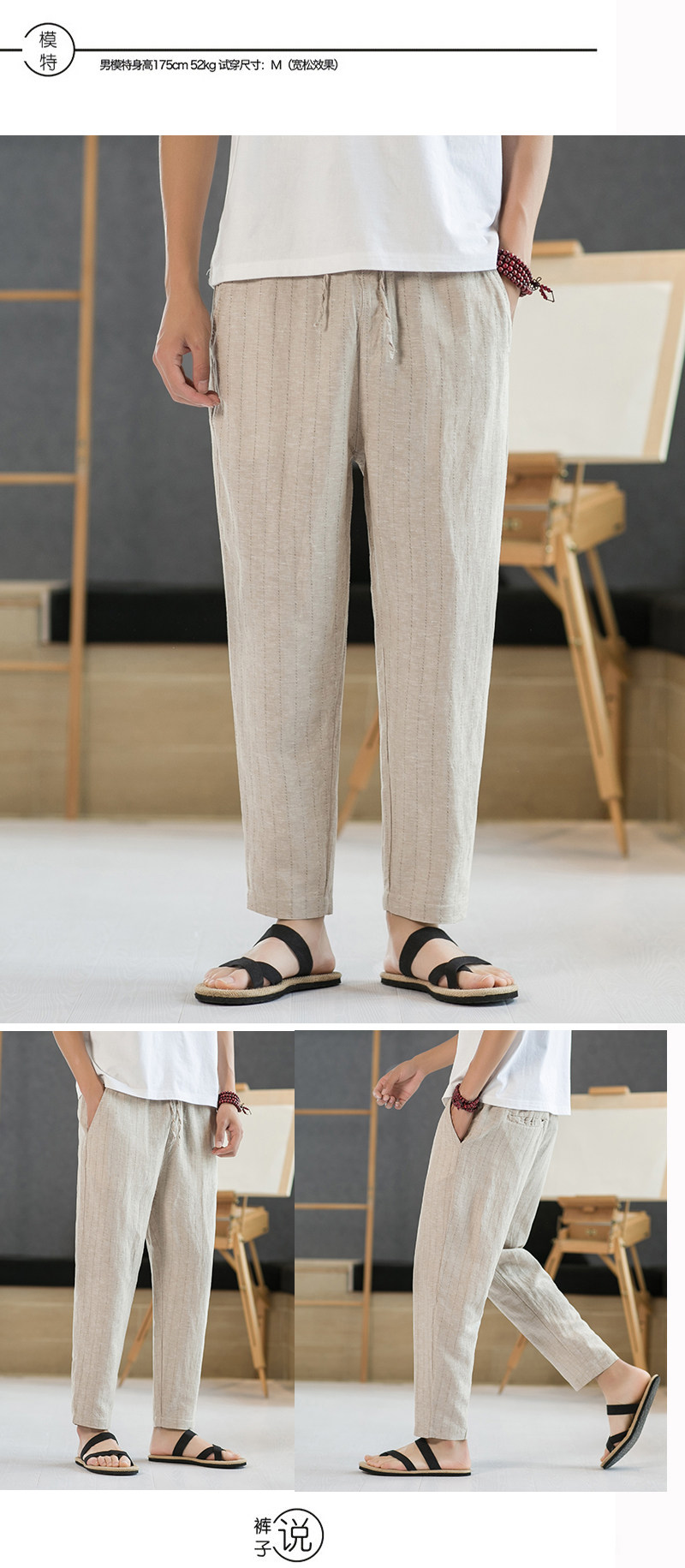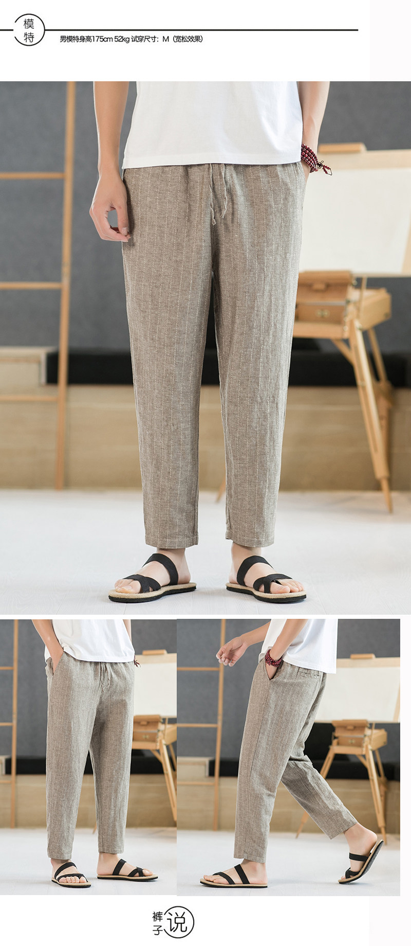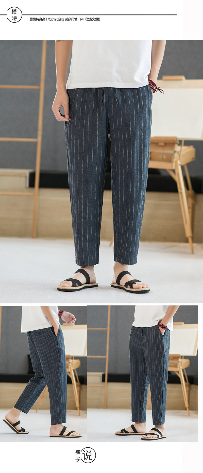 Летние штаны для отдыха, свободный крой, из хлопка и льна, китайский стиль