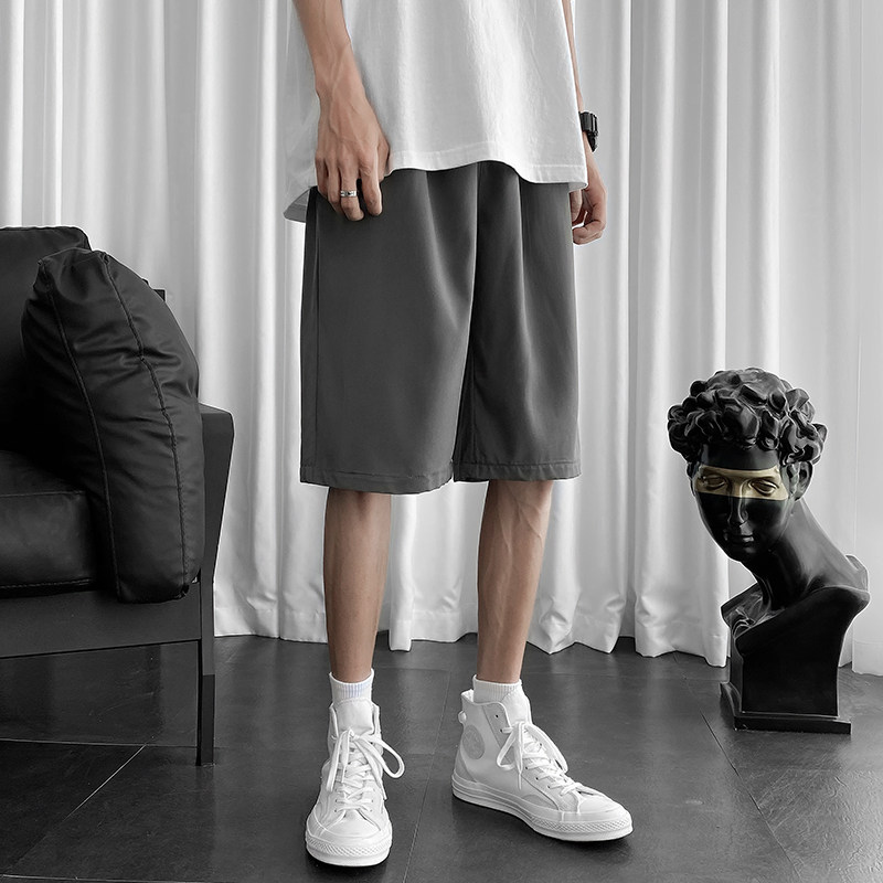 Шелковый костюм, мужские летние брендовые шорты, пляжные однотонные штаны, для влюбленных, большой размер