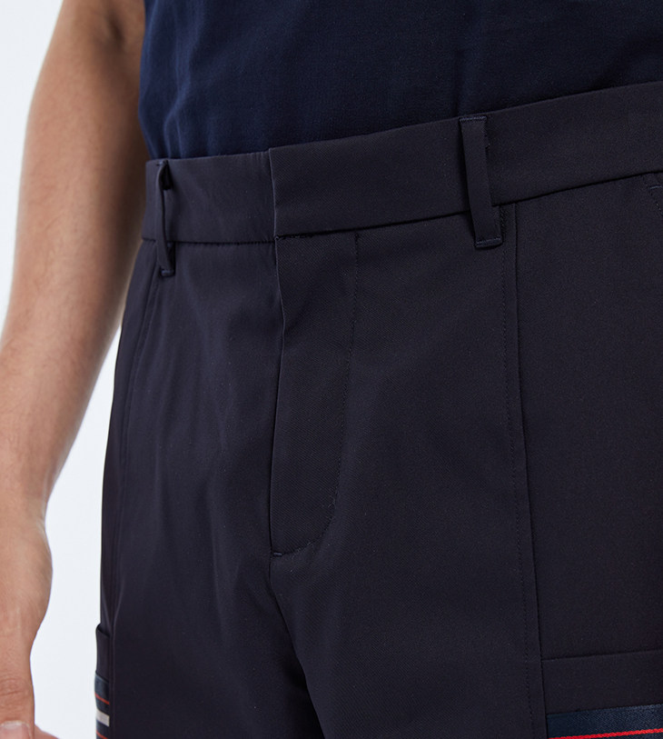 ![]() ![]() Свободная талия, устранение утомительного пояса | ![]() ![]() Карманы с клапанами на обеих штанинах. |