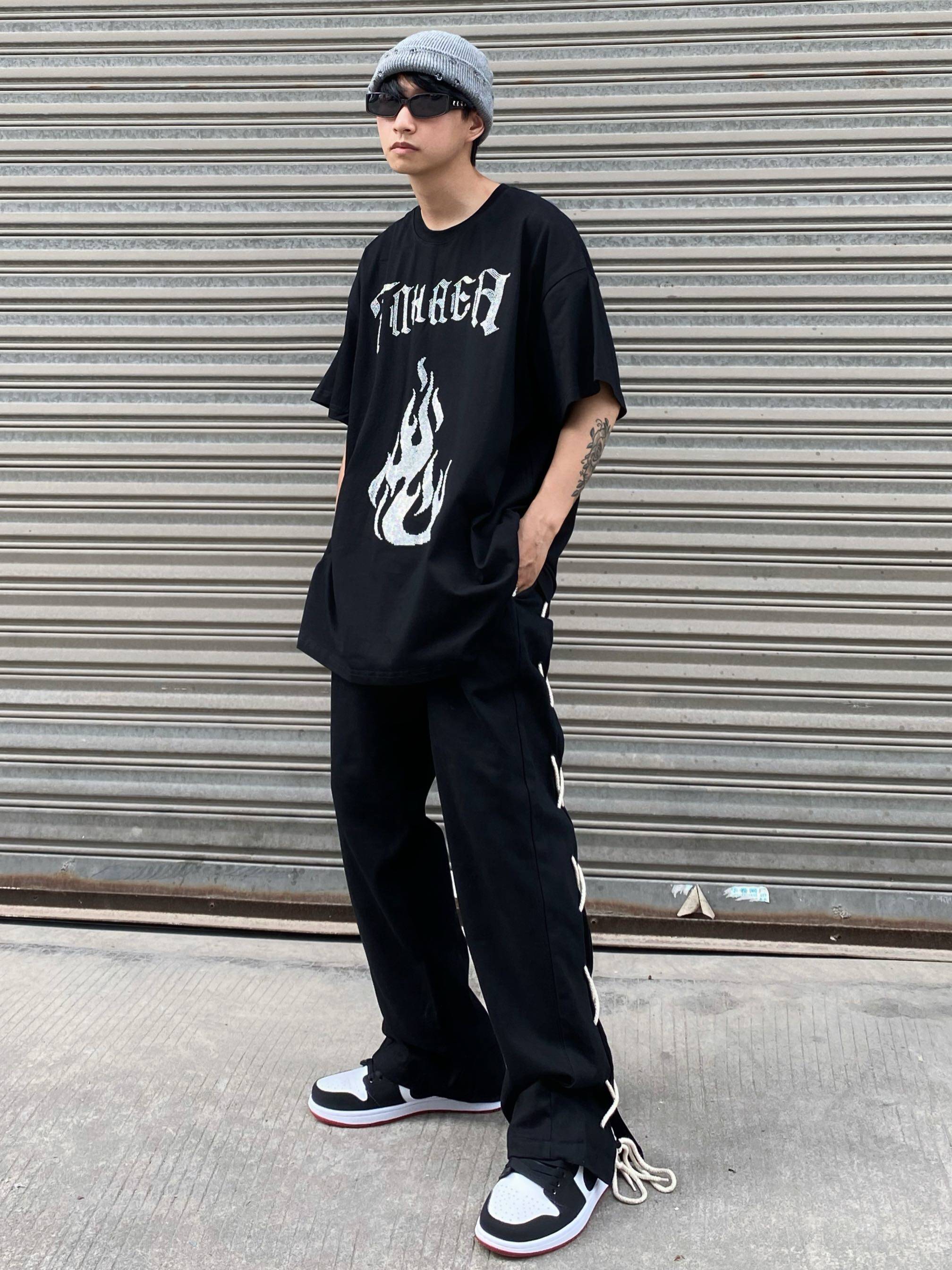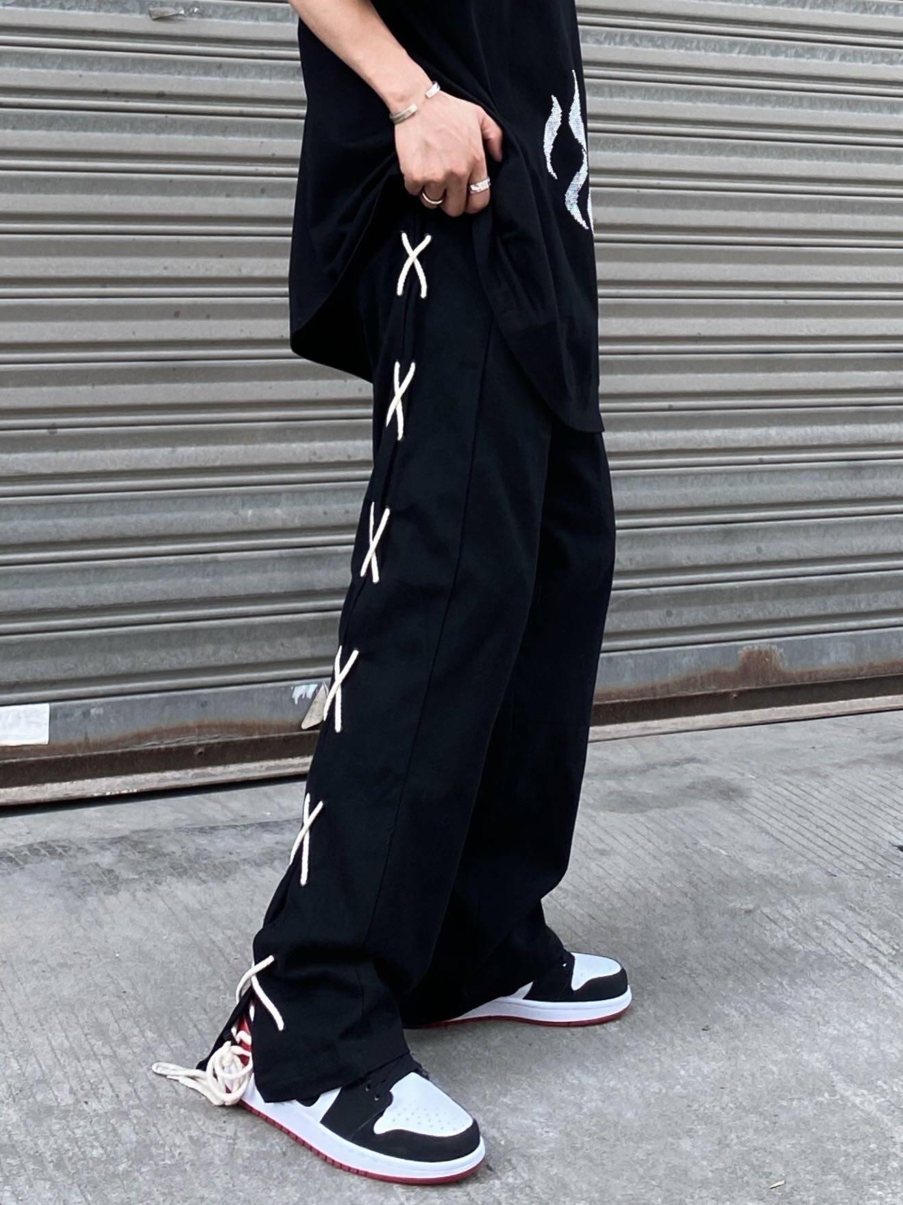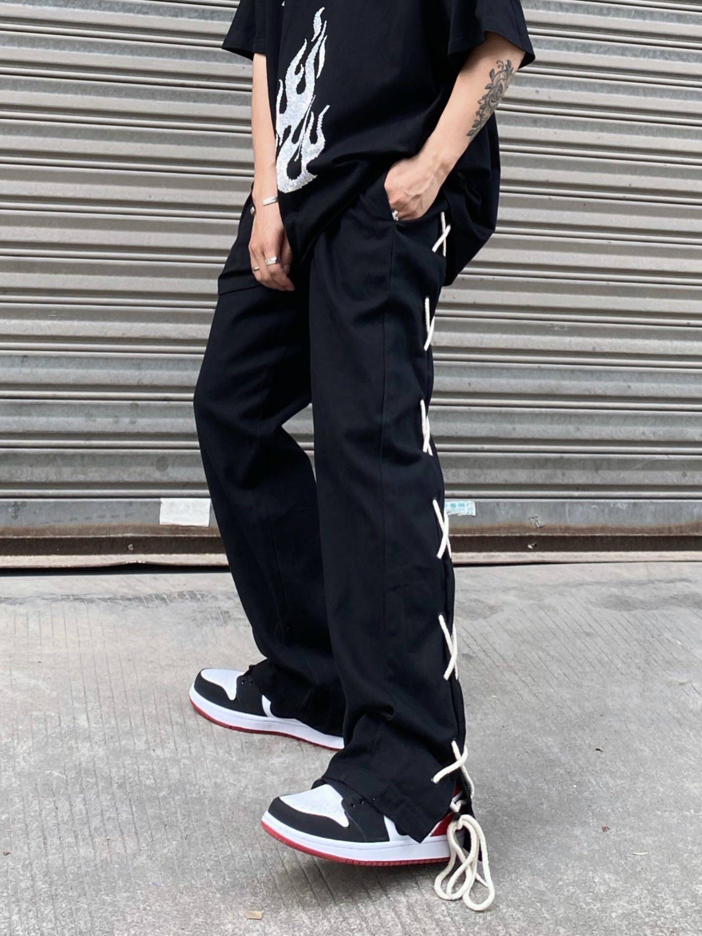 Tide, тонкие черные штаны, ремень в стиле хип-хоп, свободный прямой крой