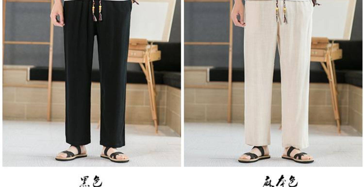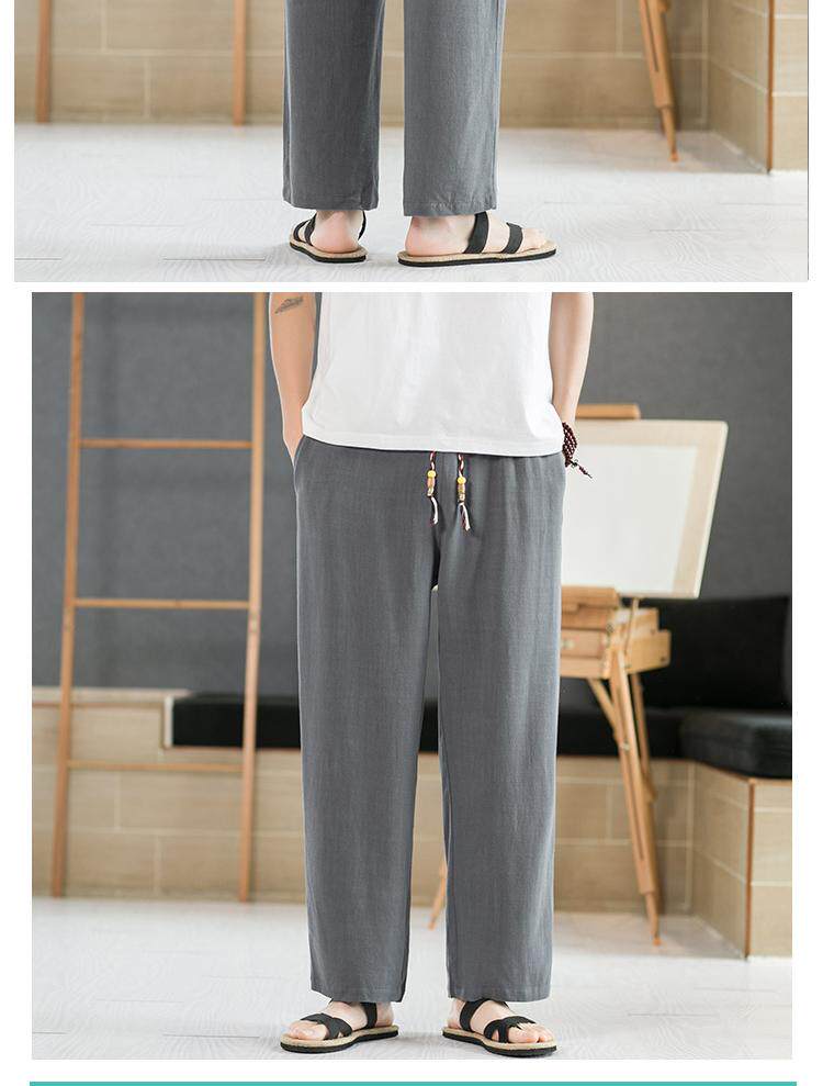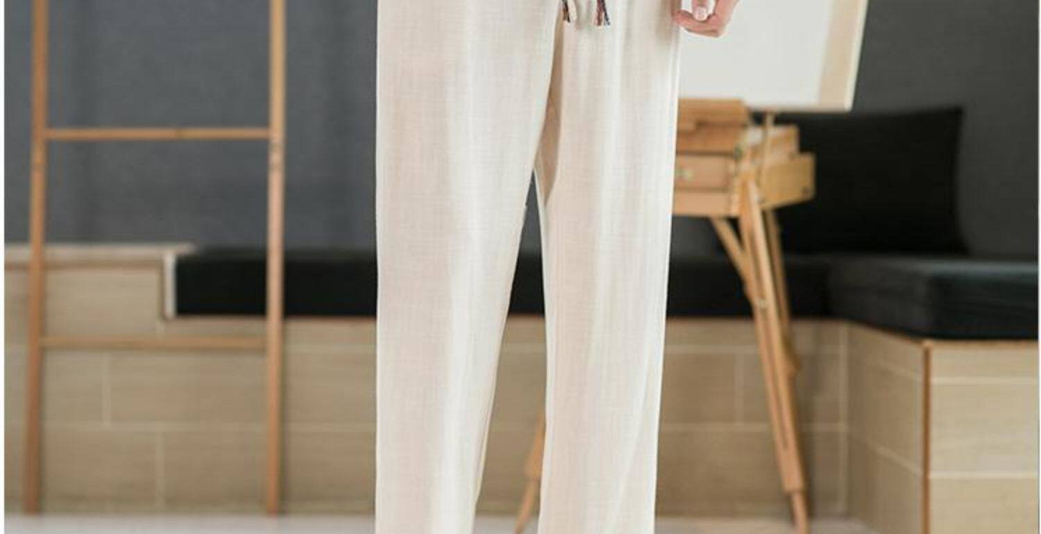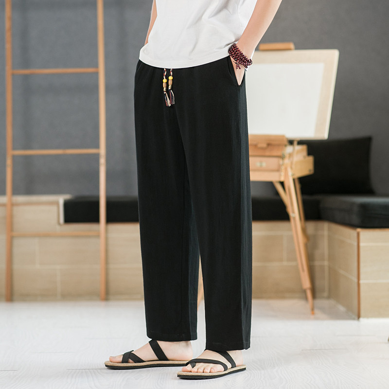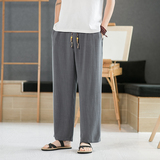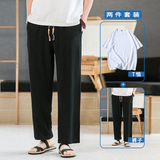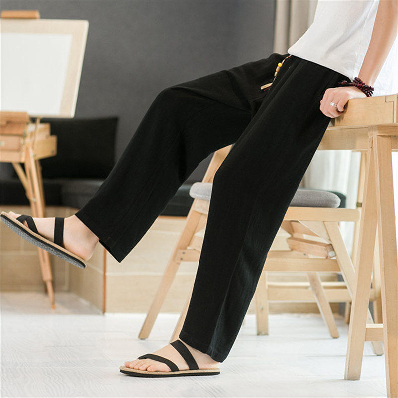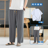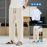 Летние тонкие мужские штаны, оверсайз, свободный прямой крой, из хлопка и льна