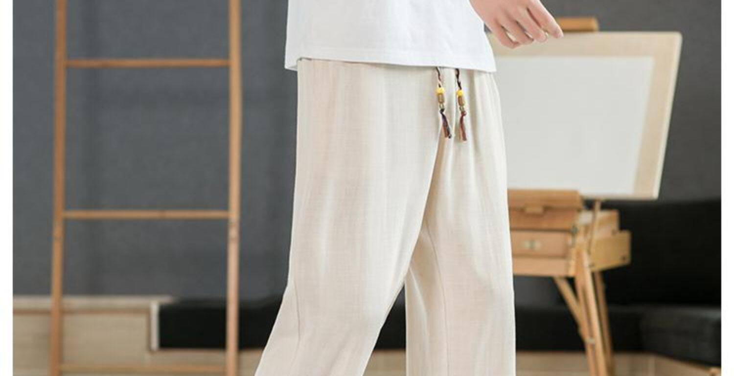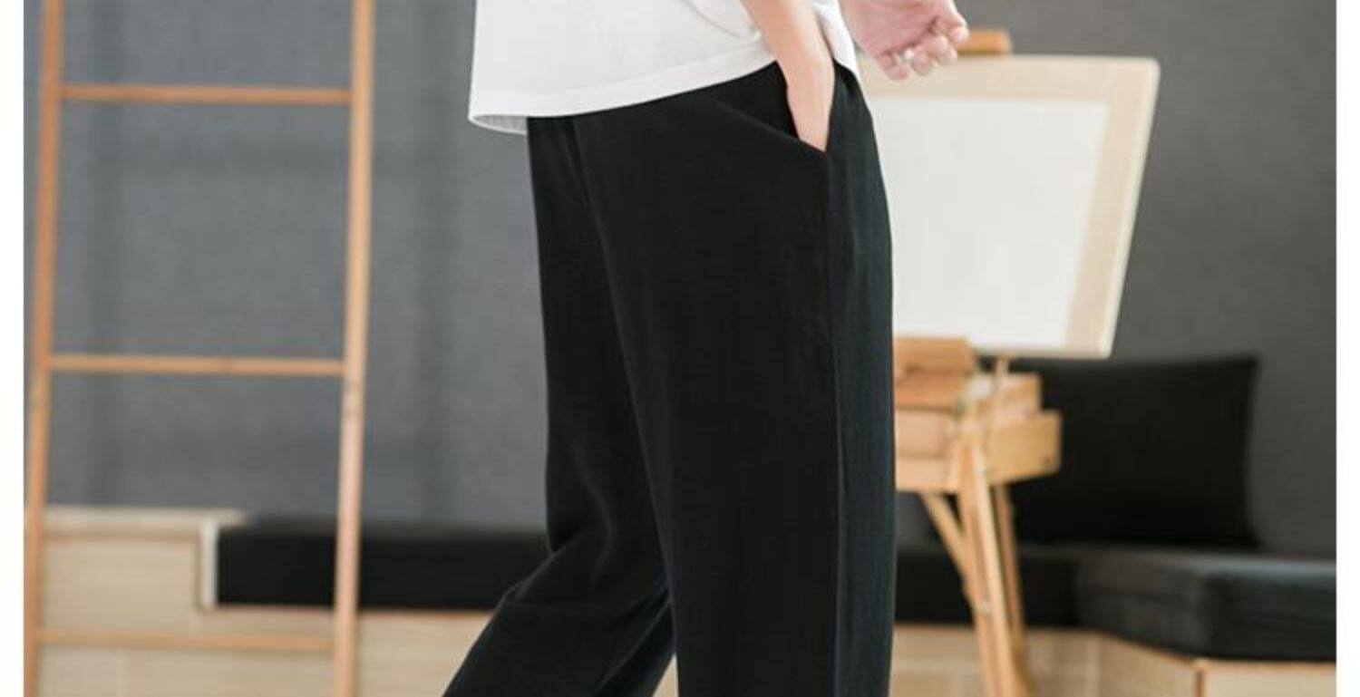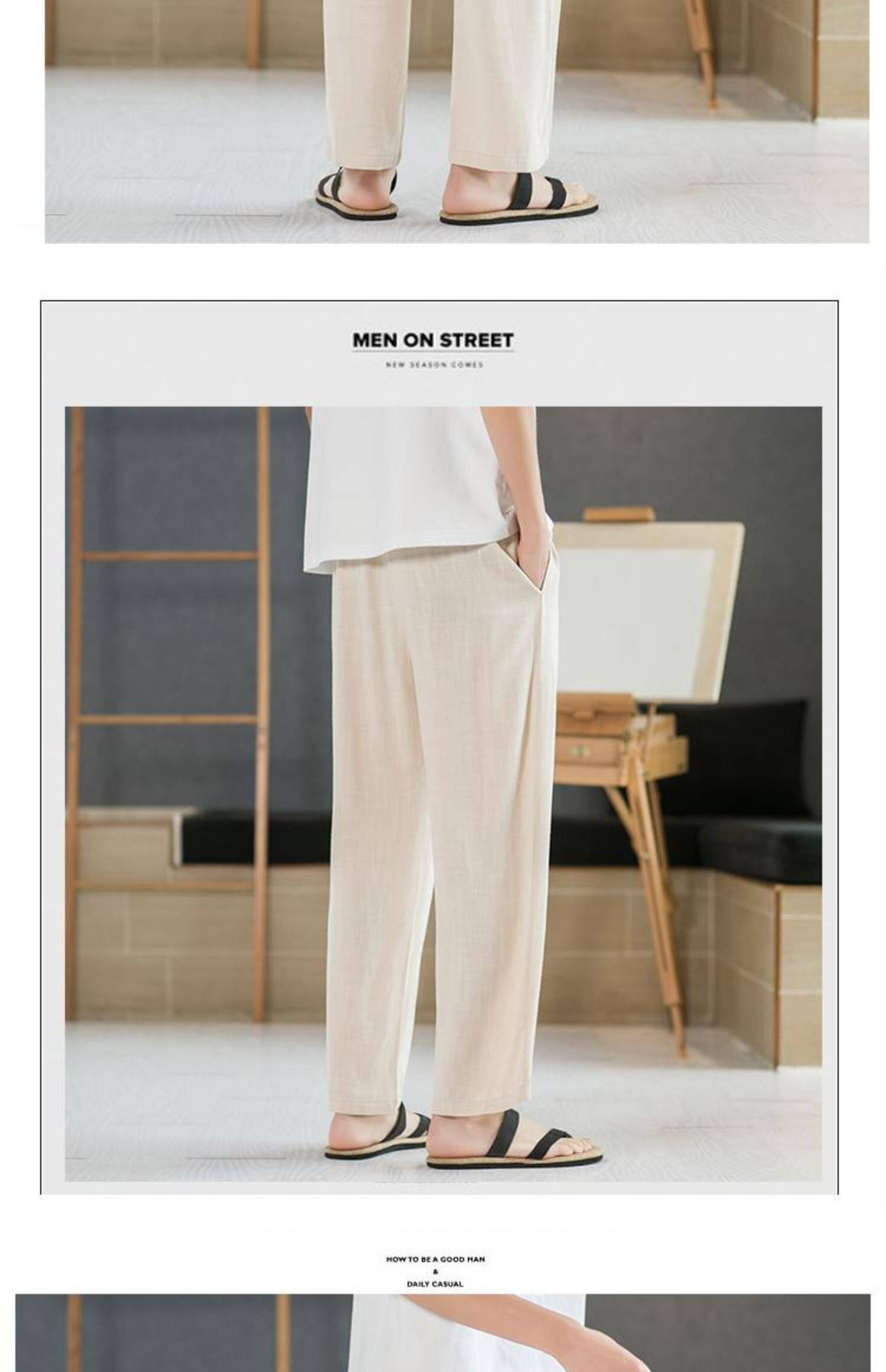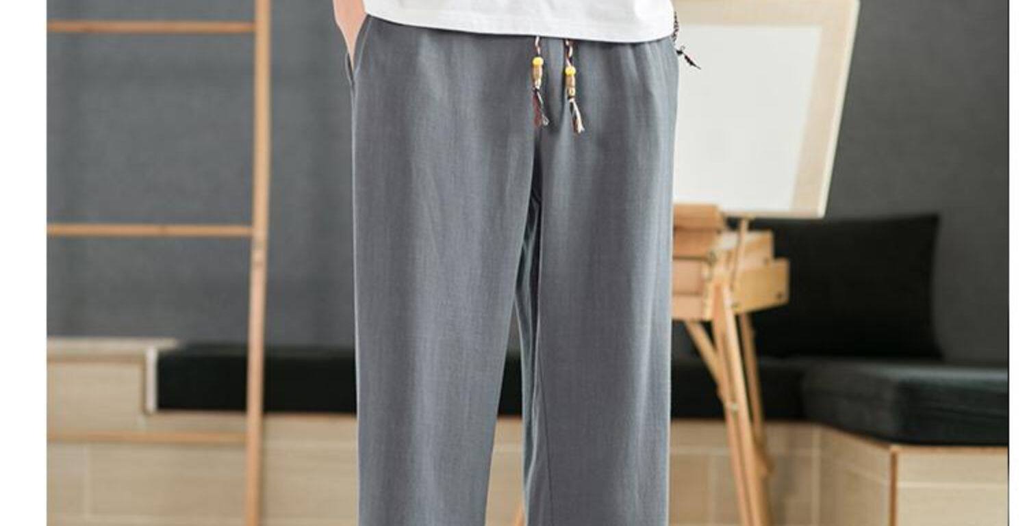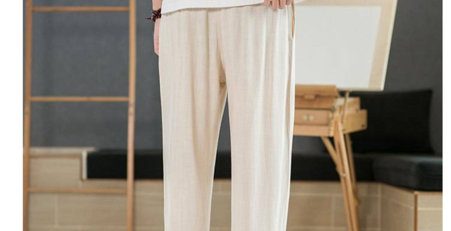 Летние тонкие мужские штаны, оверсайз, свободный прямой крой, из хлопка и льна