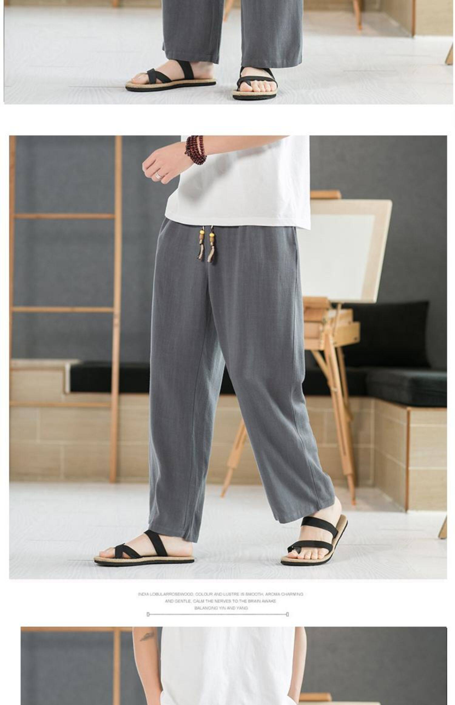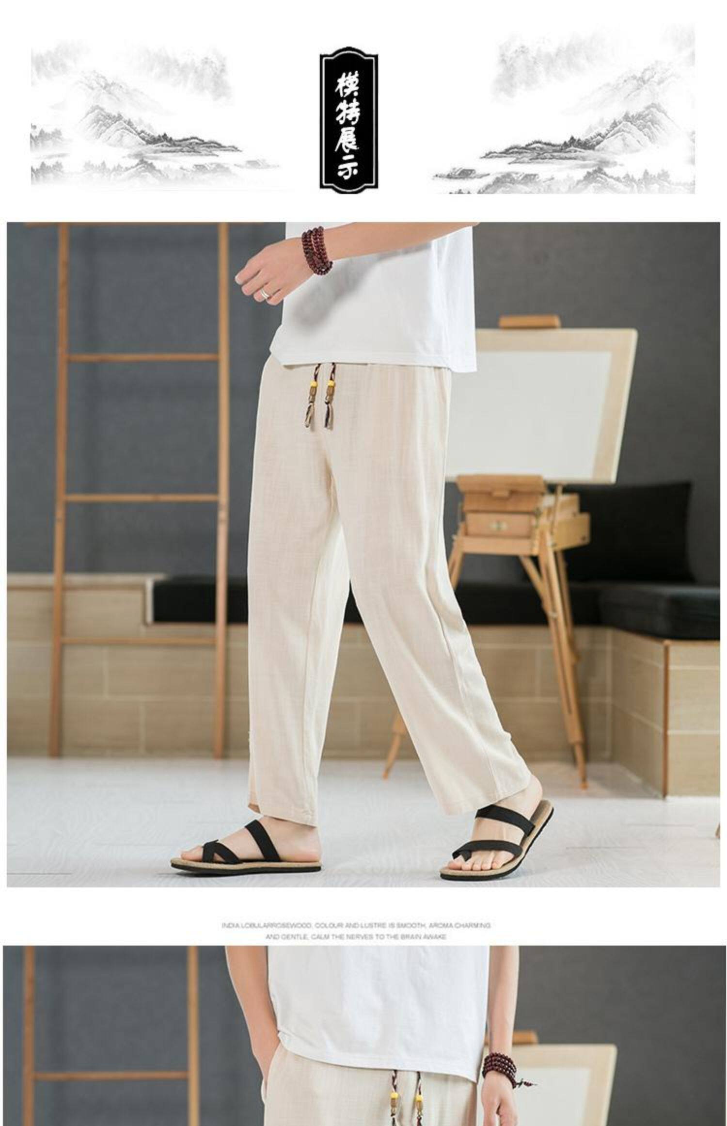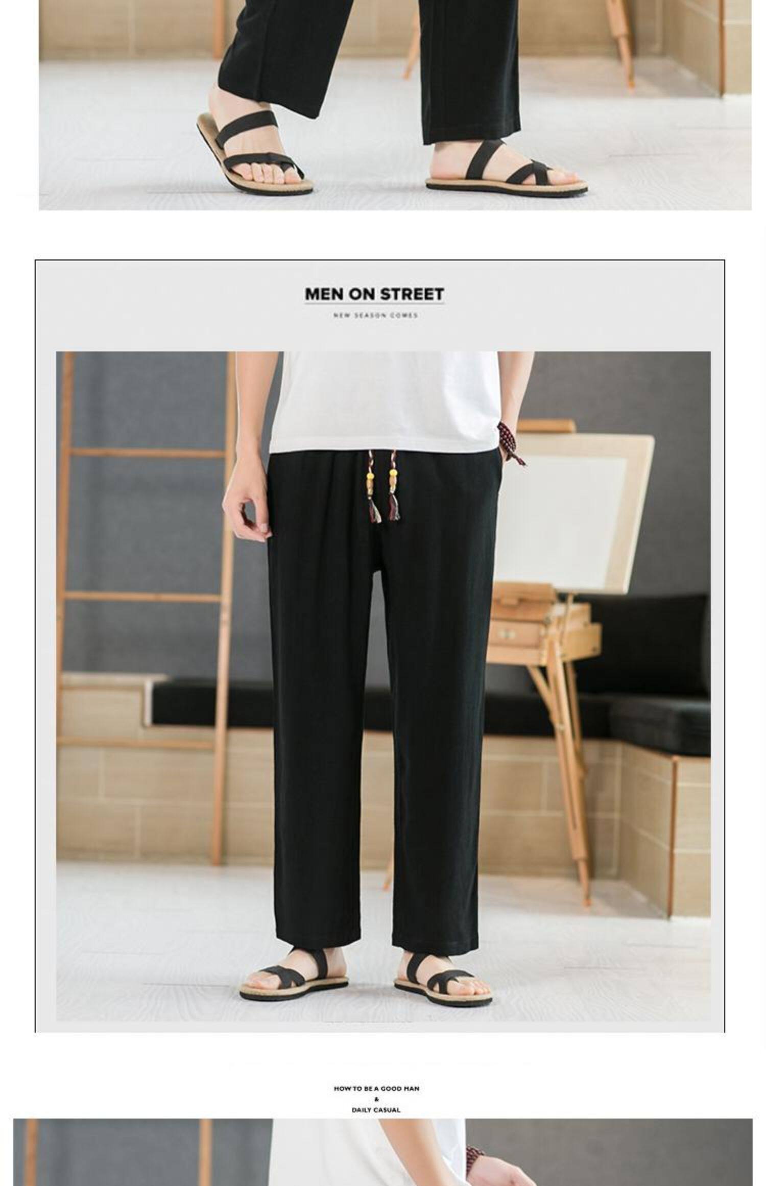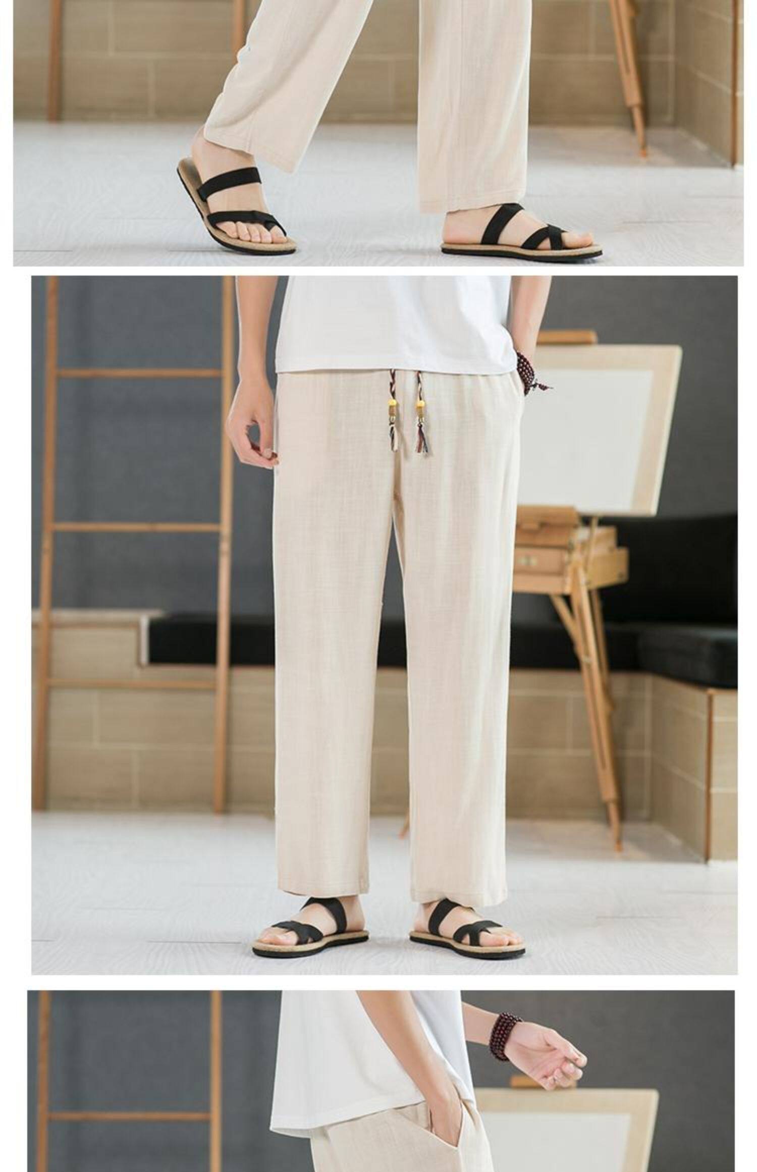 Летние тонкие мужские штаны, оверсайз, свободный прямой крой, из хлопка и льна