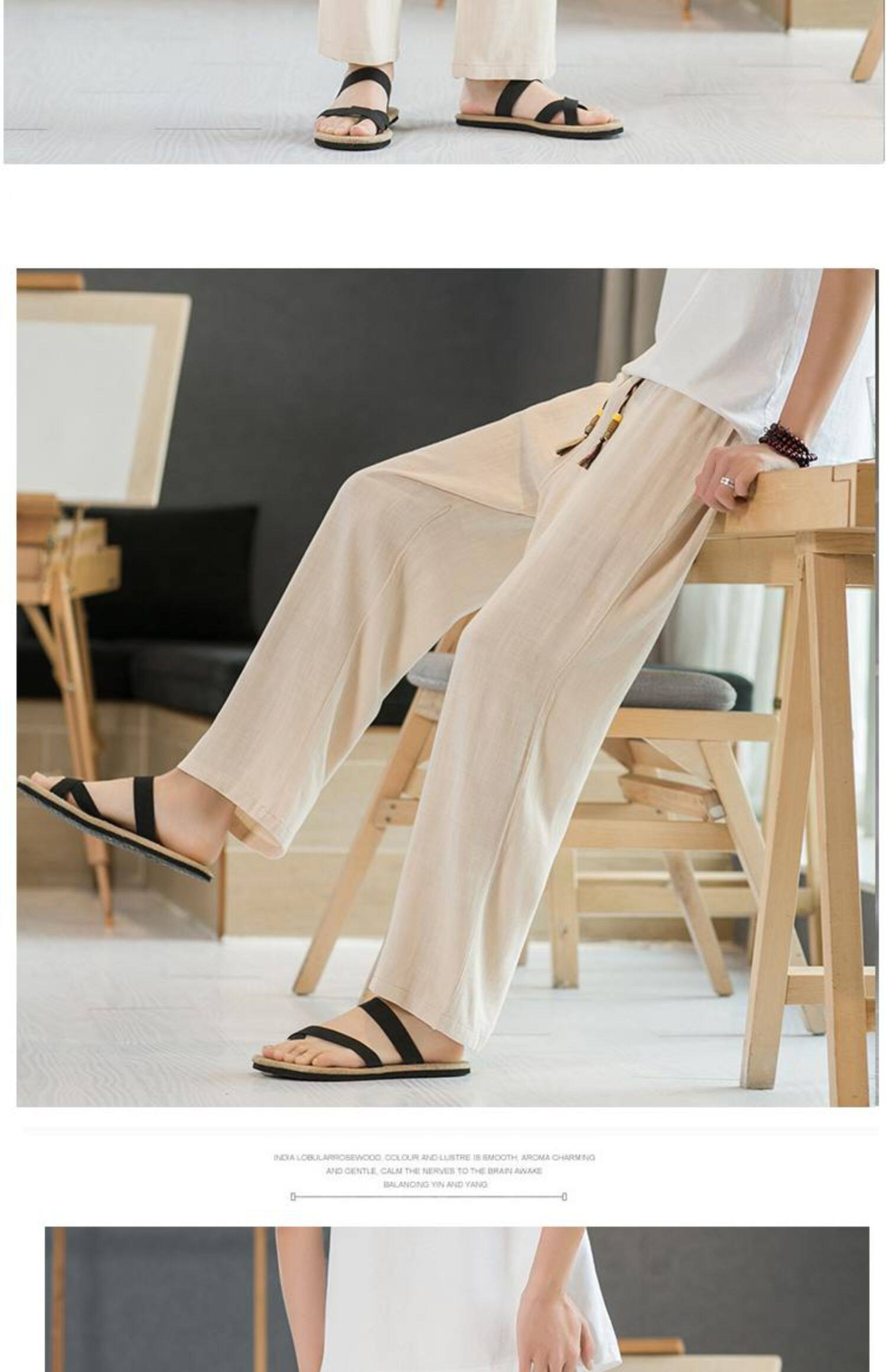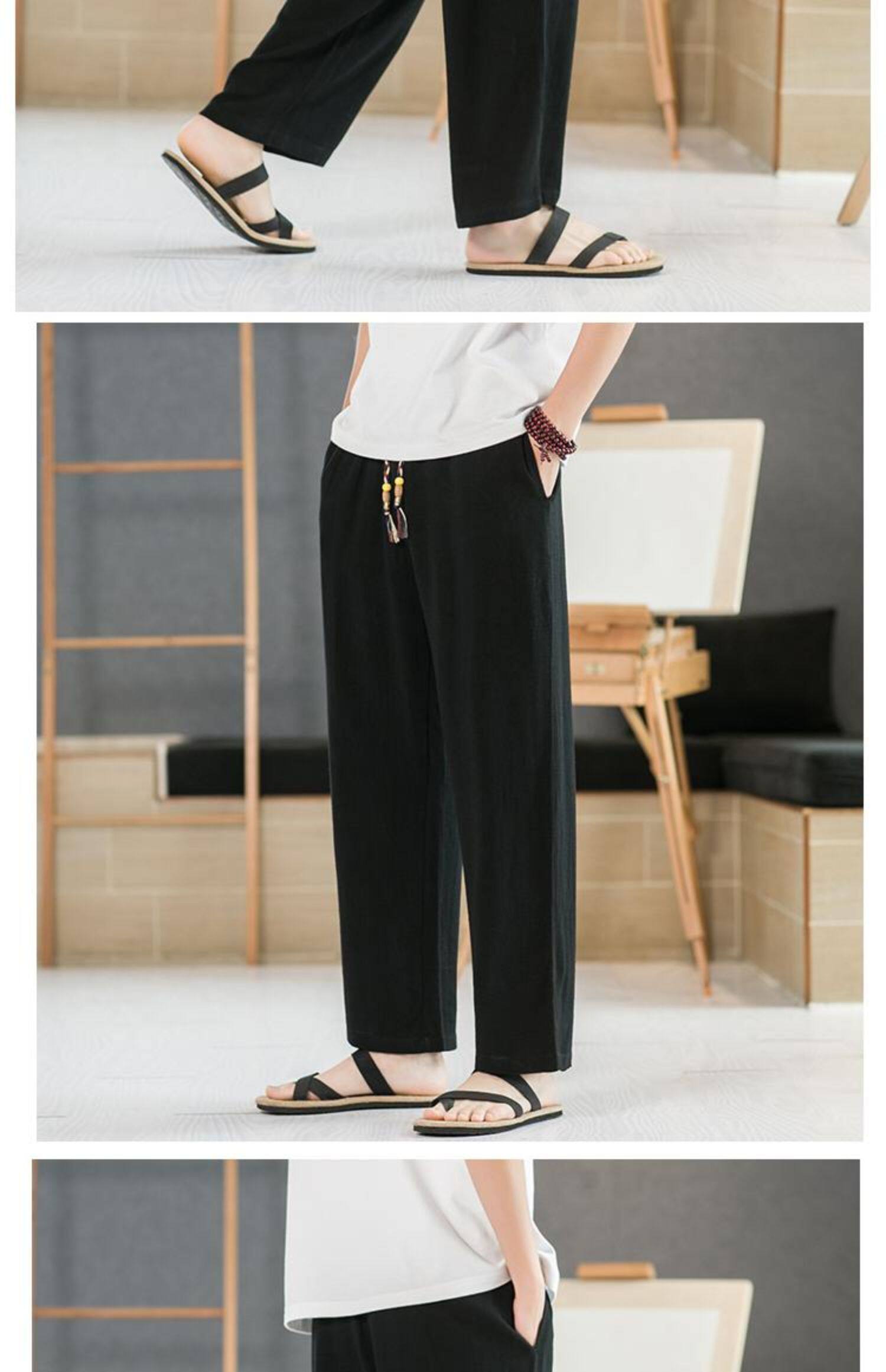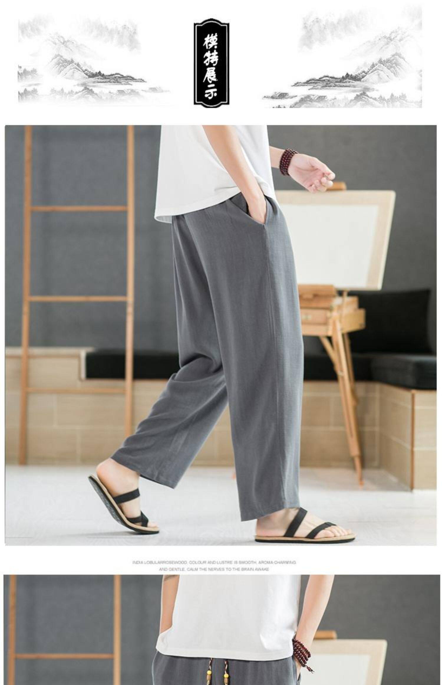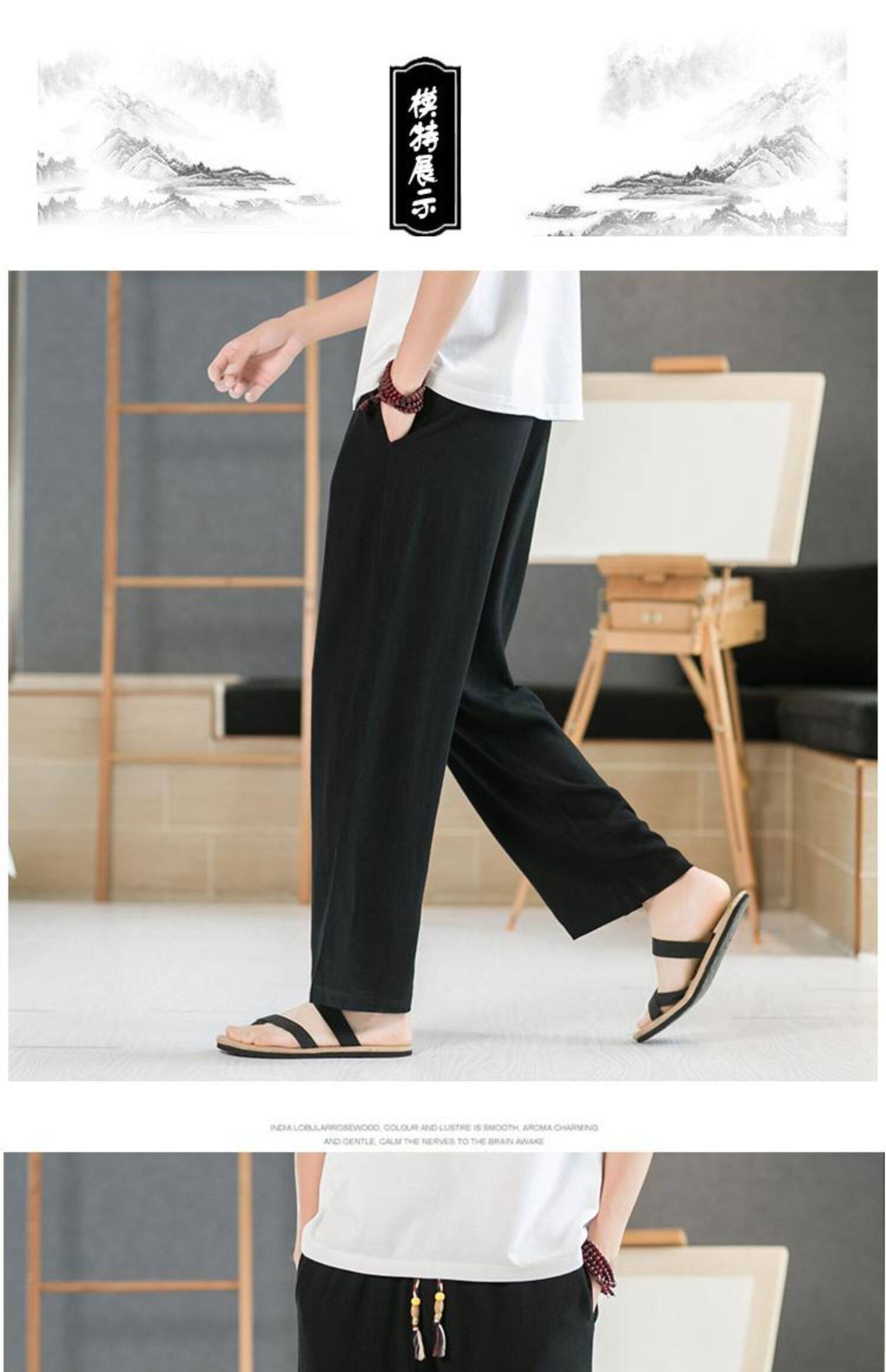 Летние тонкие мужские штаны, оверсайз, свободный прямой крой, из хлопка и льна