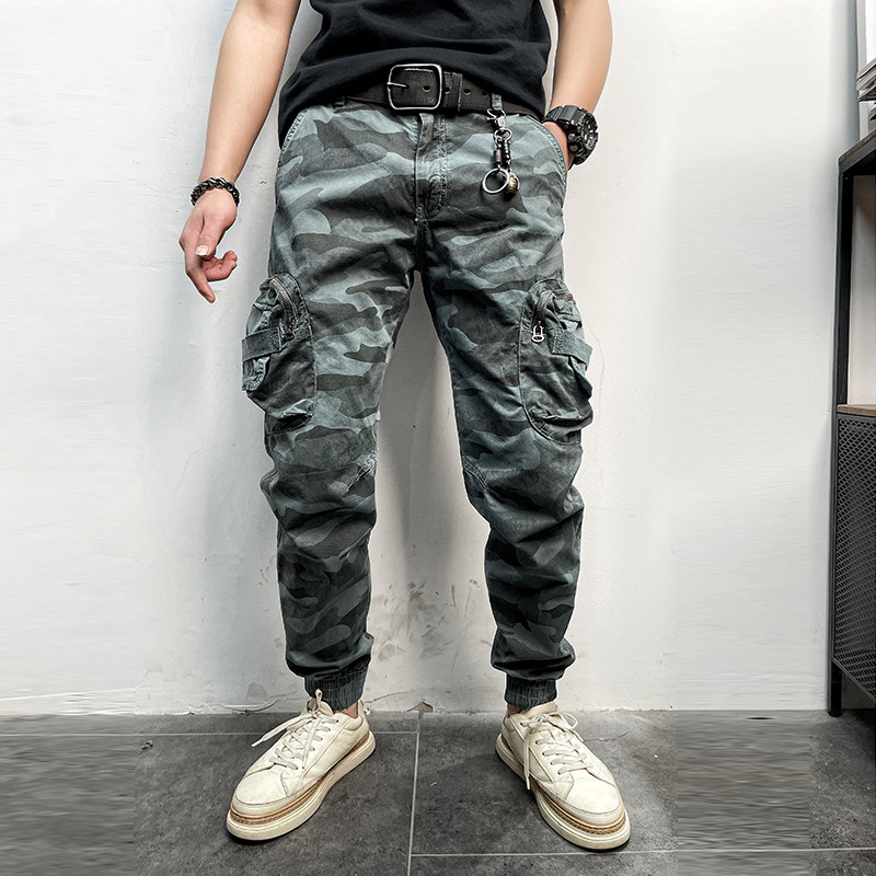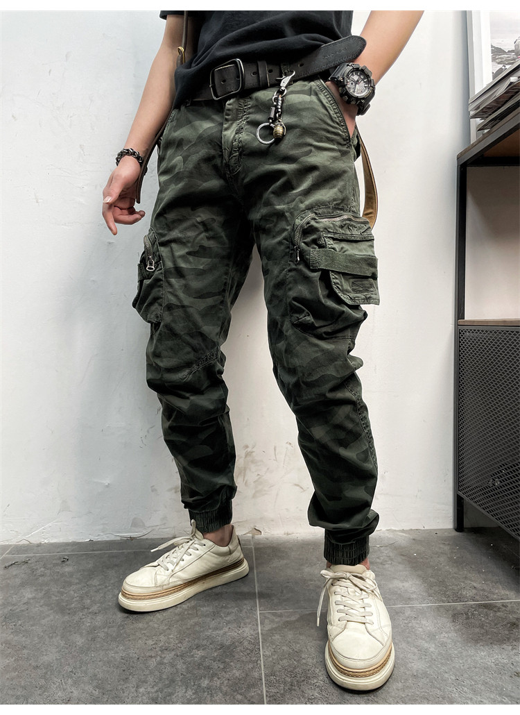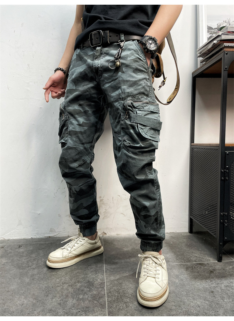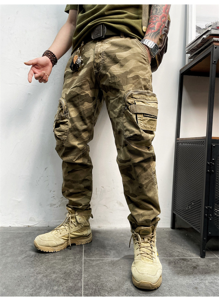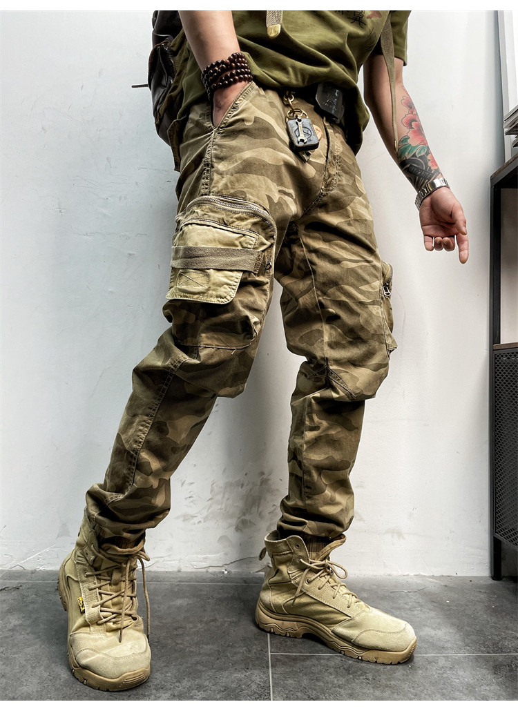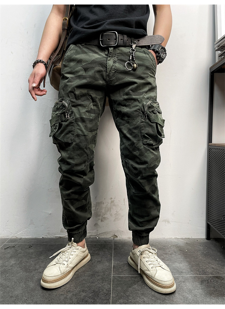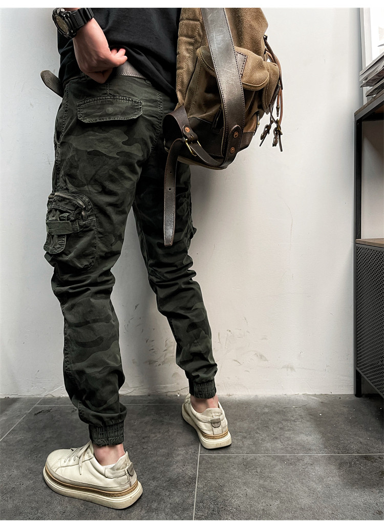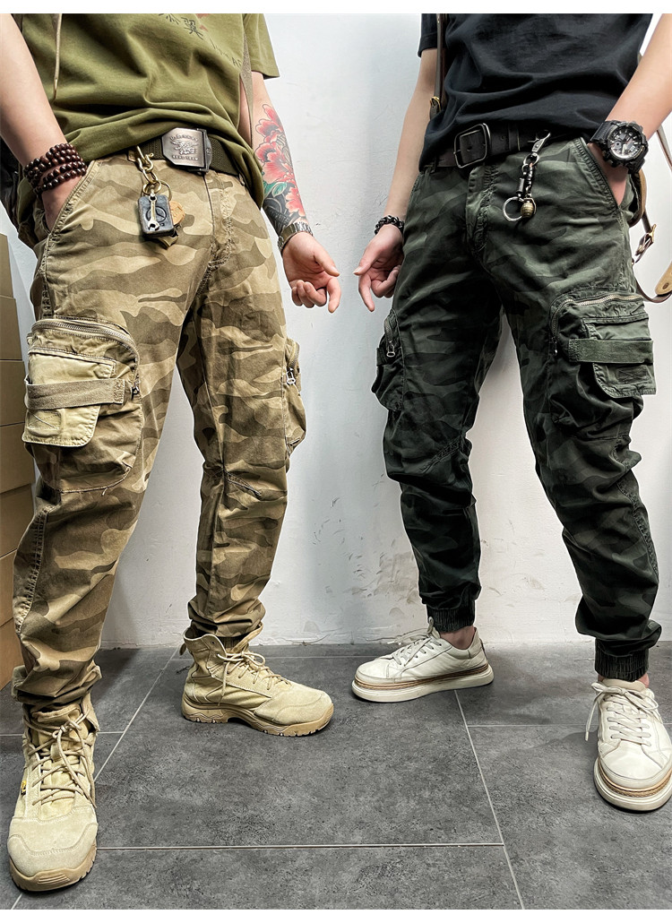 11580 Американские ретро молодые мужские тонкие брюки с завязками на ногах, камуфляжные, с большим карманом, повседневные хлопковые рабочие брюки из стираного хлопка