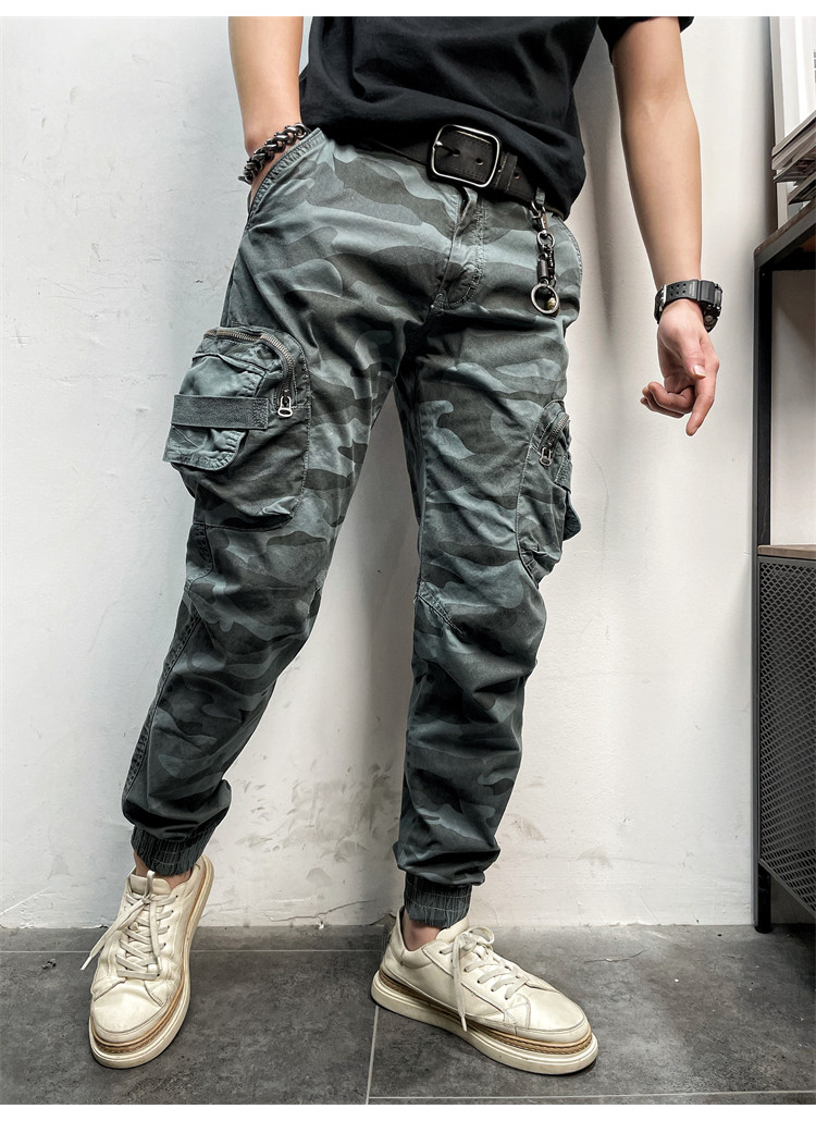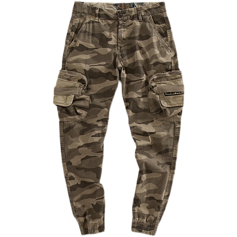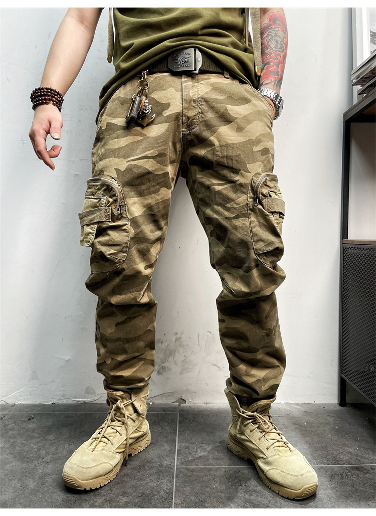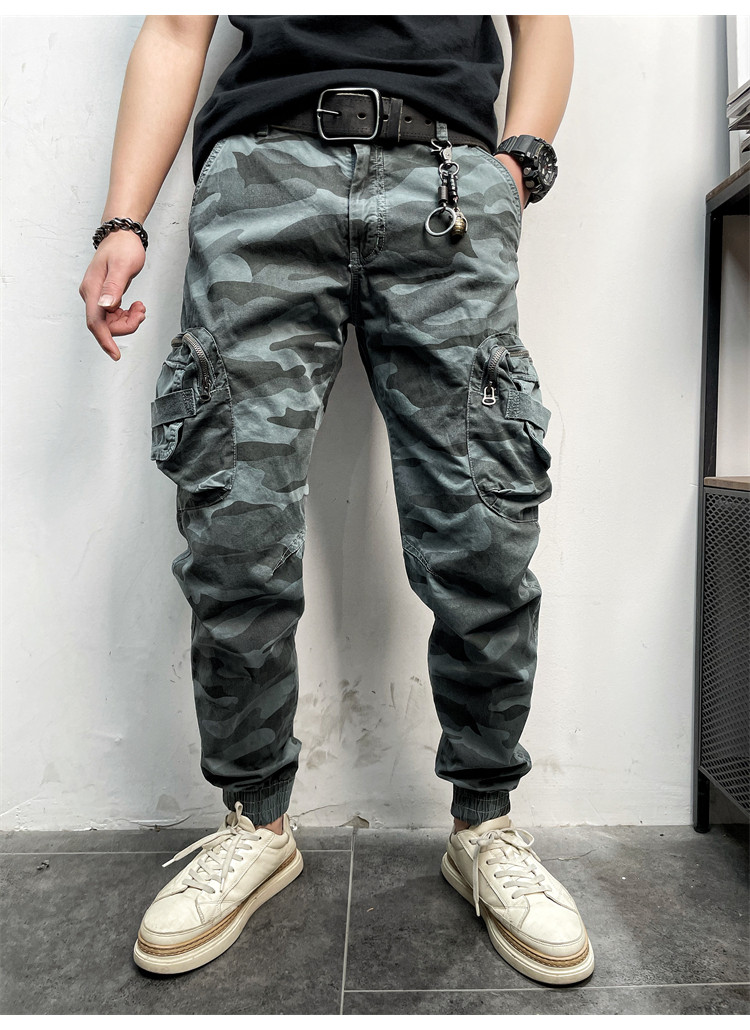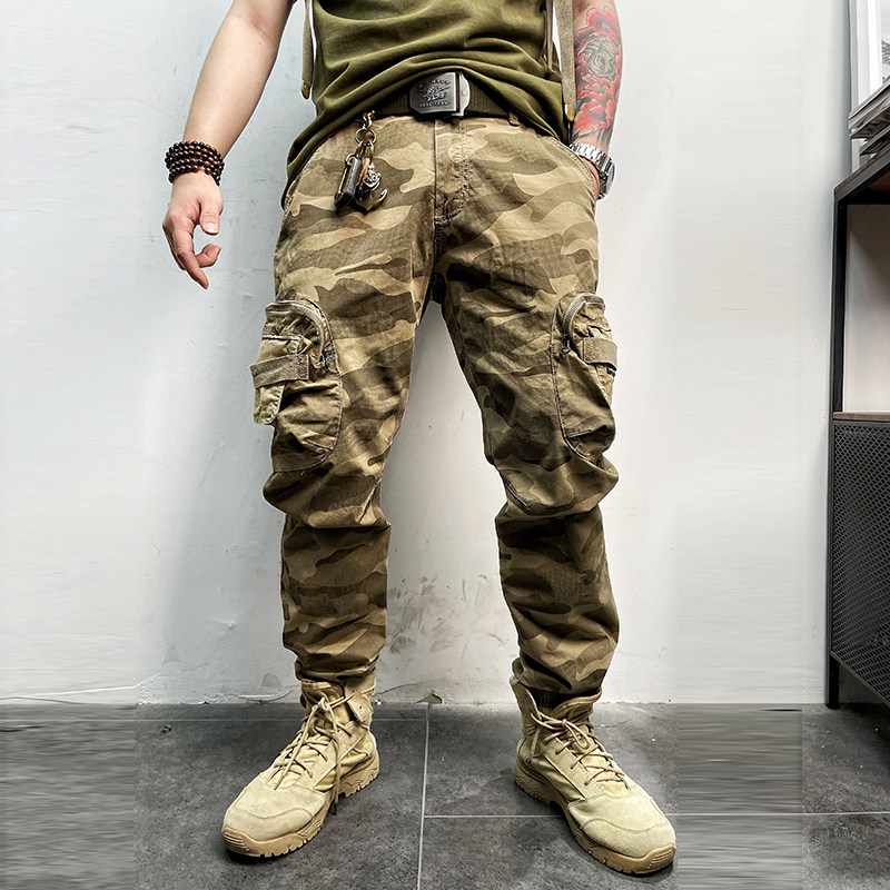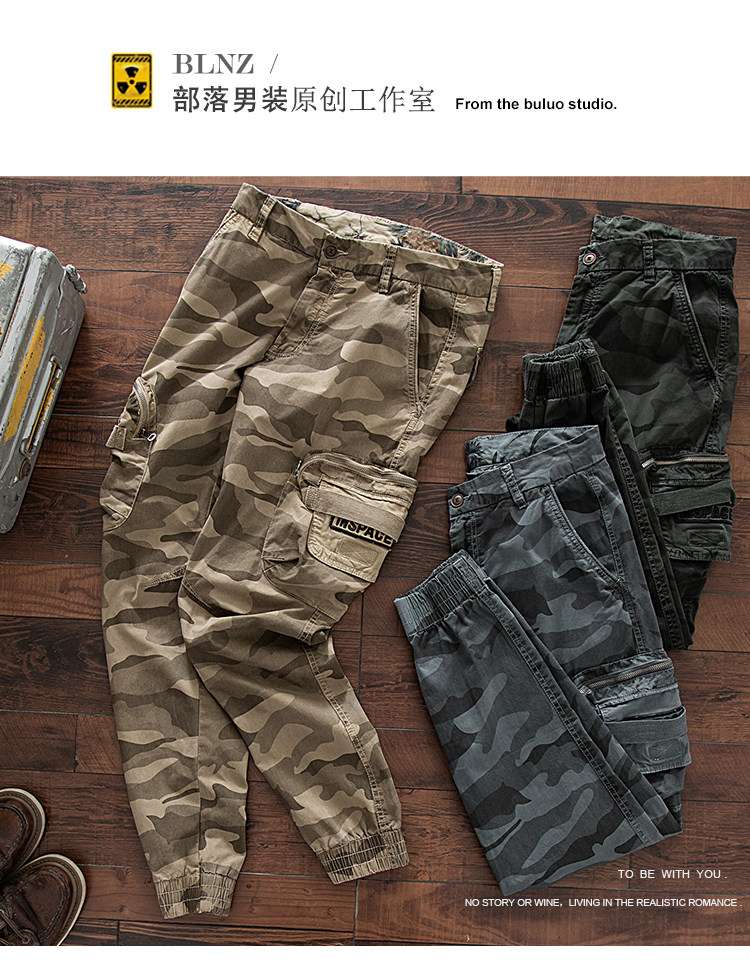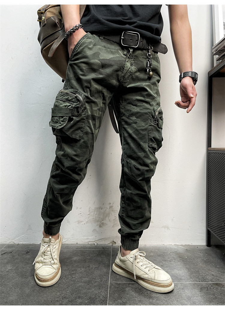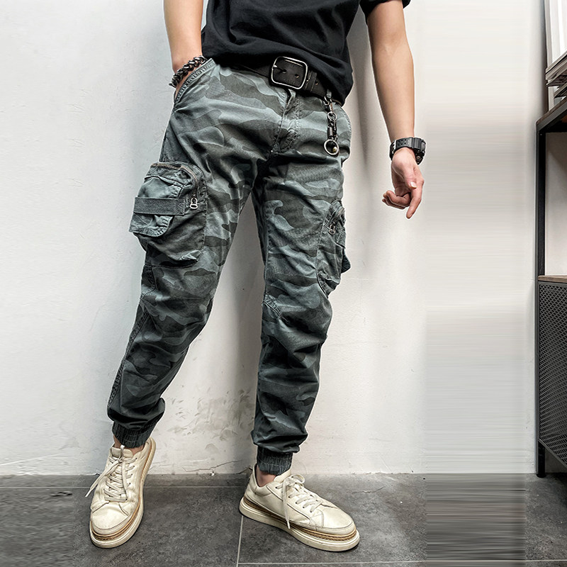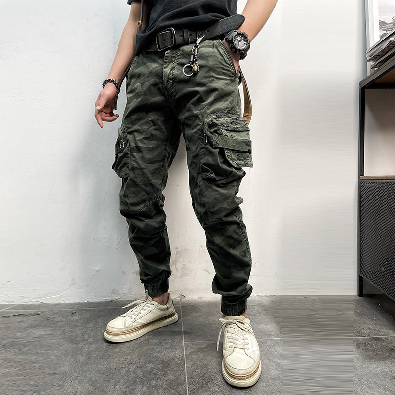 11580 Американские ретро молодые мужские тонкие брюки с завязками на ногах, камуфляжные, с большим карманом, повседневные хлопковые рабочие брюки из стираного хлопка