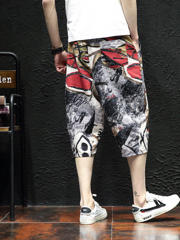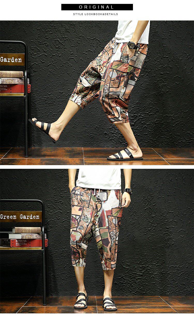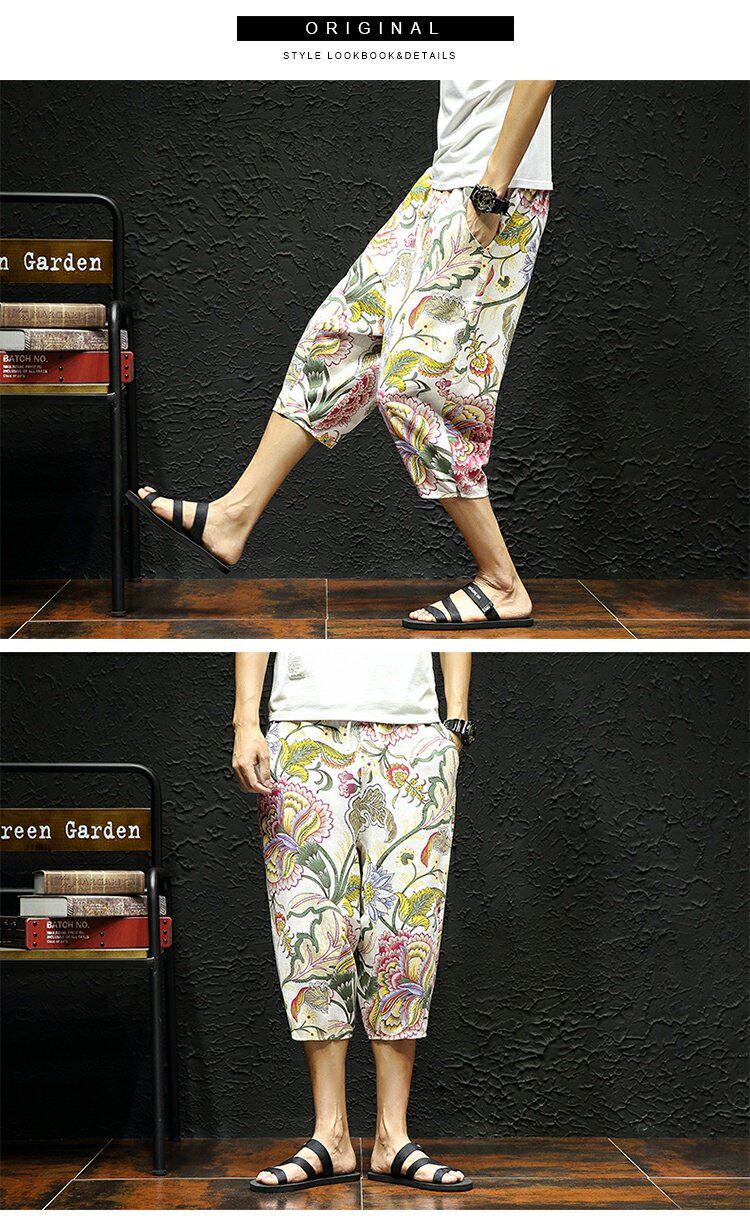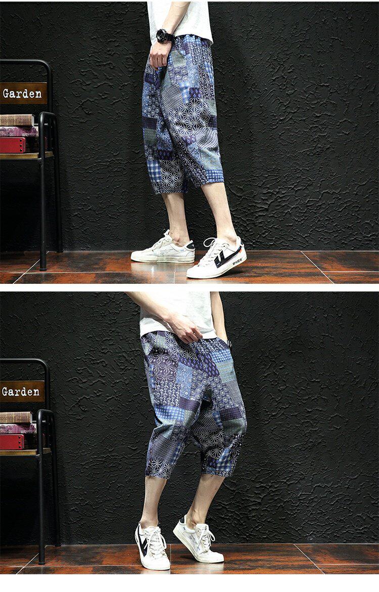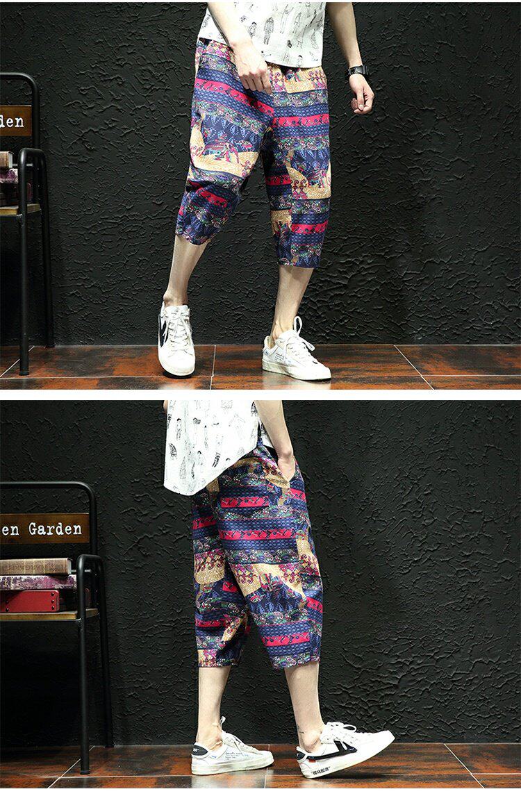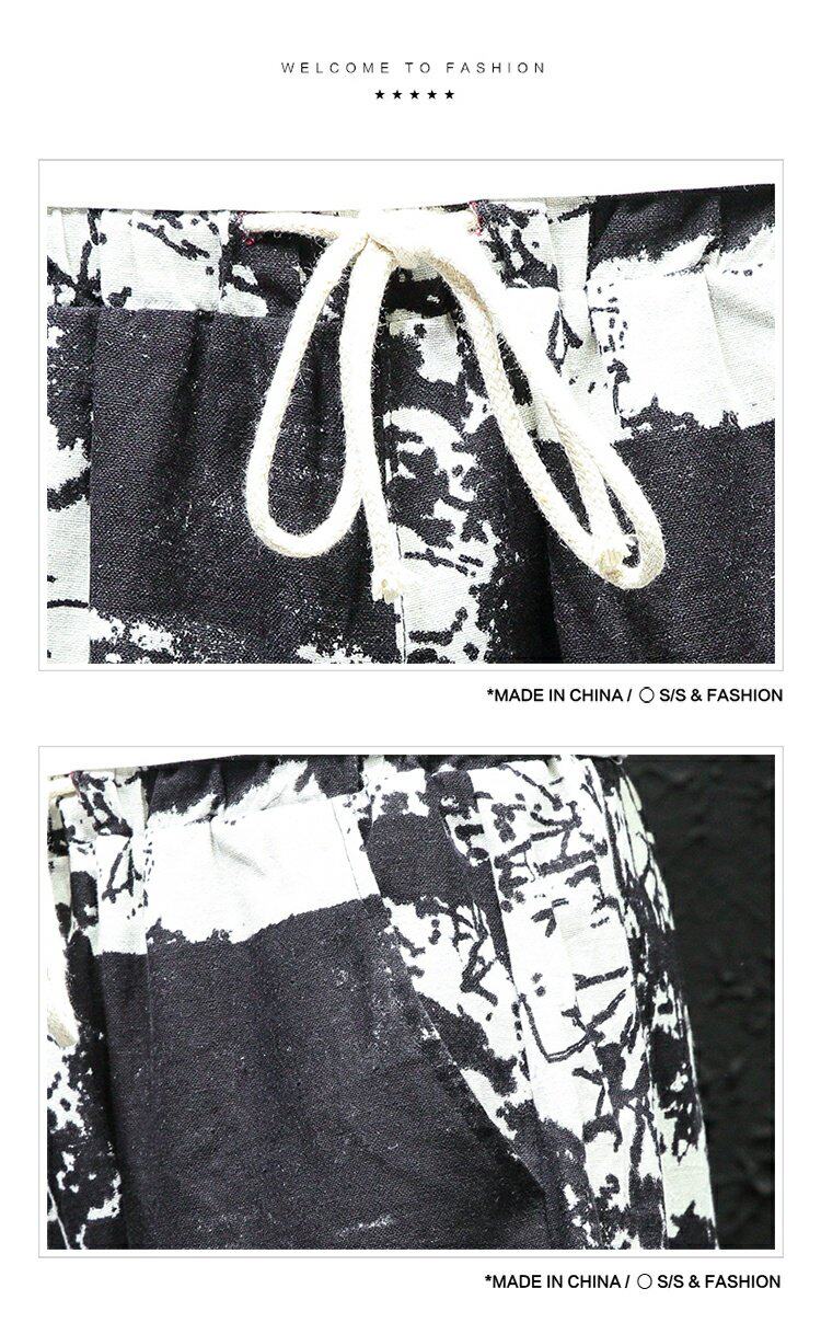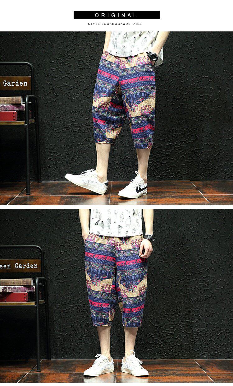 Тонкие этнические штаны, шорты, оверсайз, этнический стиль, из хлопка и льна, большой размер