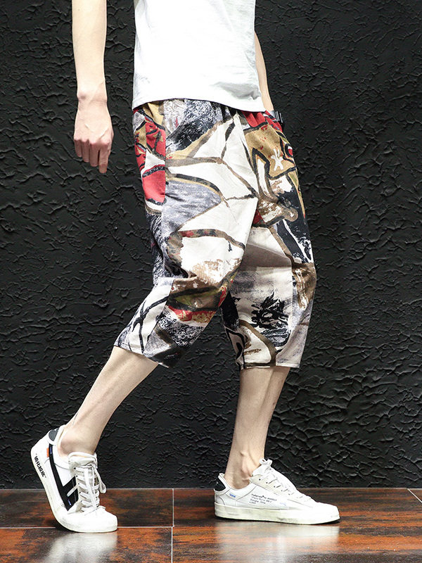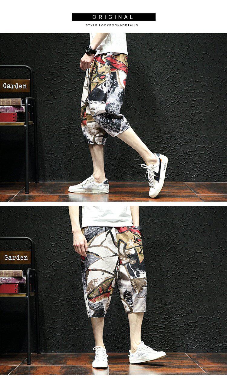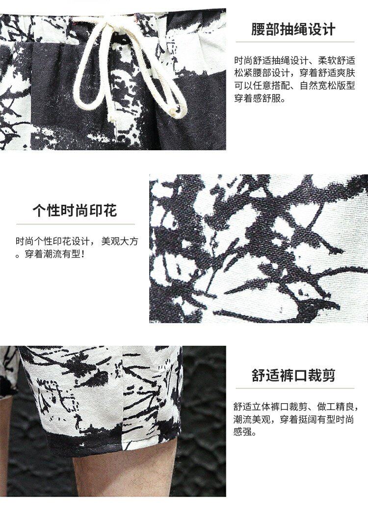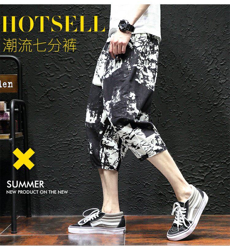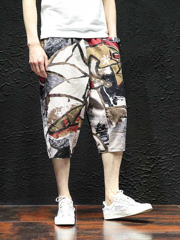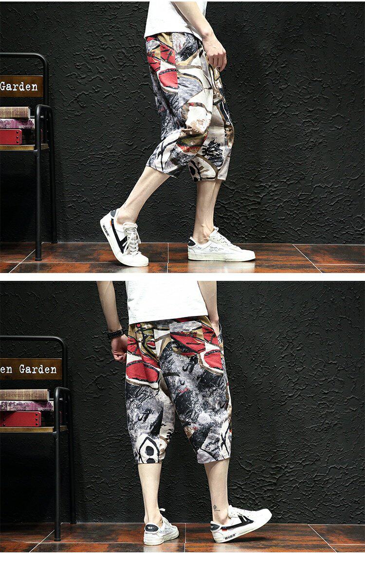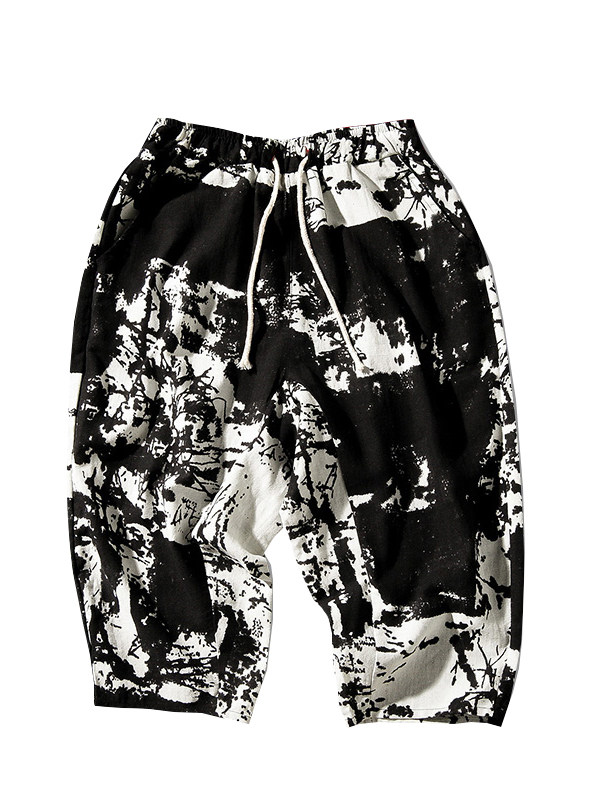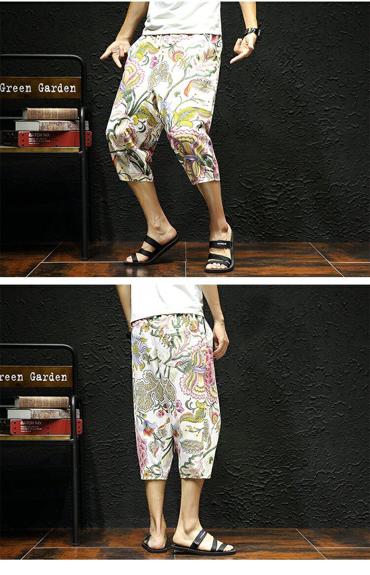 Тонкие этнические штаны, шорты, оверсайз, этнический стиль, из хлопка и льна, большой размер