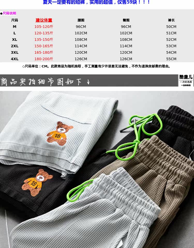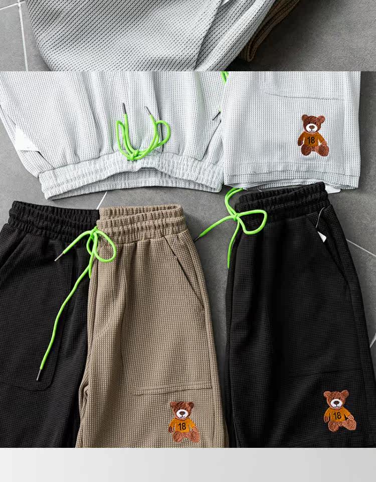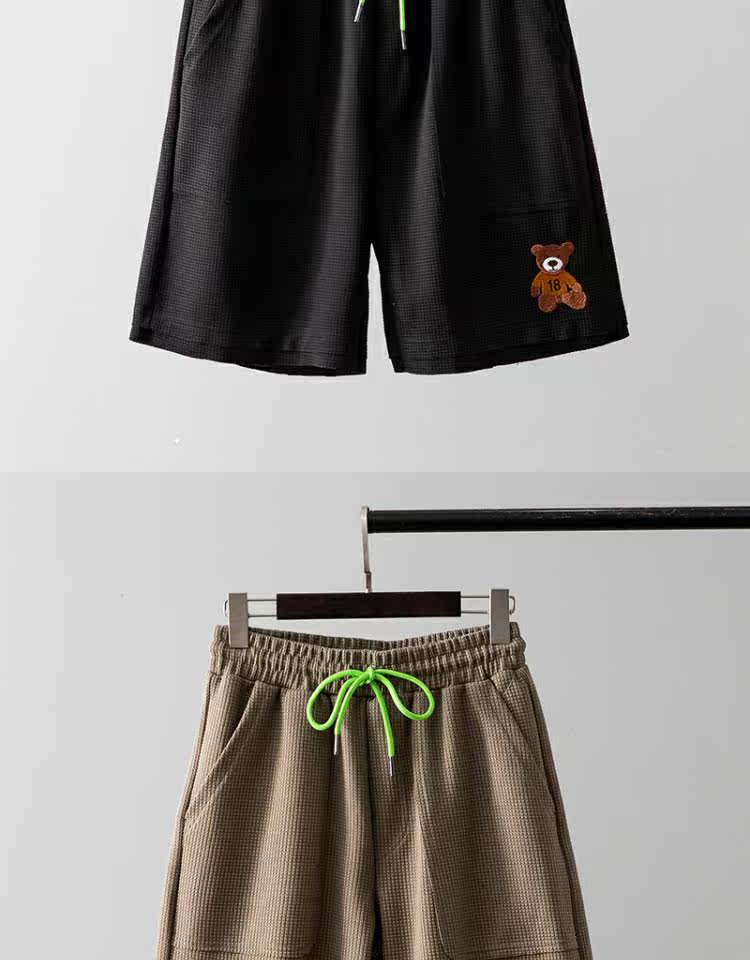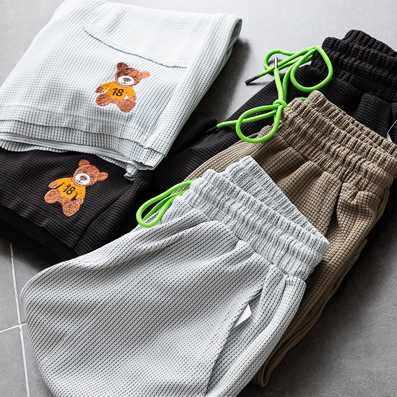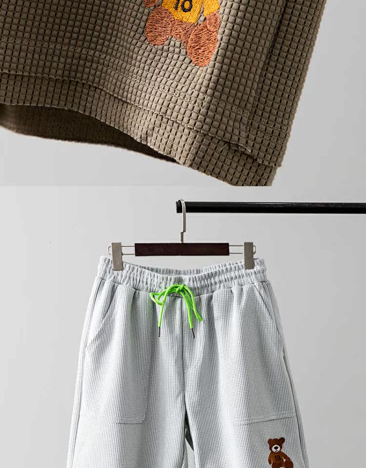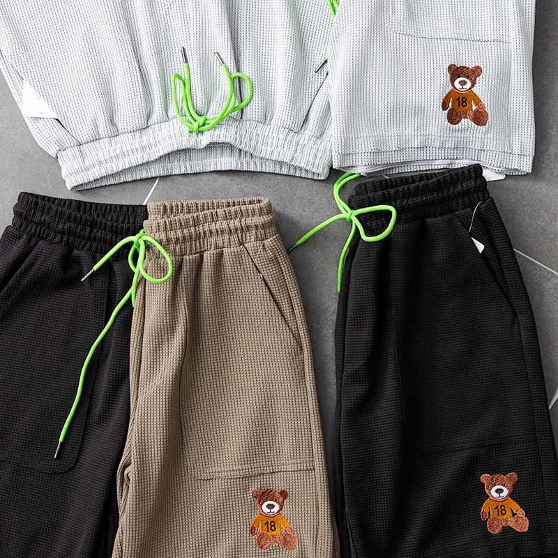 Дышащие свежие универсальные летние шорты, с медвежатами, с вышивкой, свободный прямой крой