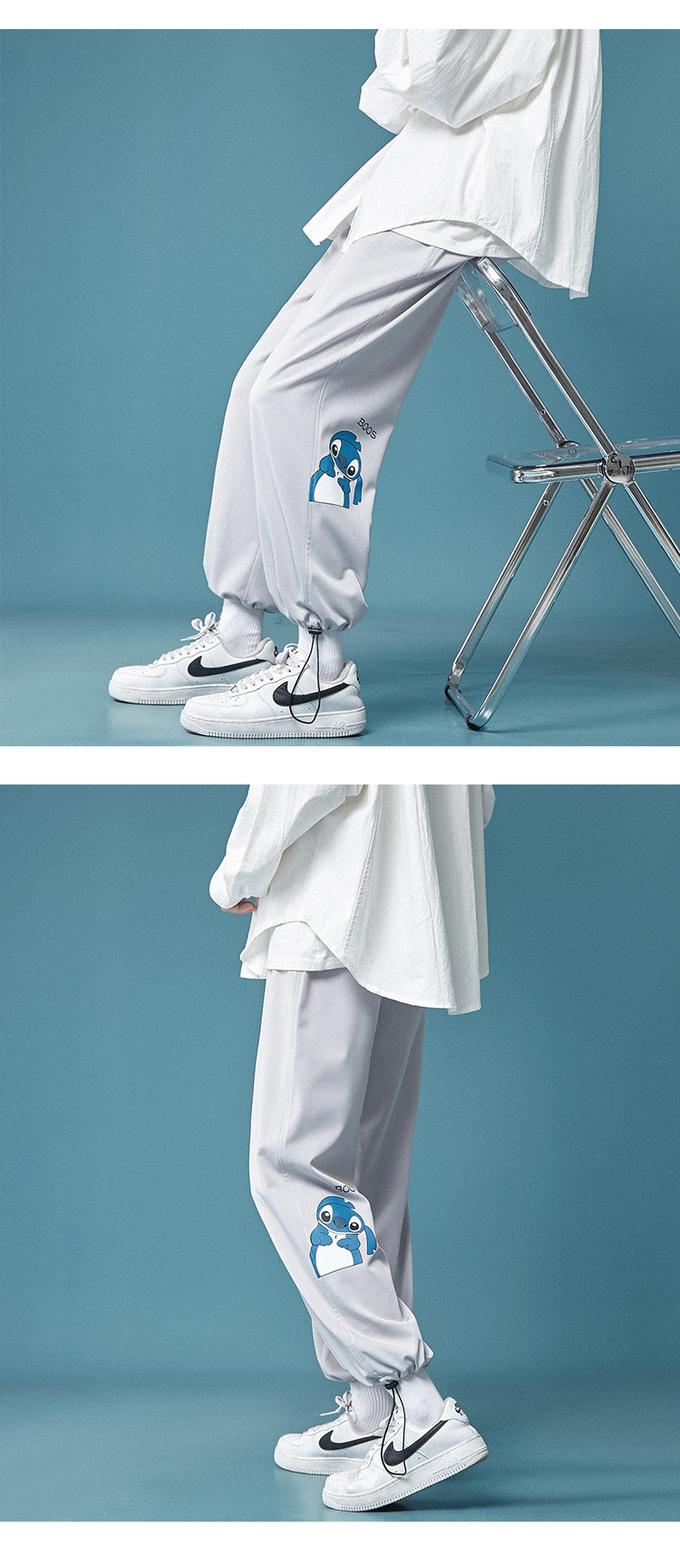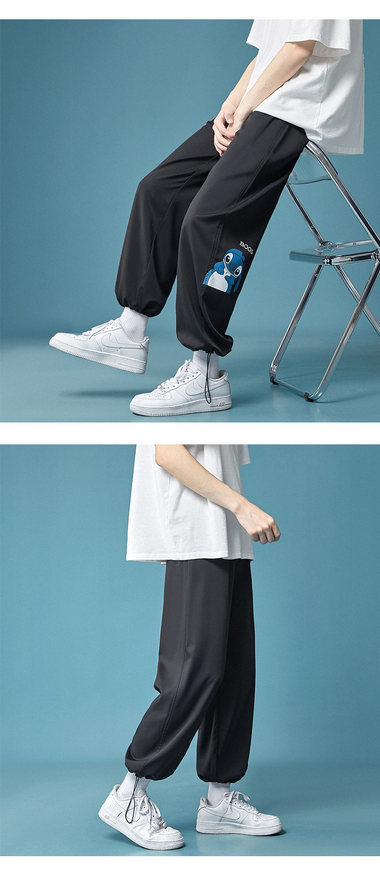 Шелковые тонкие трендовые универсальные мужские мультяшные штаны, в корейском стиле