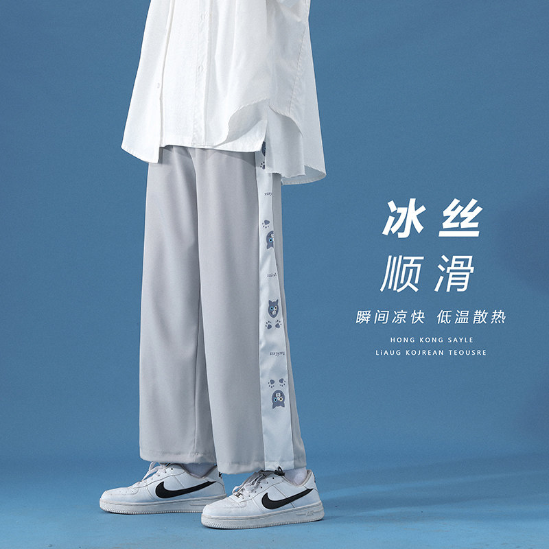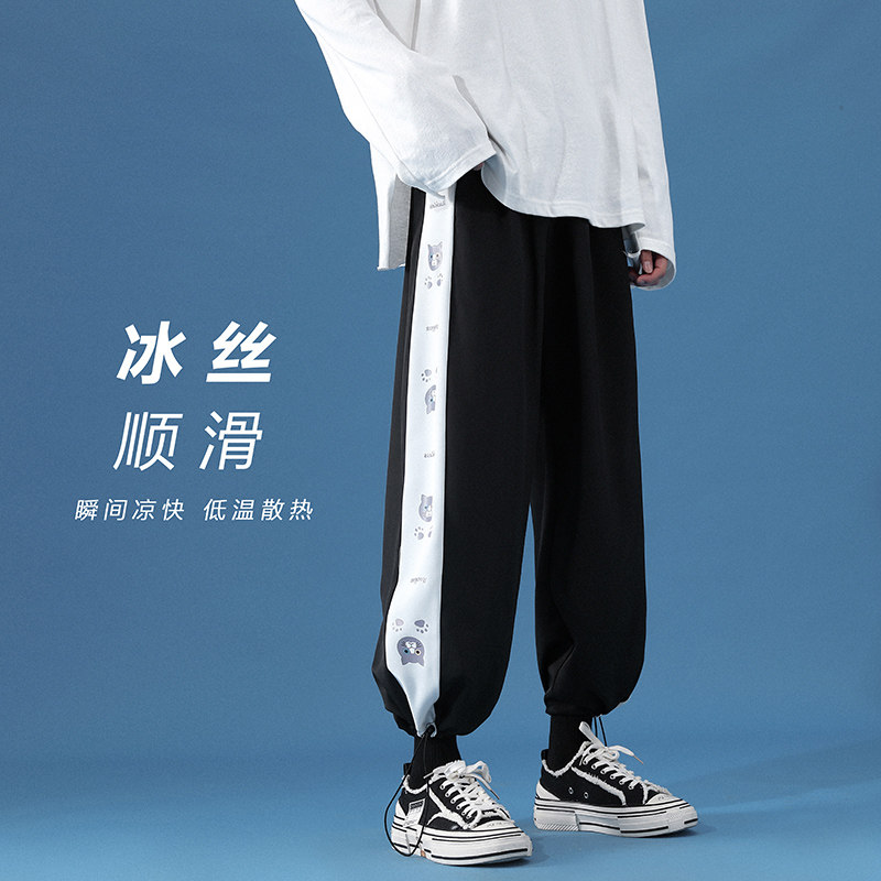 Летние тонкие трендовые шелковые штаны для отдыха, оверсайз, в корейском стиле, на шнурках