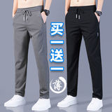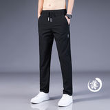 Мужские летние повседневные брюки, трендовые шелковые ультратонкие тонкие спортивные быстросохнущие штаны, в корейском стиле, свободный прямой крой