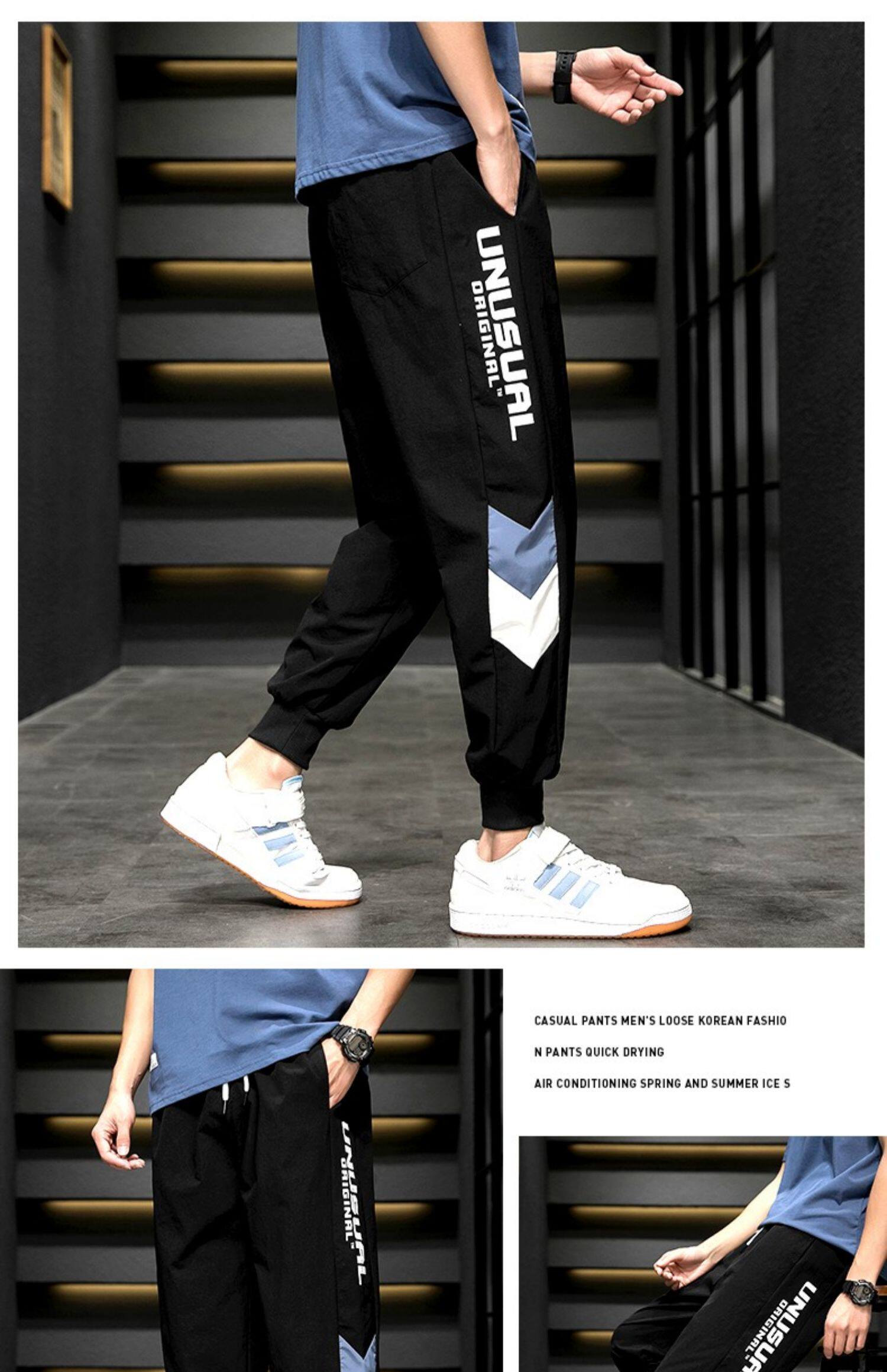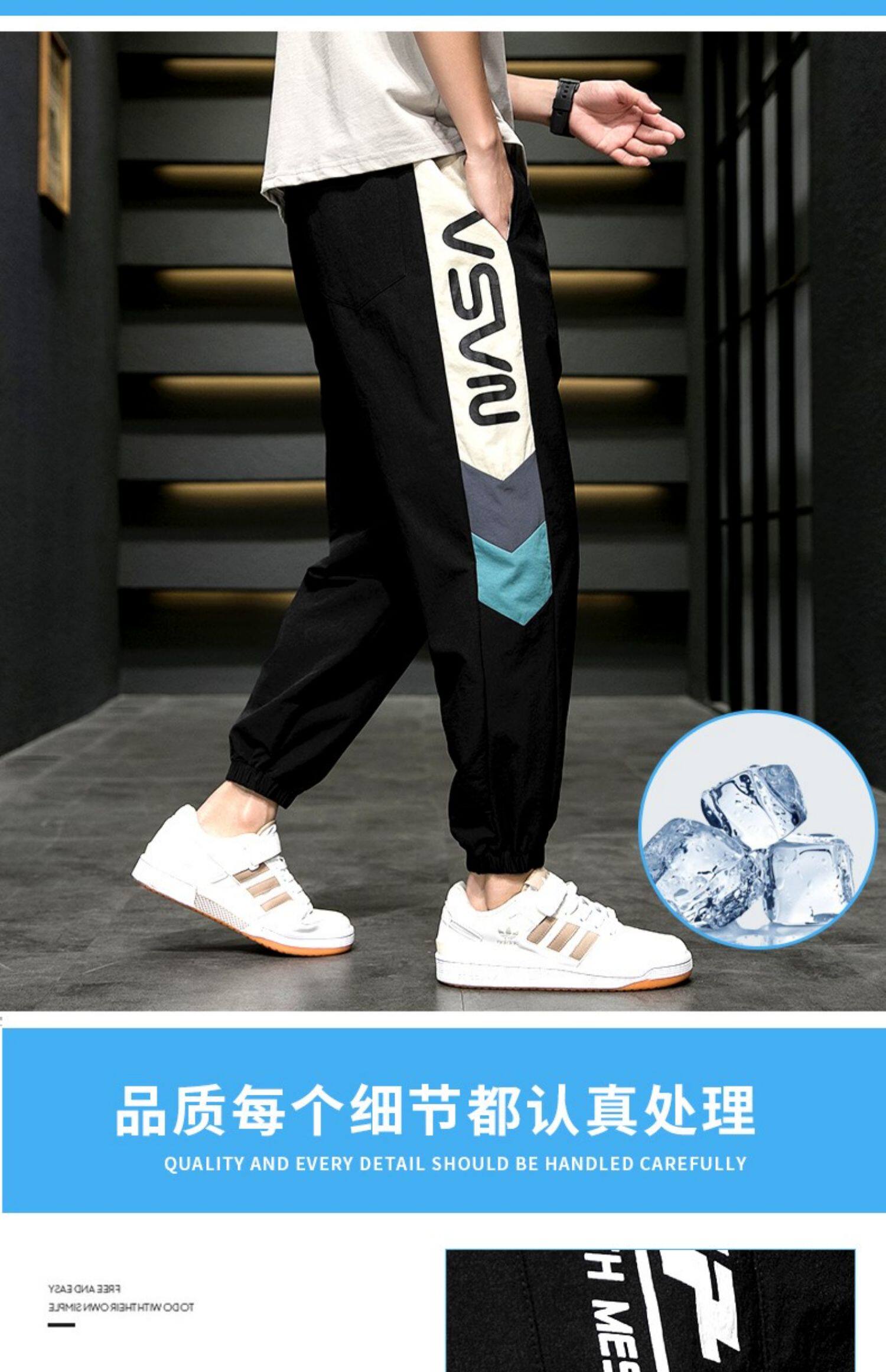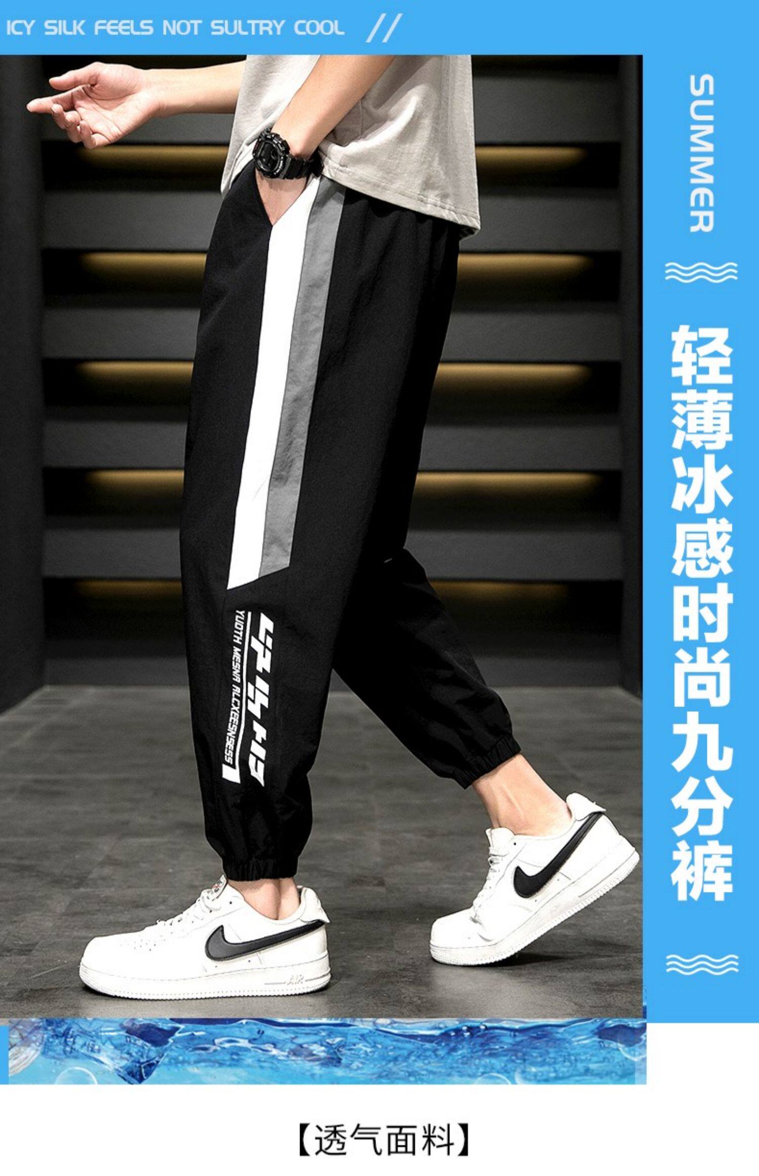 Мужские летние легкие и тонкие шелковые трендовые универсальные спортивные штаны