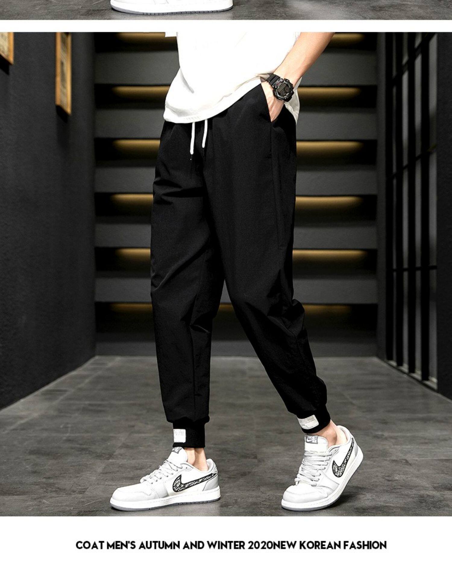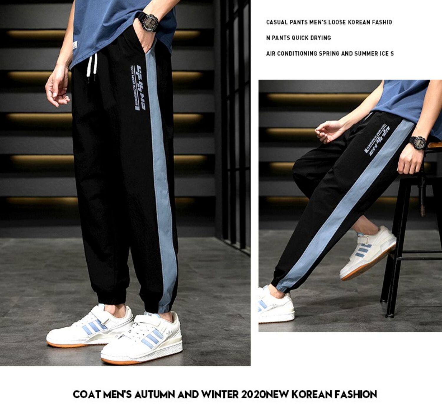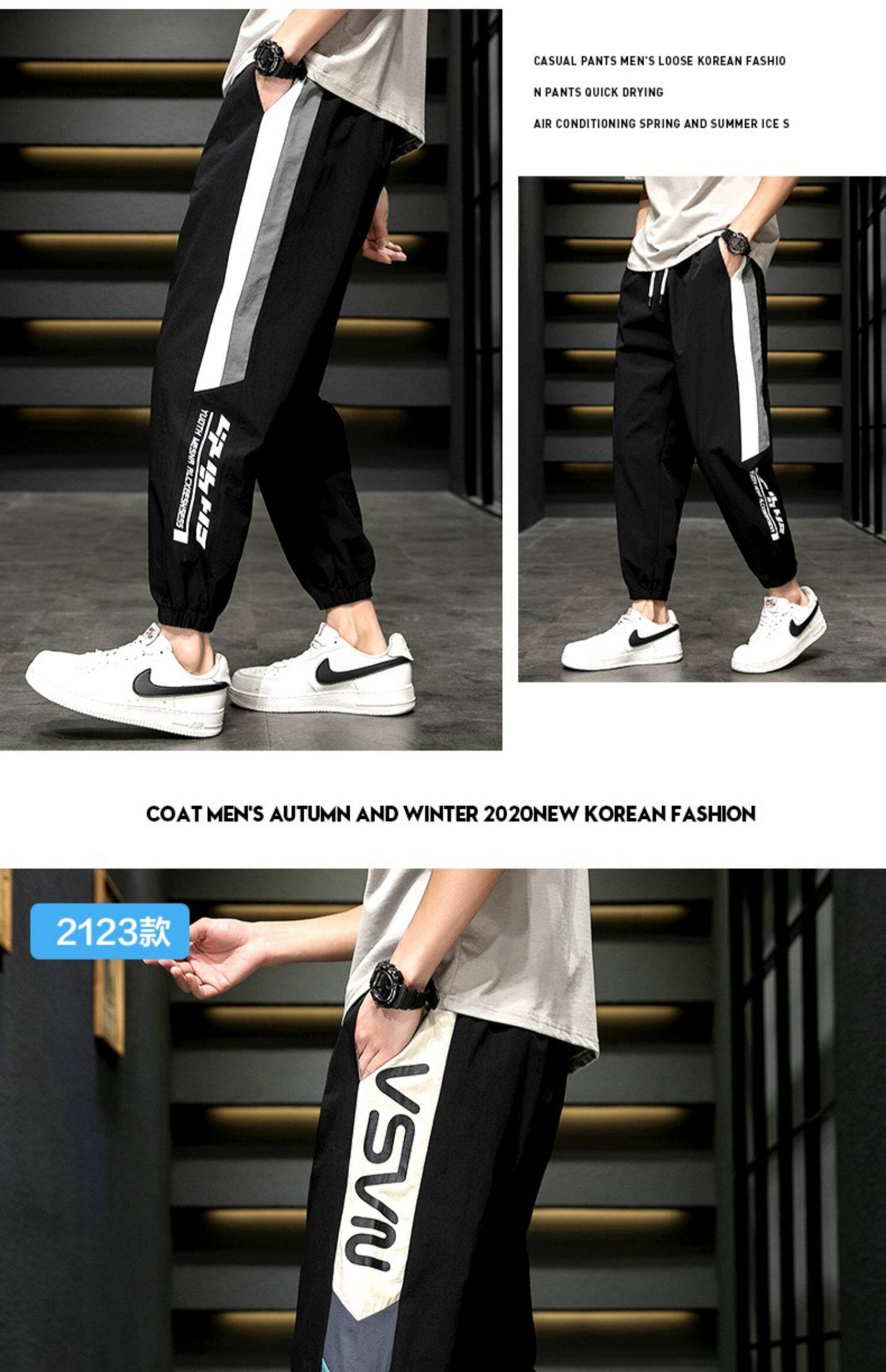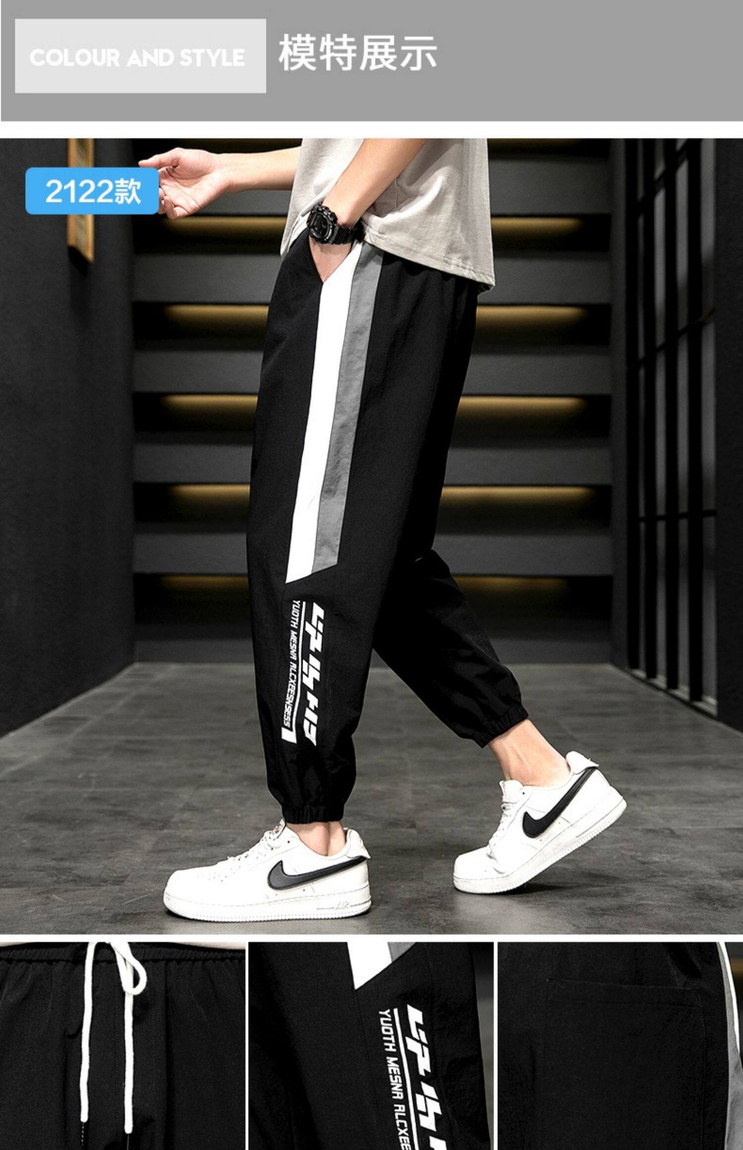 Мужские летние легкие и тонкие шелковые трендовые универсальные спортивные штаны