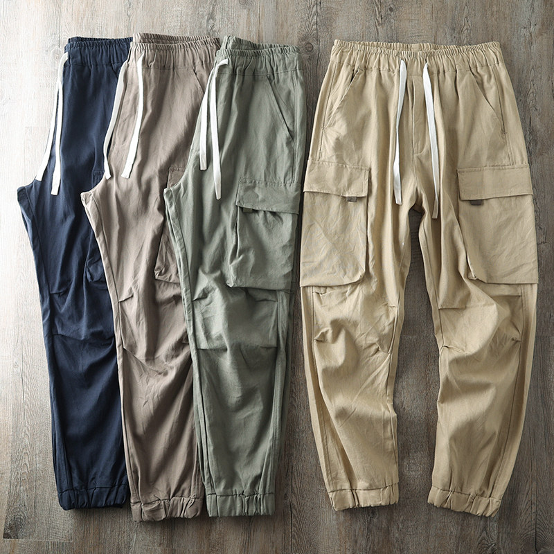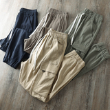 (Трансграничная торговля), комфортные ретро штаны, из хлопка и льна