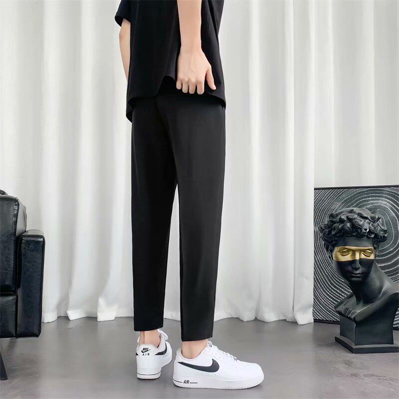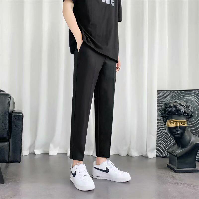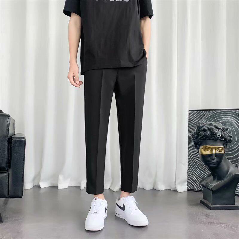 Костюм, трендовые черные штаны, свободный прямой крой, в корейском стиле, подходит для подростков, облегающий крой, по фигуре