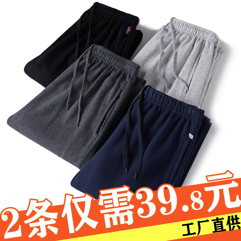 Спортивные утепленные трикотажные летние тонкие штаны для отдыха, свободный прямой крой, для бега, большой размер