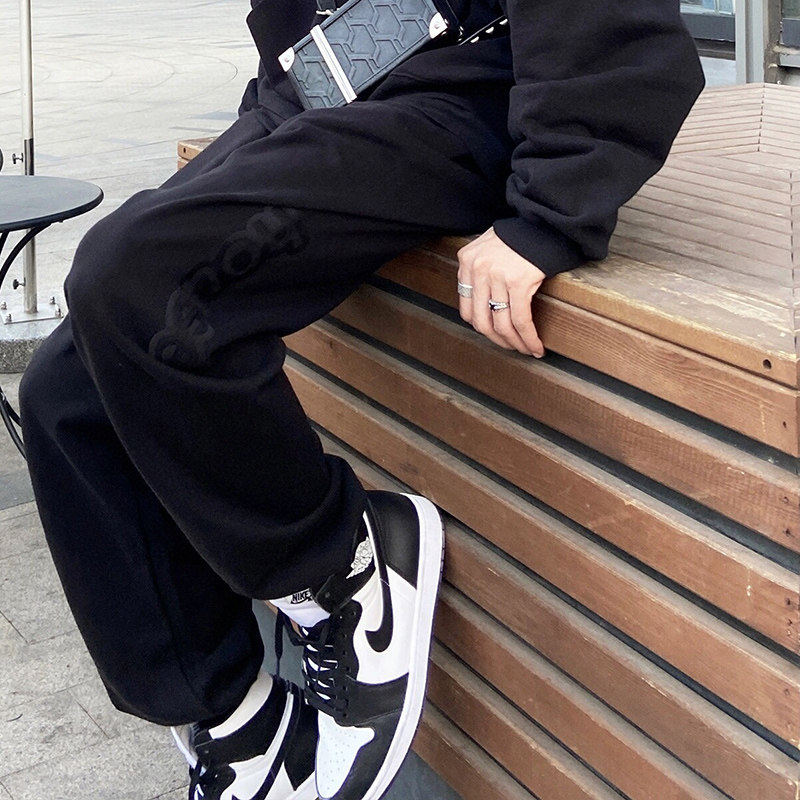 Черные штаны, с вышивкой, свободный крой