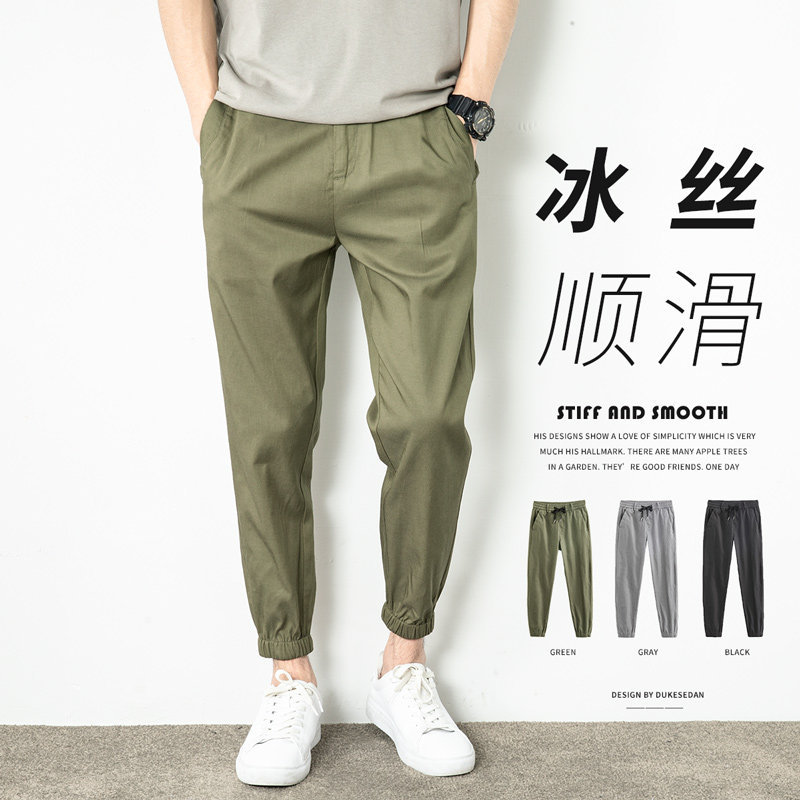 Шелковые летние повседневные брюки, спортивные штаны, свободный крой, на шнурках