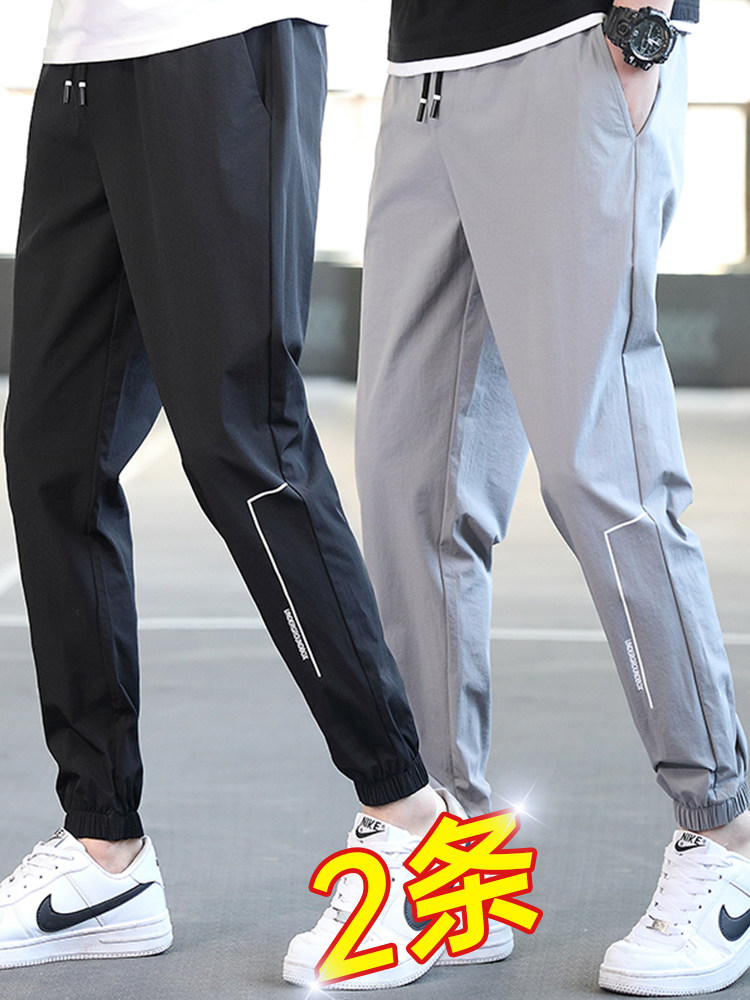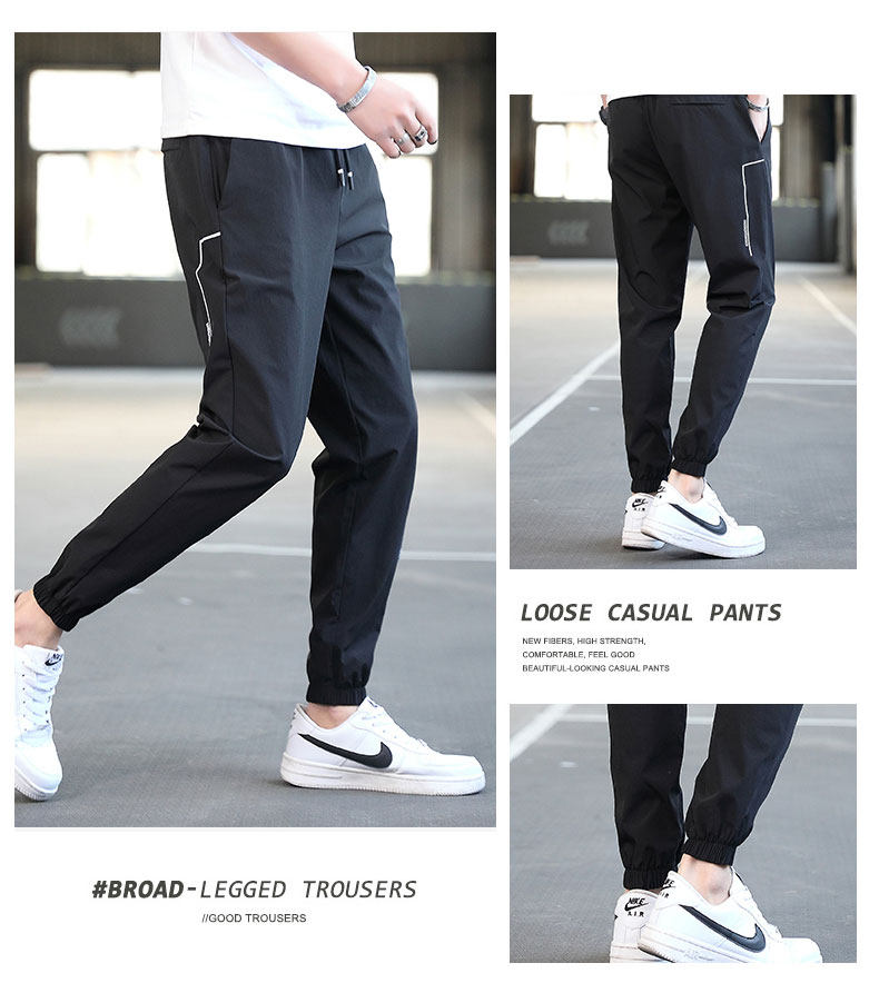 Мужские летние спортивные осенние штаны, тонкие шелковые повседневные брюки, оверсайз