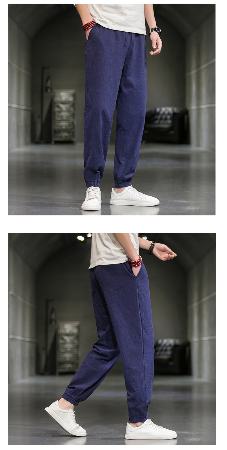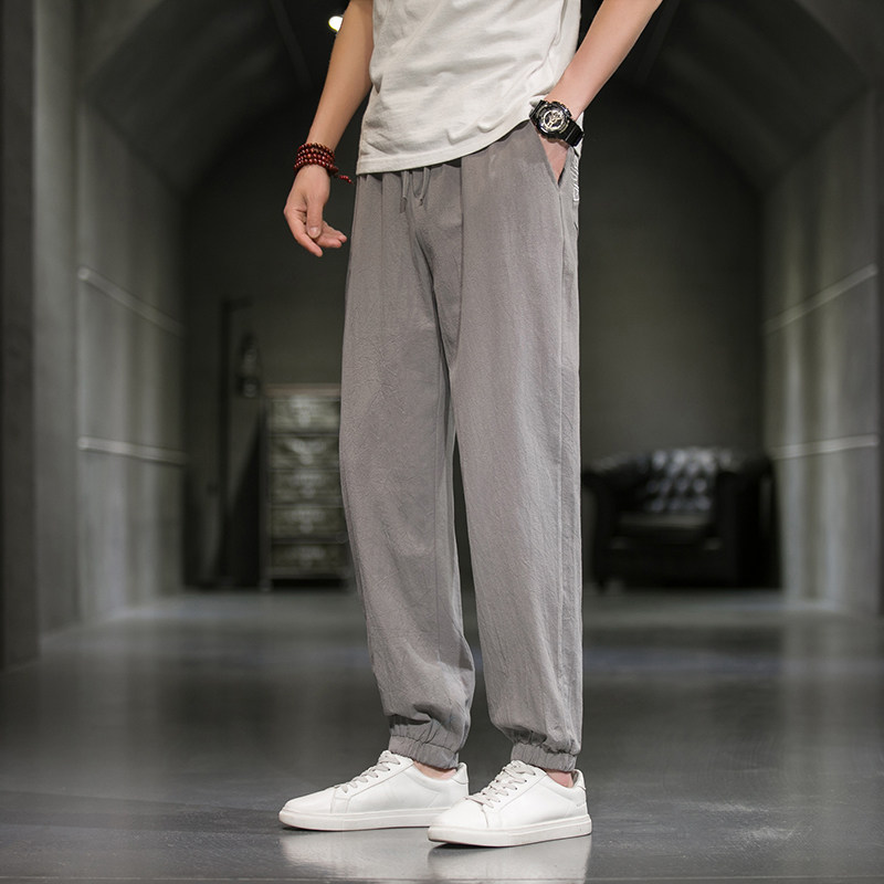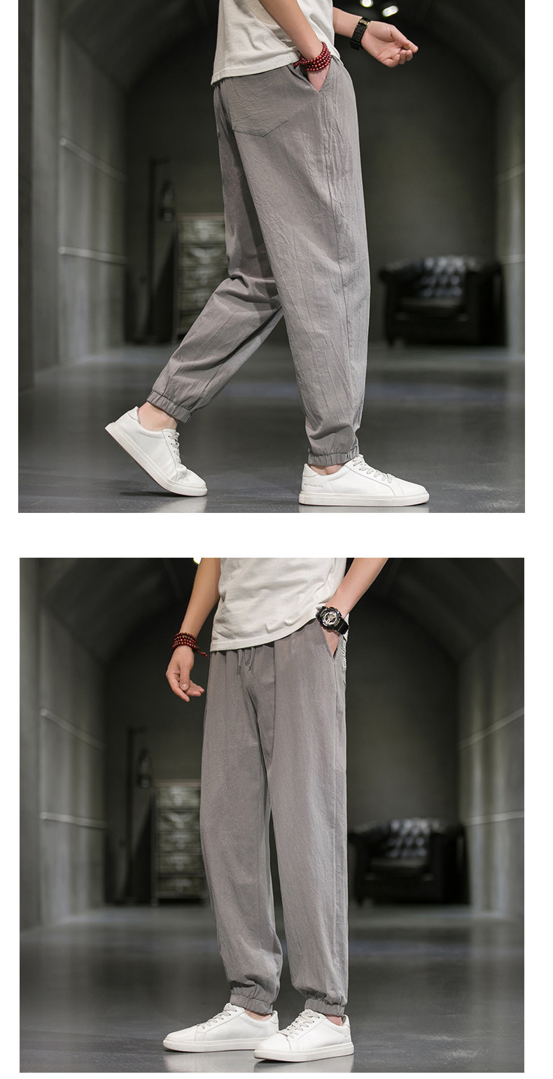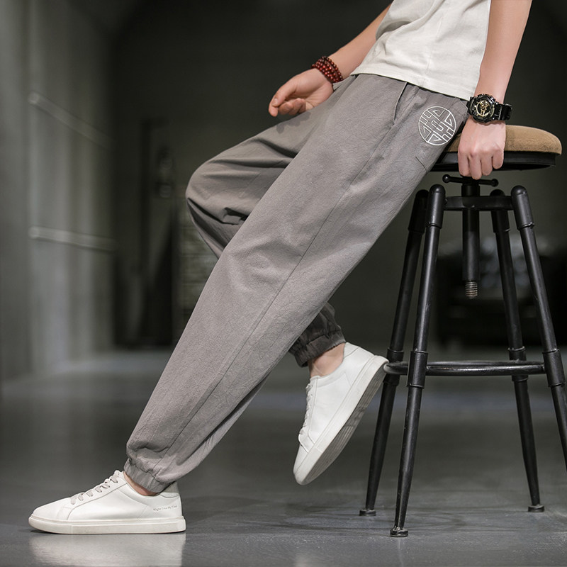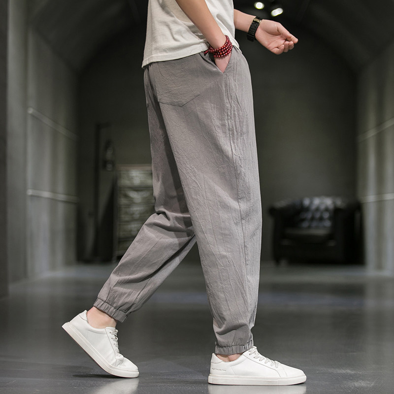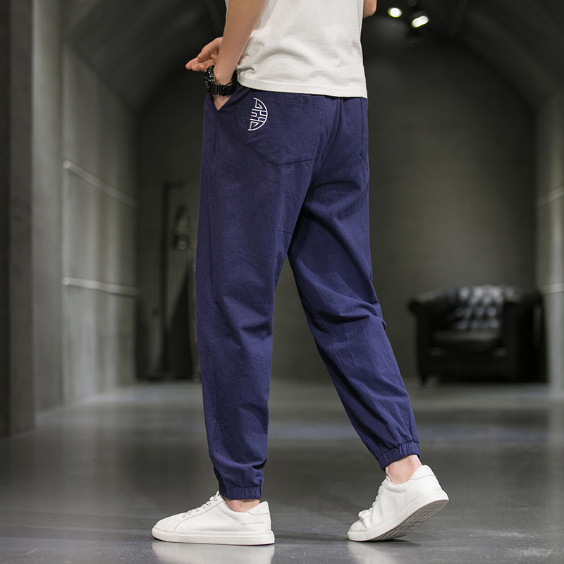Однотонные спортивные штаны, большой размер, китайский стиль, из хлопка и льна