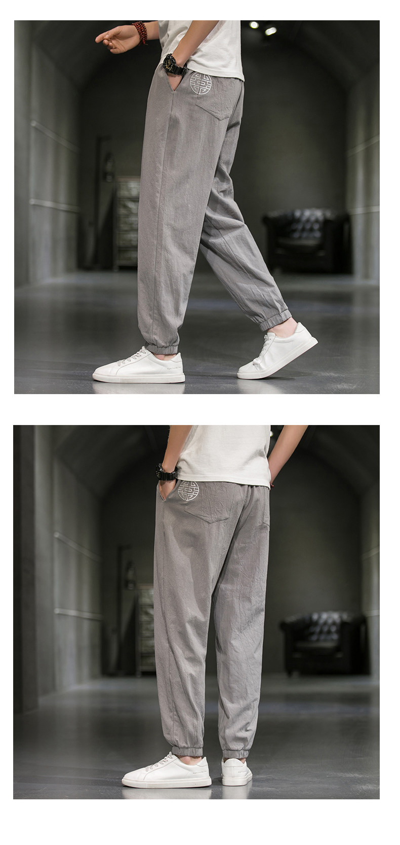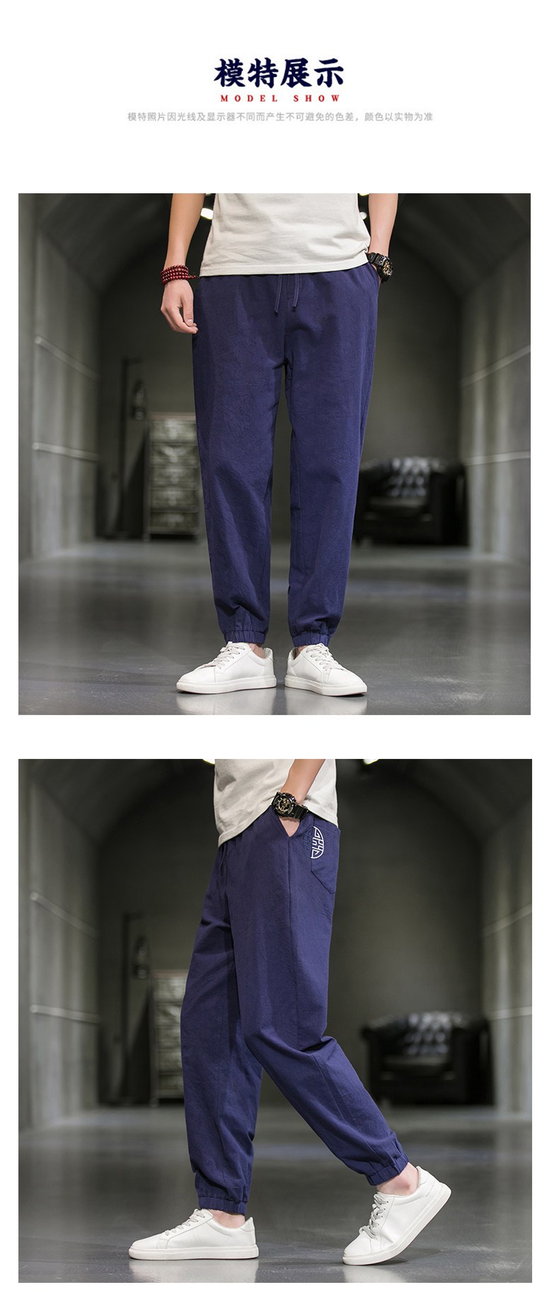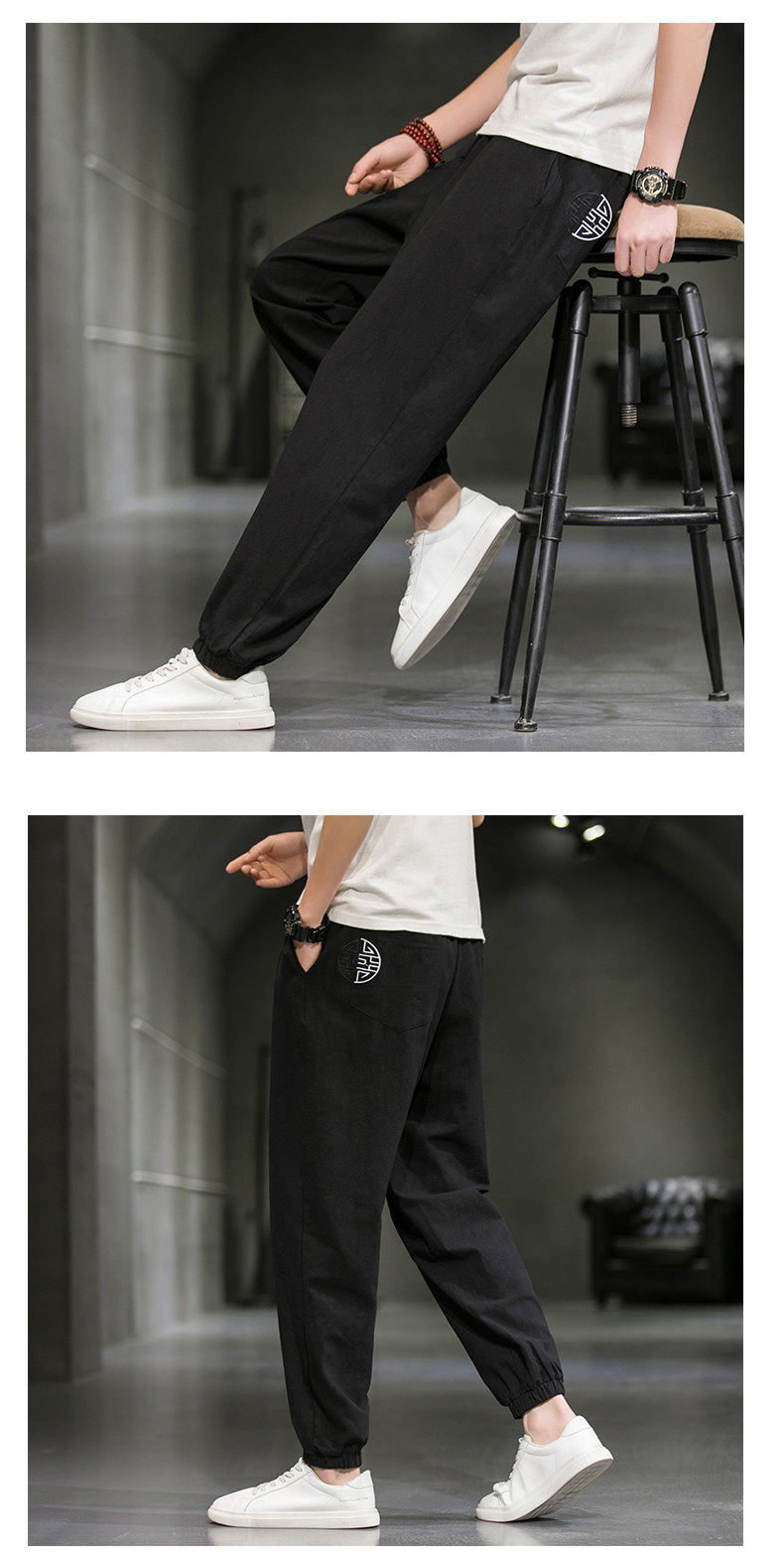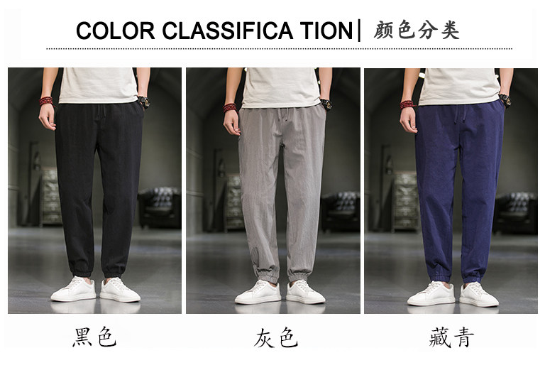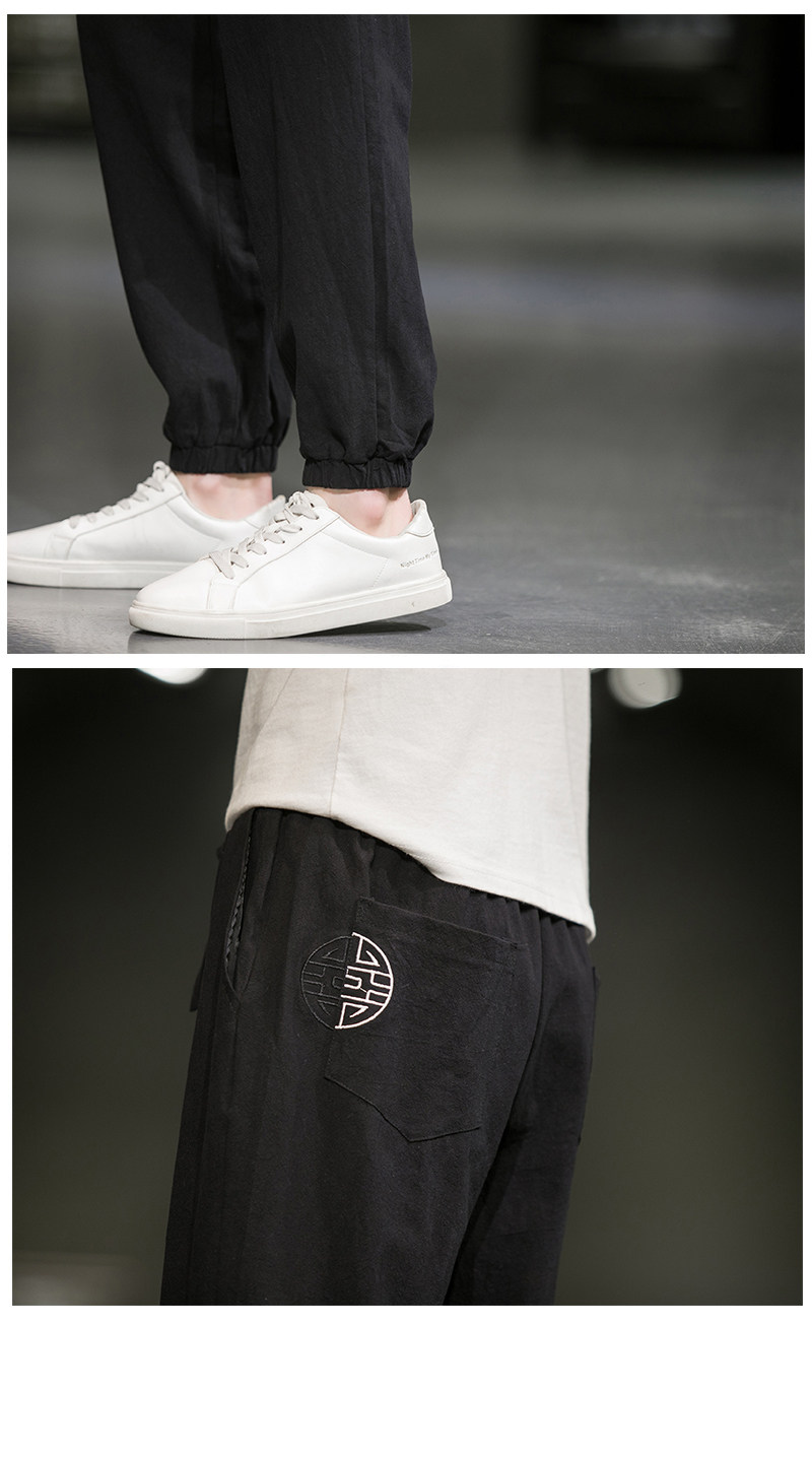 Однотонные спортивные штаны, большой размер, китайский стиль, из хлопка и льна