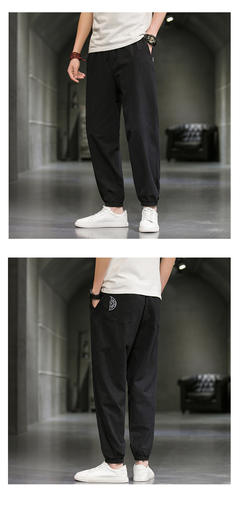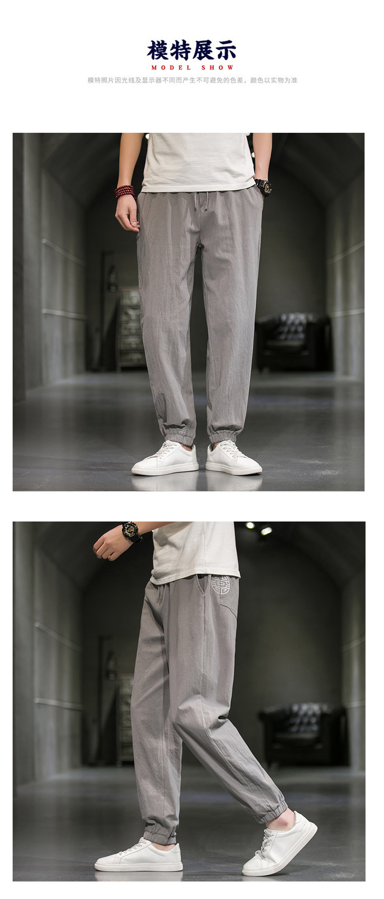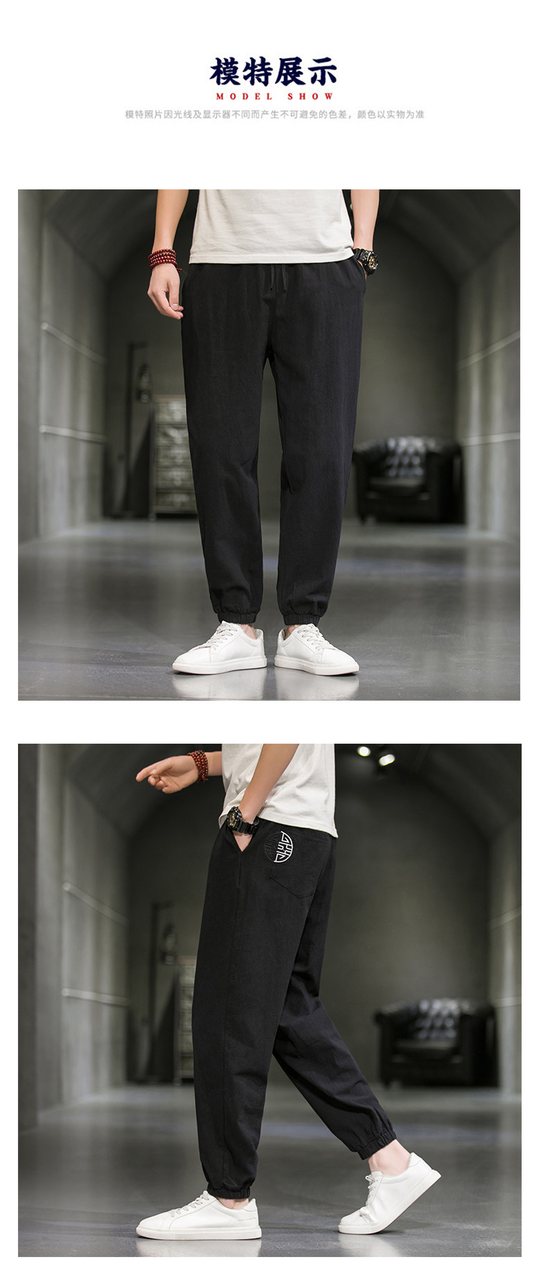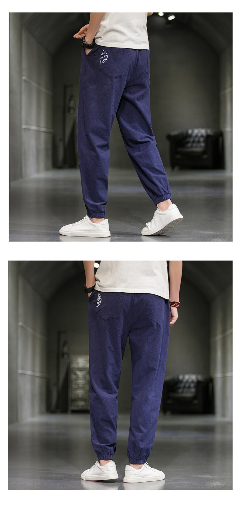 Однотонные спортивные штаны, большой размер, китайский стиль, из хлопка и льна