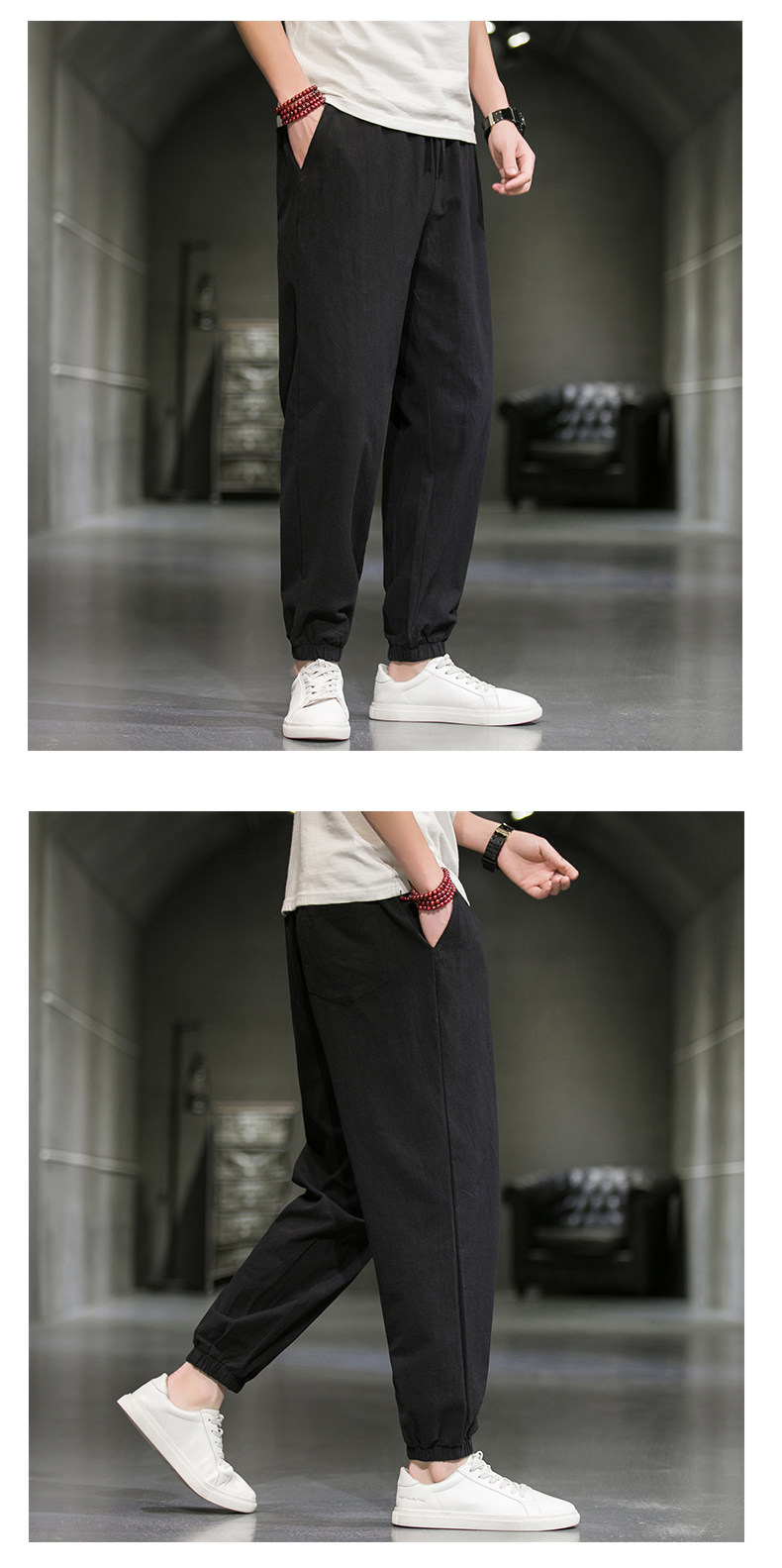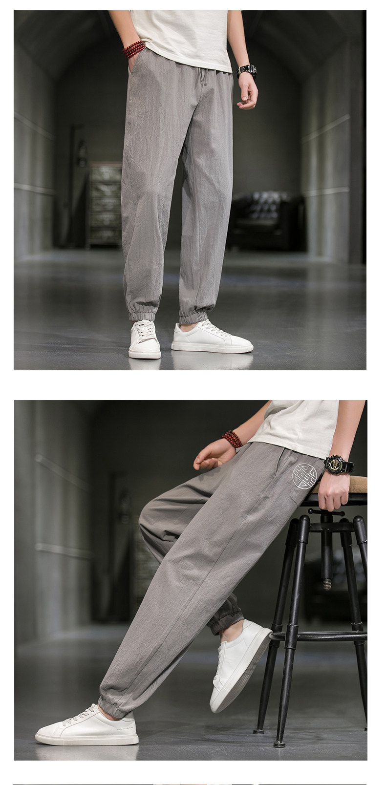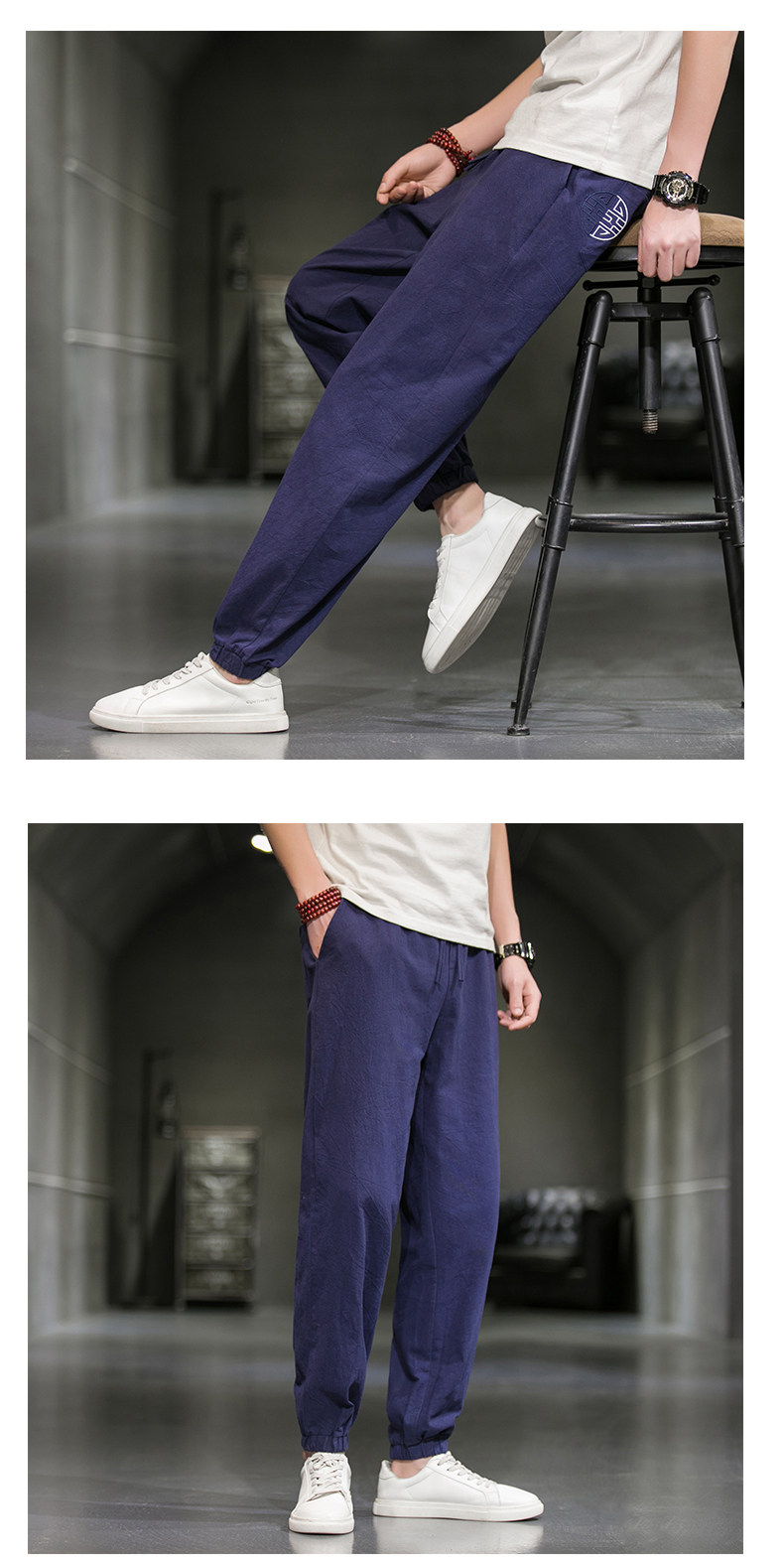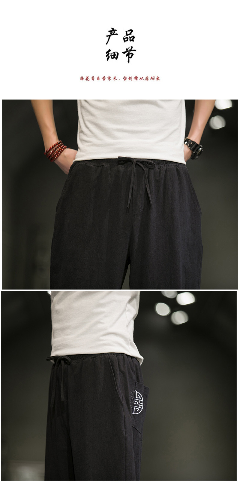 Однотонные спортивные штаны, большой размер, китайский стиль, из хлопка и льна